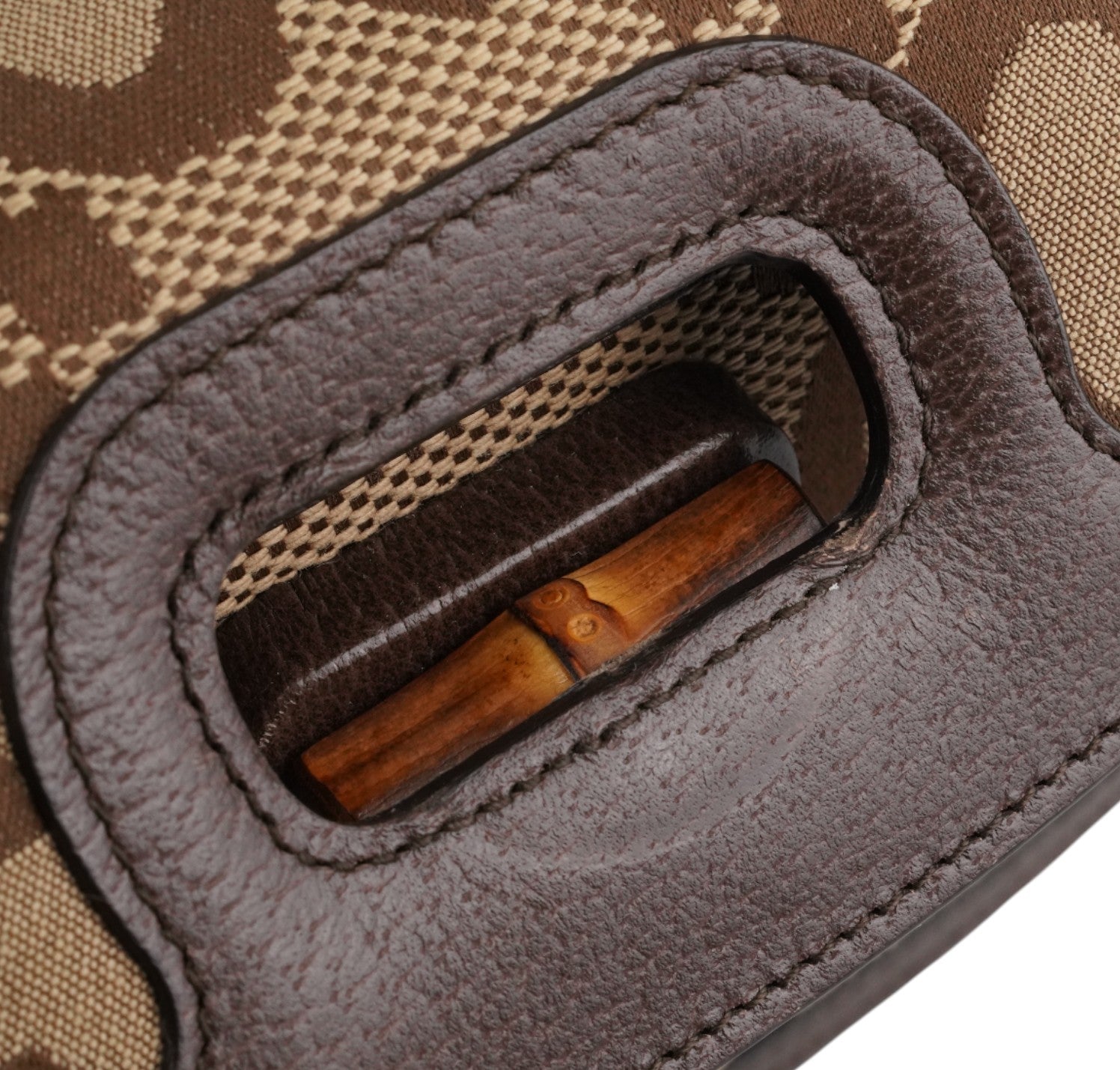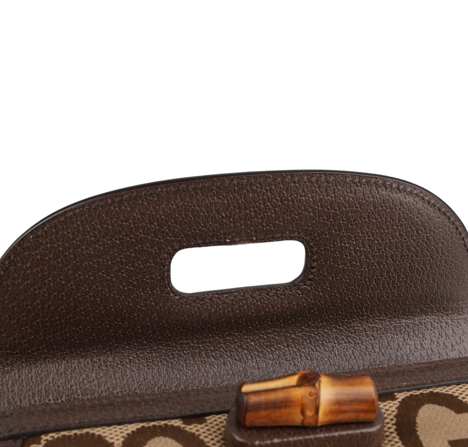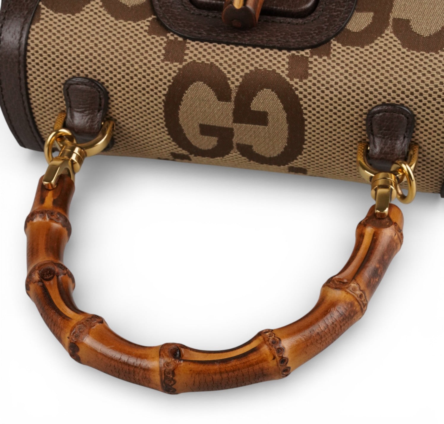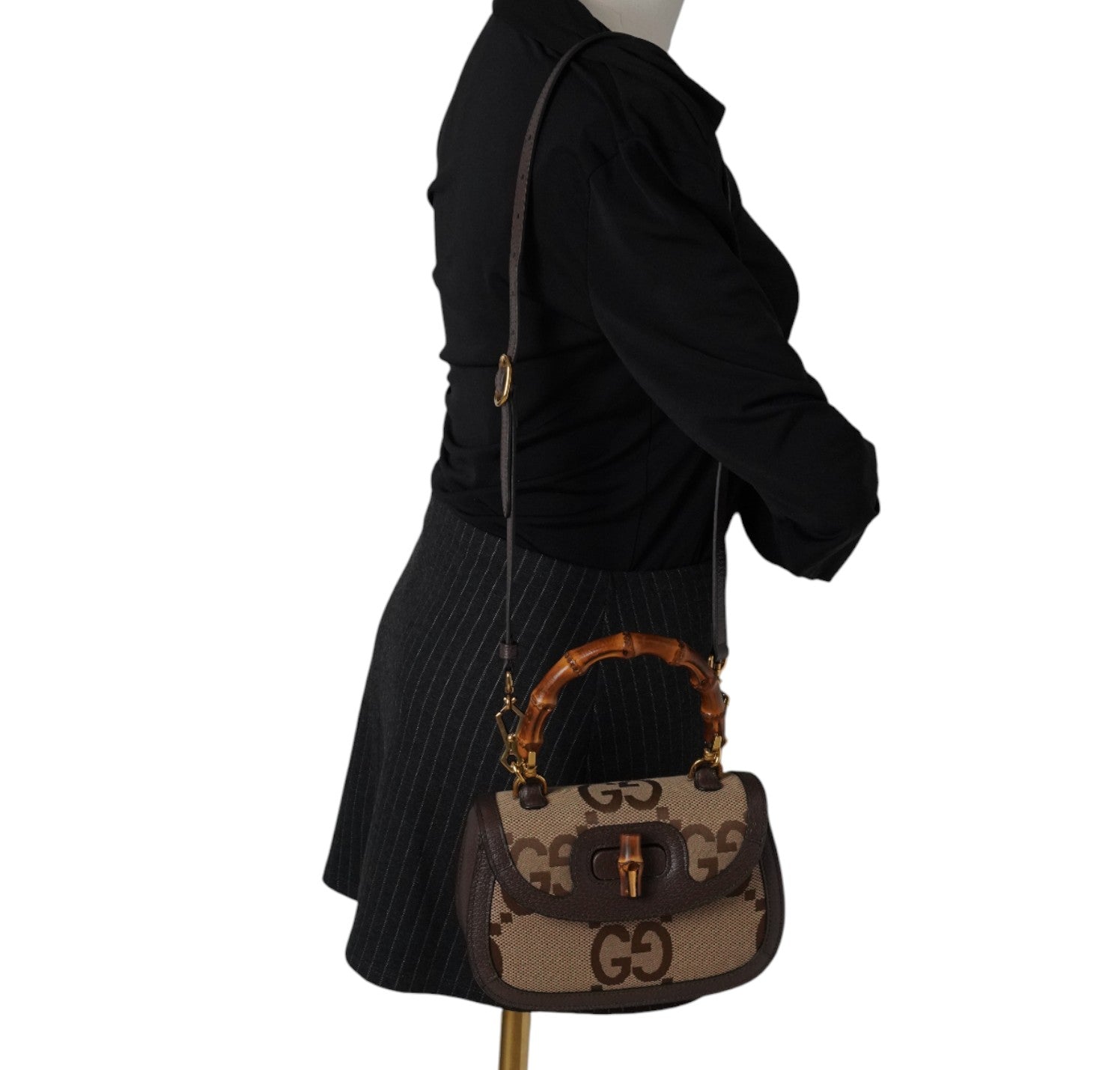 Gucci bag, Bamboo 1947 Mini model, made of Ivory Monogram GG Jumbo Canvas with tone-on-tone leather trim. Top handle and flap closure with Bamboo detail. Equipped with a double shoulder strap, one in Blue and Red Web Fabric and a thin one in Leather. Fabric-lined interior with a single compartment and flat pockets. In like-new condition, with slightly perceptible micro signs of storage, under the flap.