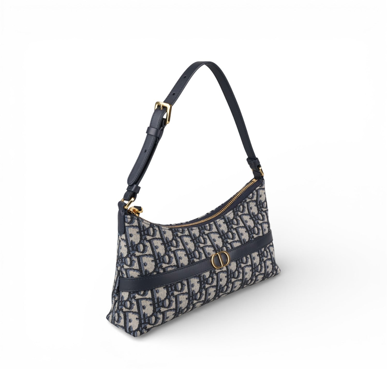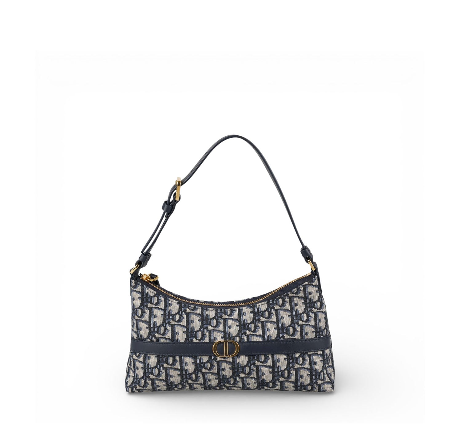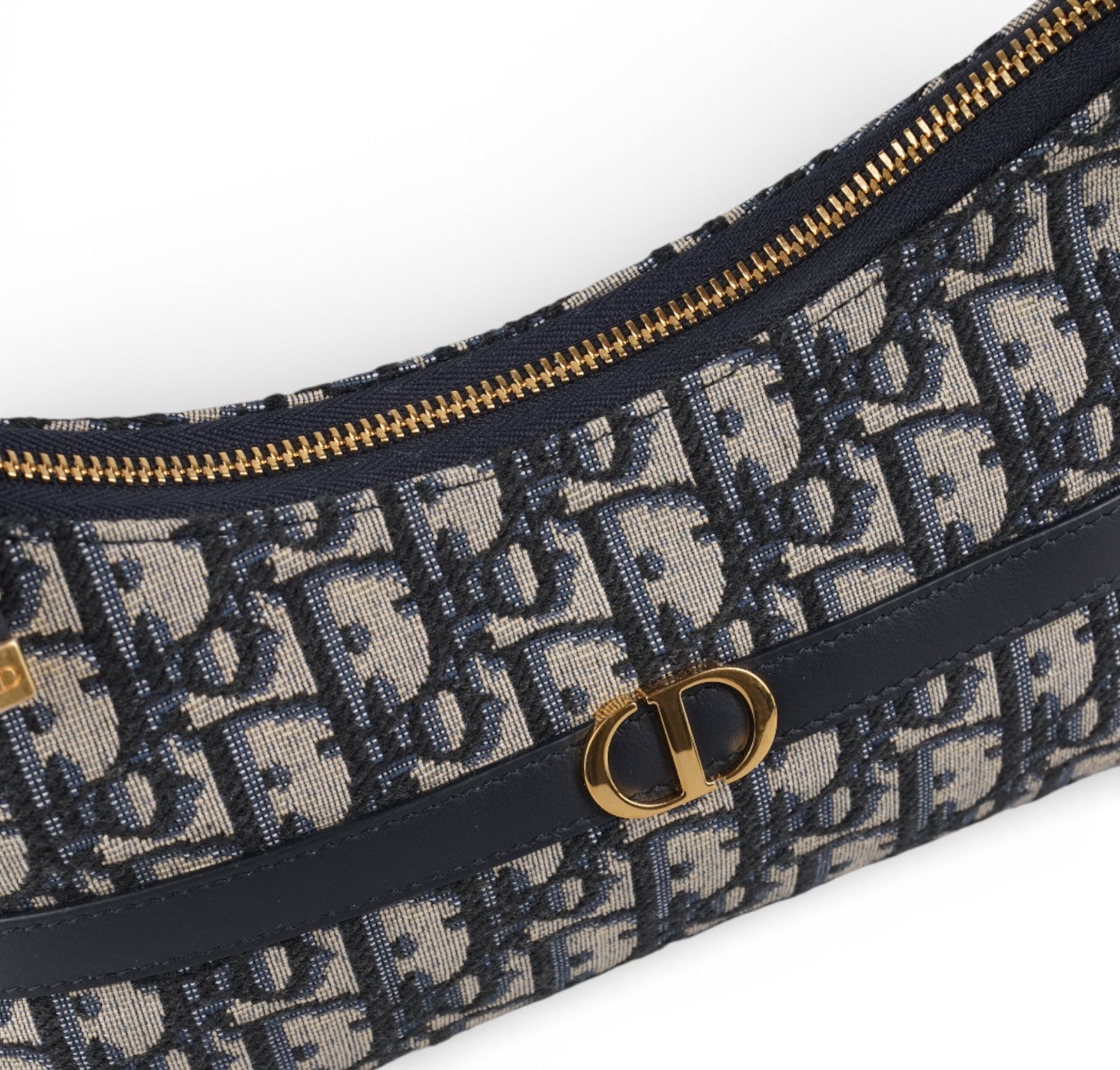 Miniborsa Dior, modello Hobo 30 Montaigne, realizzata in tela jacquard Oblique blu, con profili e dettagli in pelle tono su tono. Chiusura superiore con zip, finiture in metallo color oro e iconico logo CD sul davanti. Portabilità a spalla con manico regolabile. Forma compatta e super chic perfetta sia di giorno che di sera. Ideale per contenere l’essenziale (cellulare, portacarte, chiavi e altri piccoli accessori). Pari al nuovo, condizioni eccellenti, con pellicola su metalleria frontale. Retail 2.050€.