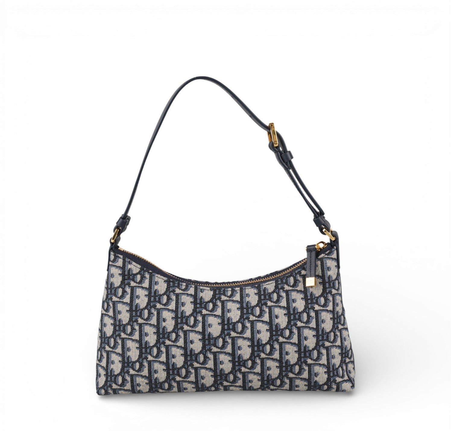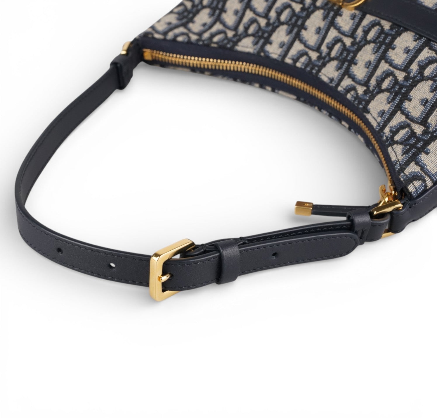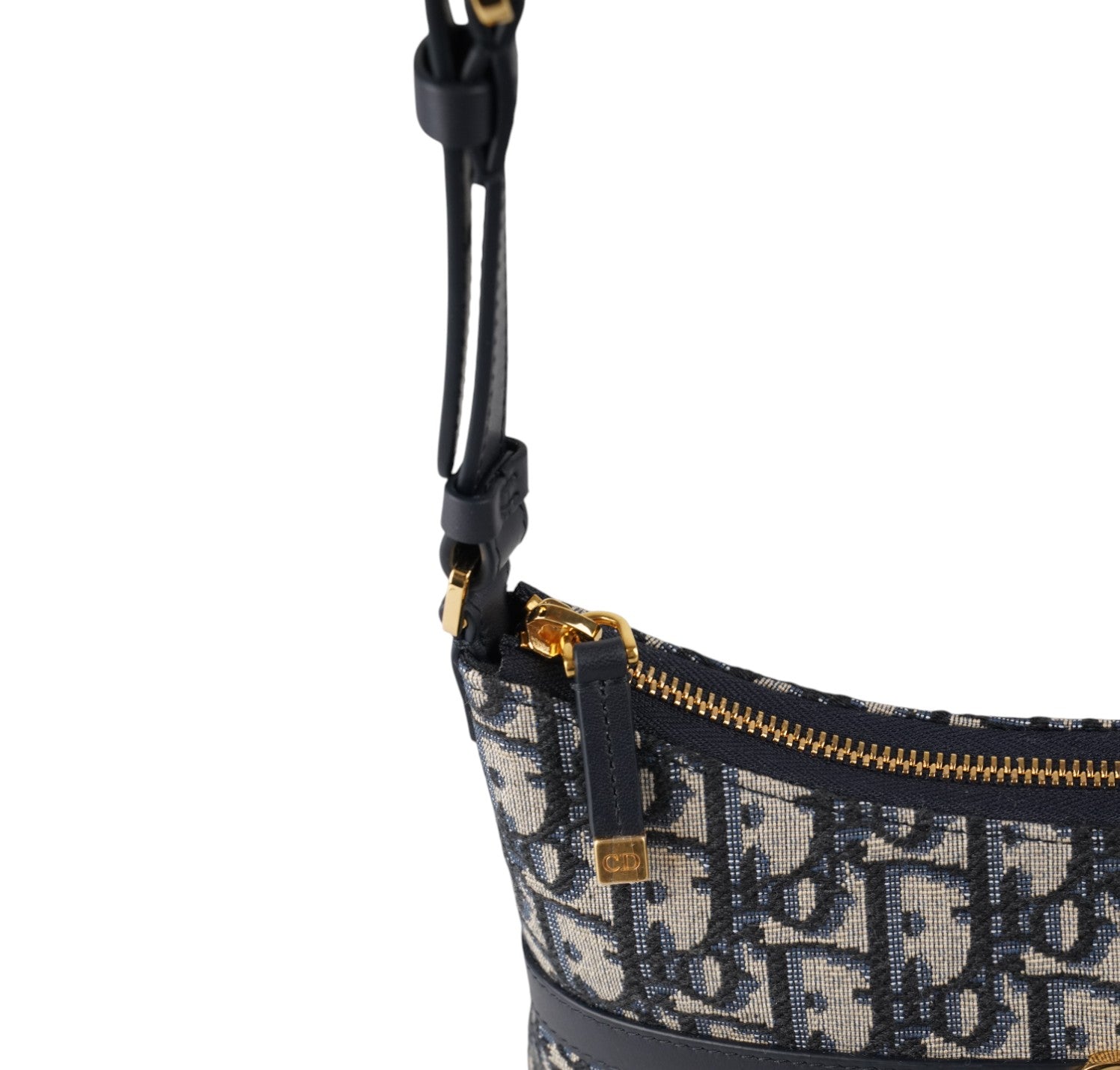 Miniborsa Dior, modello Hobo 30 Montaigne, realizzata in tela jacquard Oblique blu, con profili e dettagli in pelle tono su tono. Chiusura superiore con zip, finiture in metallo color oro e iconico logo CD sul davanti. Portabilità a spalla con manico regolabile. Forma compatta e super chic perfetta sia di giorno che di sera. Ideale per contenere l’essenziale (cellulare, portacarte, chiavi e altri piccoli accessori). Pari al nuovo, condizioni eccellenti, con pellicola su metalleria frontale. Retail 2.050€.