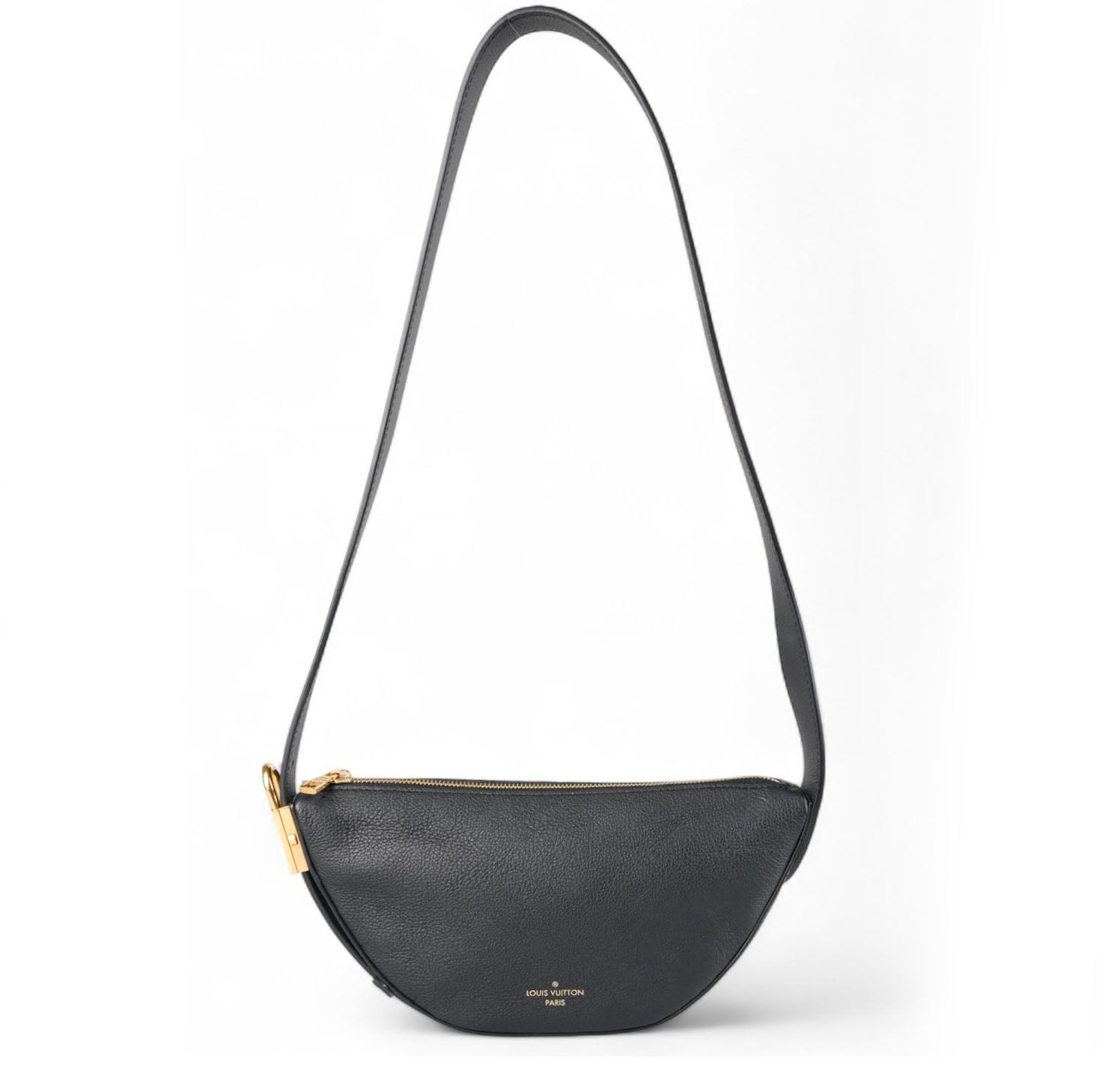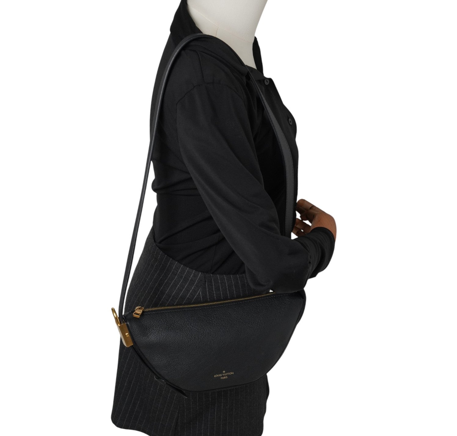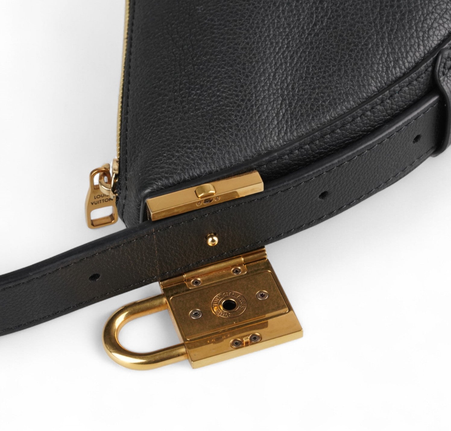 Borsa Louis Vuitton, modello Low Key Bum Bag, realizzata in morbida Pelle Nera martellata con dettagli in metallo finitura Oro lucido. Design a mezza luna, pensato per essere indossato crossbody o a spalla grazie alla tracolla regolabile. Chiusura con zip superiore, impreziosita da lucchetto decorativo laterale con logo inciso. Interno in tessuto scamosciato. Perfetta anche come borsa day-to-night. Condizioni eccellenti, minimi segni d'uso generali. Modello attuale, di recente produzione. Microchip interno.