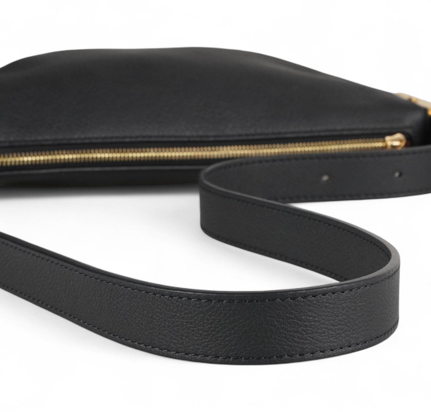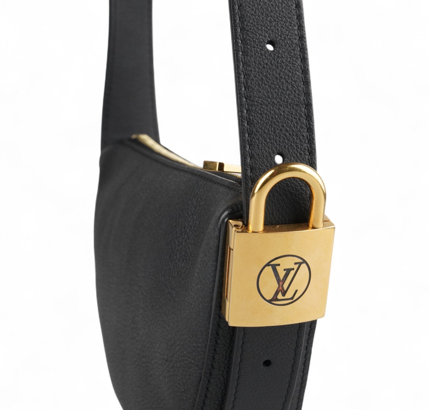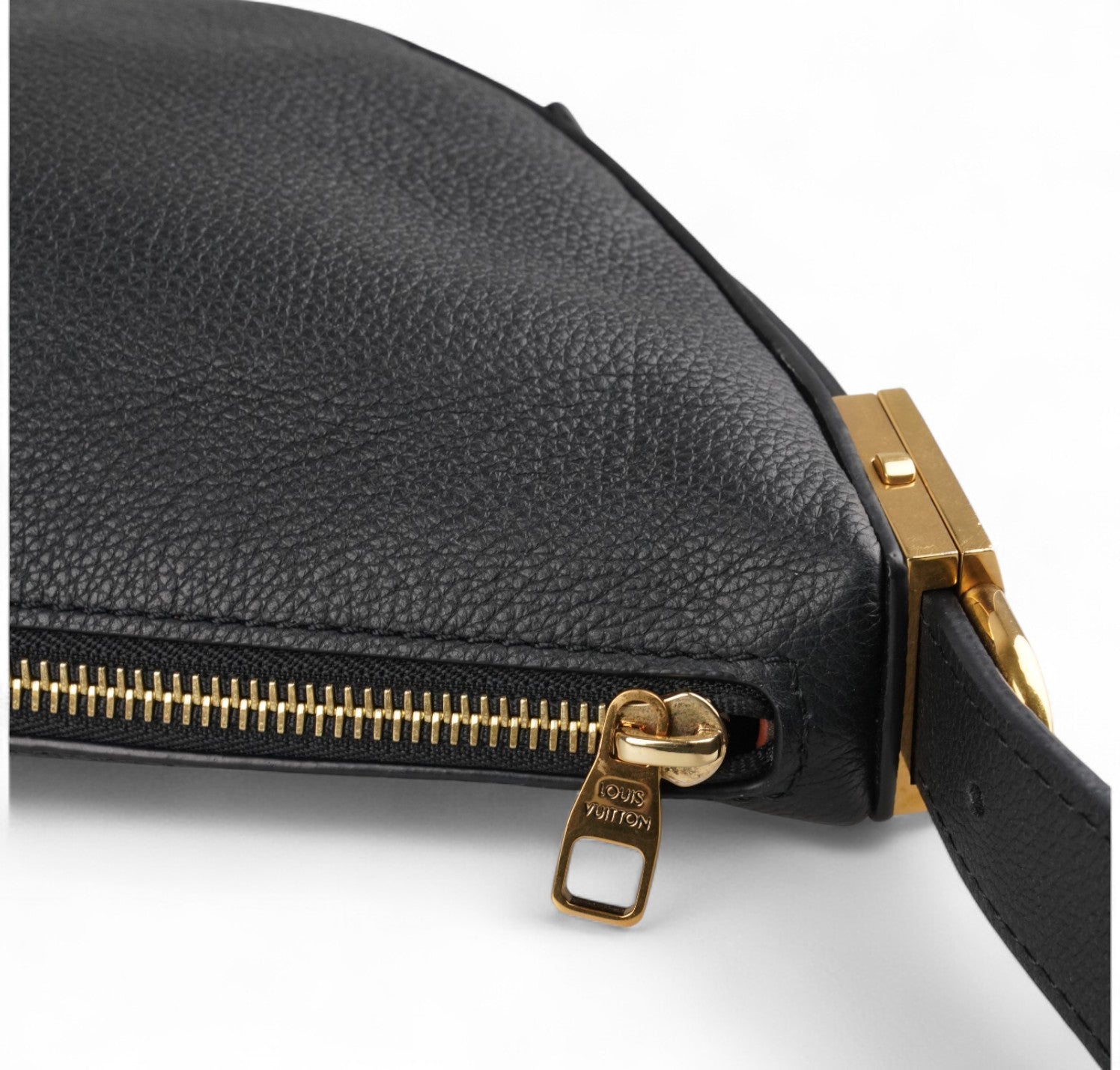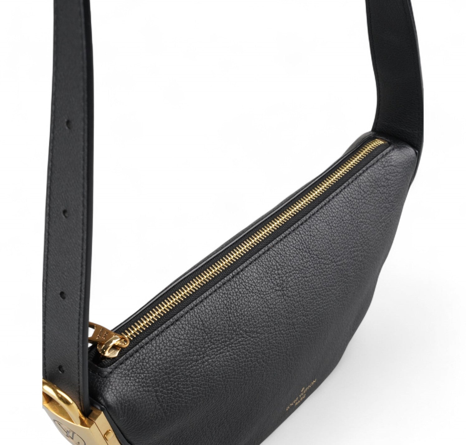 Borsa Louis Vuitton, modello Low Key Bum Bag, realizzata in morbida Pelle Nera martellata con dettagli in metallo finitura Oro lucido. Design a mezza luna, pensato per essere indossato crossbody o a spalla grazie alla tracolla regolabile. Chiusura con zip superiore, impreziosita da lucchetto decorativo laterale con logo inciso. Interno in tessuto scamosciato. Perfetta anche come borsa day-to-night. Condizioni eccellenti, minimi segni d'uso generali. Modello attuale, di recente produzione. Microchip interno.