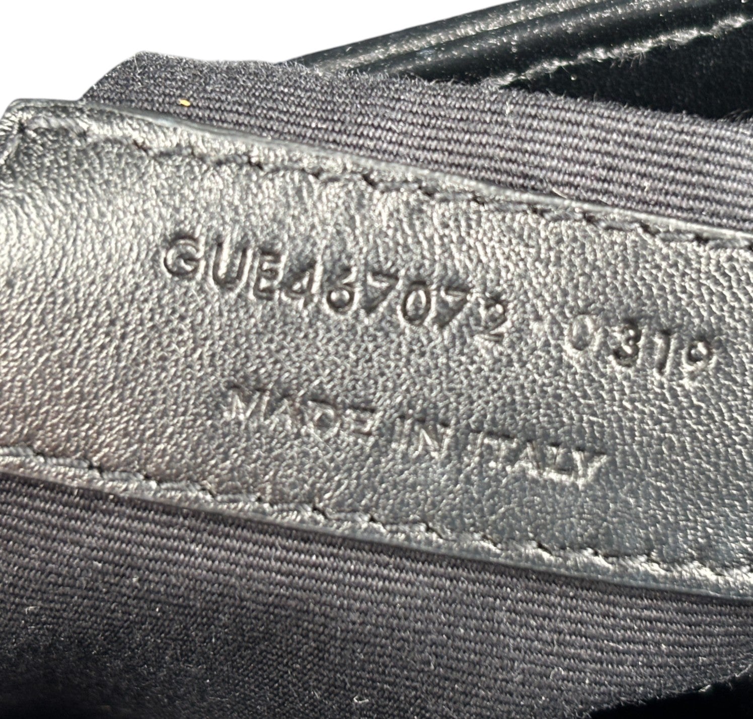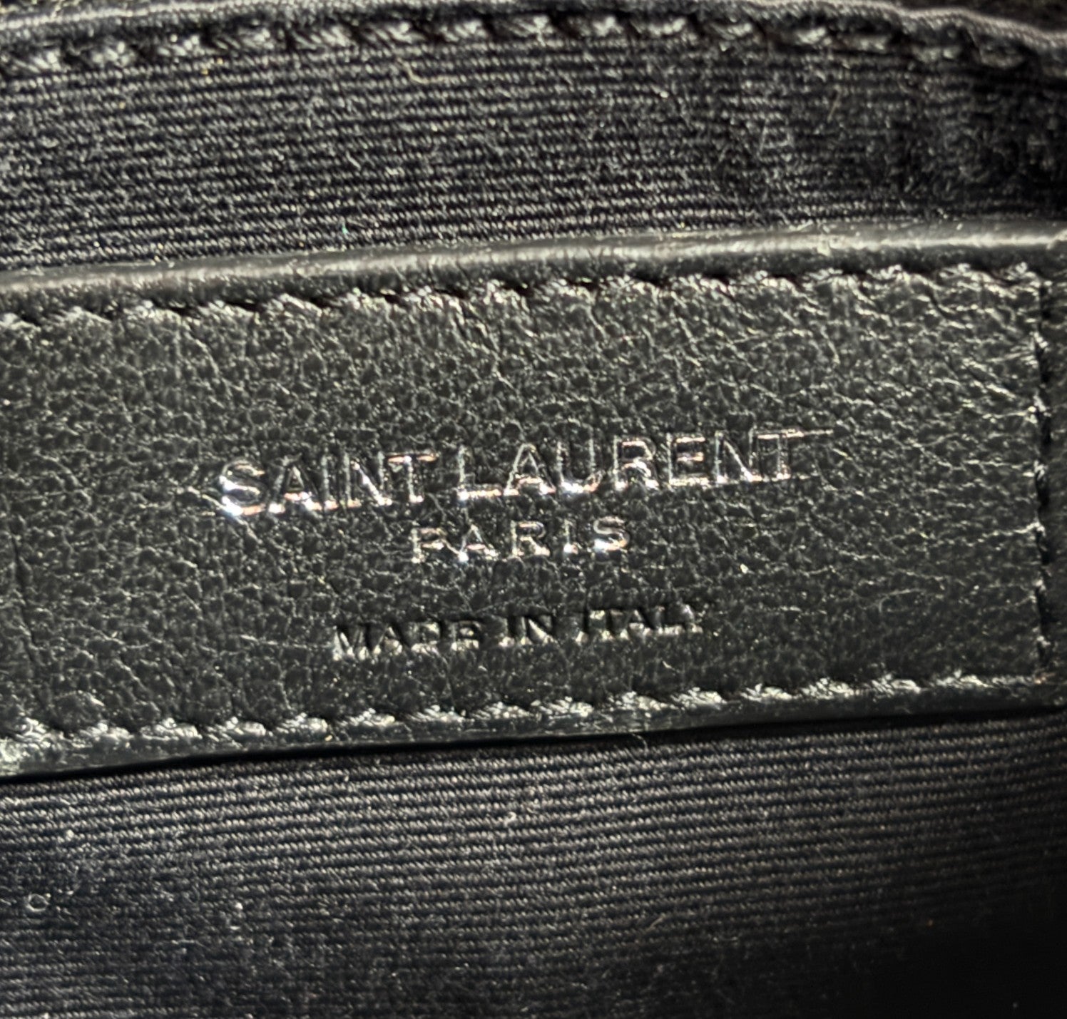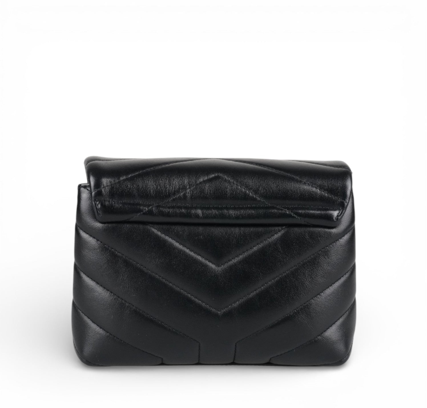 Saint Laurent bag, Loulou model, Toy size, made of Black Leather. Silver-colored hardware. Practical and functional, ideal for both day and night use. Equipped with a removable and adjustable shoulder strap. Wearable on the shoulder, crossbody bag, or even as a Pouch by hand. Front snap closure embellished with YSL logo. Fabric-lined interior with two compartments, zip pocket. Very light signs of general use.