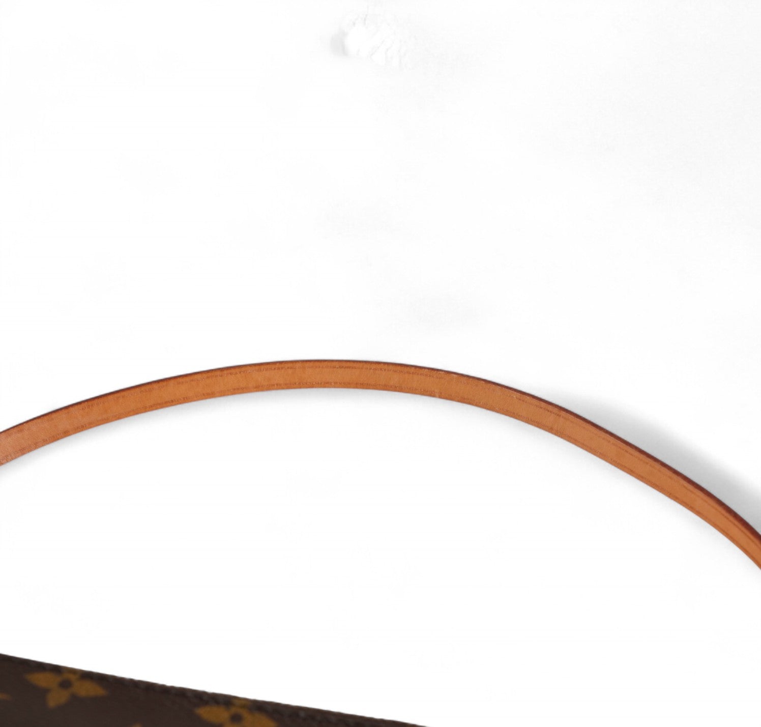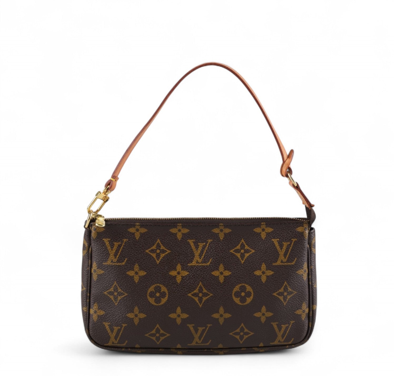 Louis Vuitton bag, Pochette Accessoires model, made of Monogram Canvas. Natural Cowhide finishing. Gold hardware. Top zip closure. Equipped with top handle for carrying by hand or shoulder. Fabric lined interior. Slight general signs of aging.