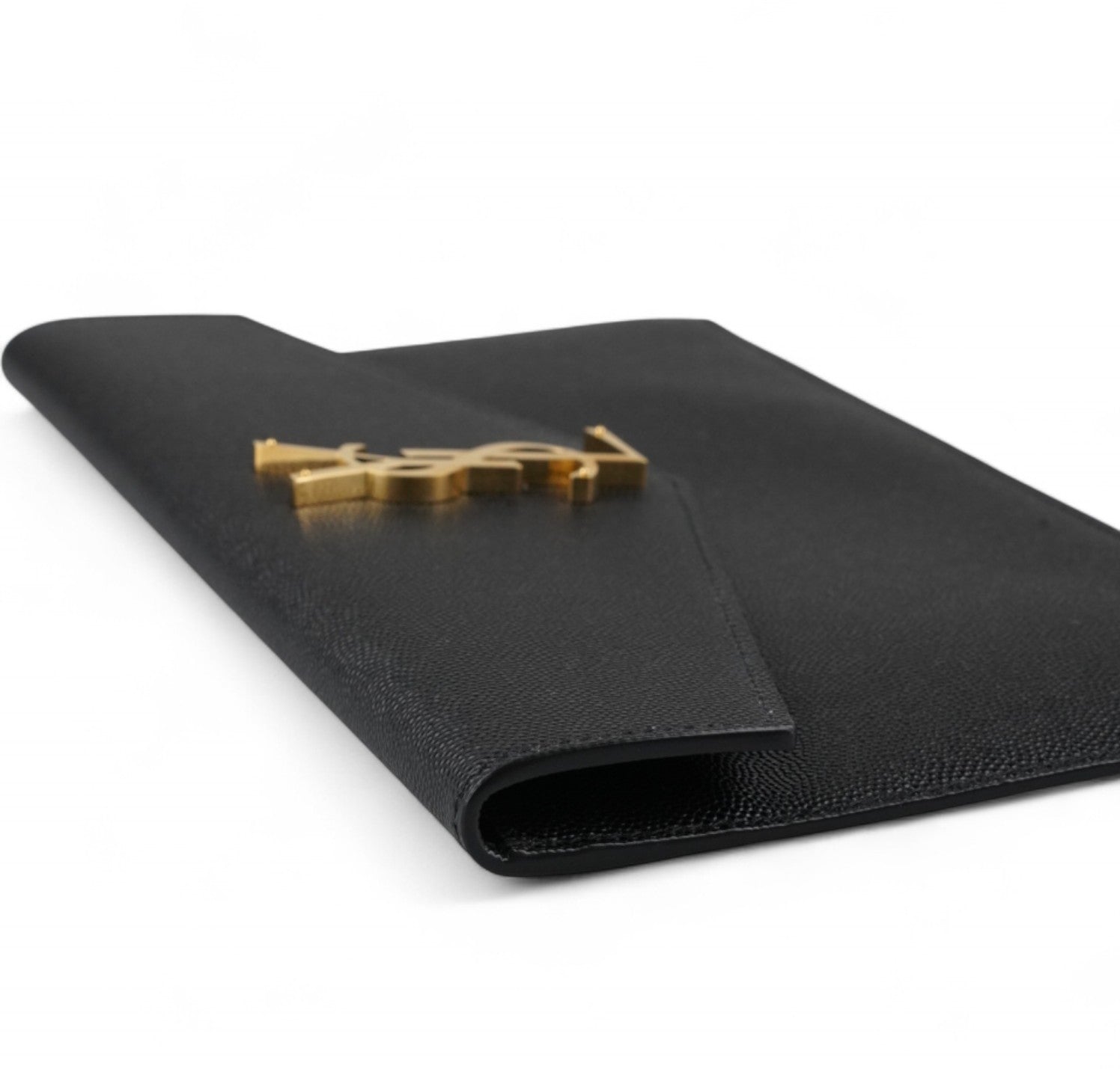 Pochette Saint Laurent, modello Uptown, realizzata in Pelle Goffrata Grain De Poudre Nera. Metalleria in ottone dorato effetto anticato. Chiusura frontale magnetica con logo YSL in metallo applicato. Interno foderato in tessuto con unico scomparto. Articolo in condizioni pari al nuovo, potrebbe presentare minimi segni di stoccaggio.