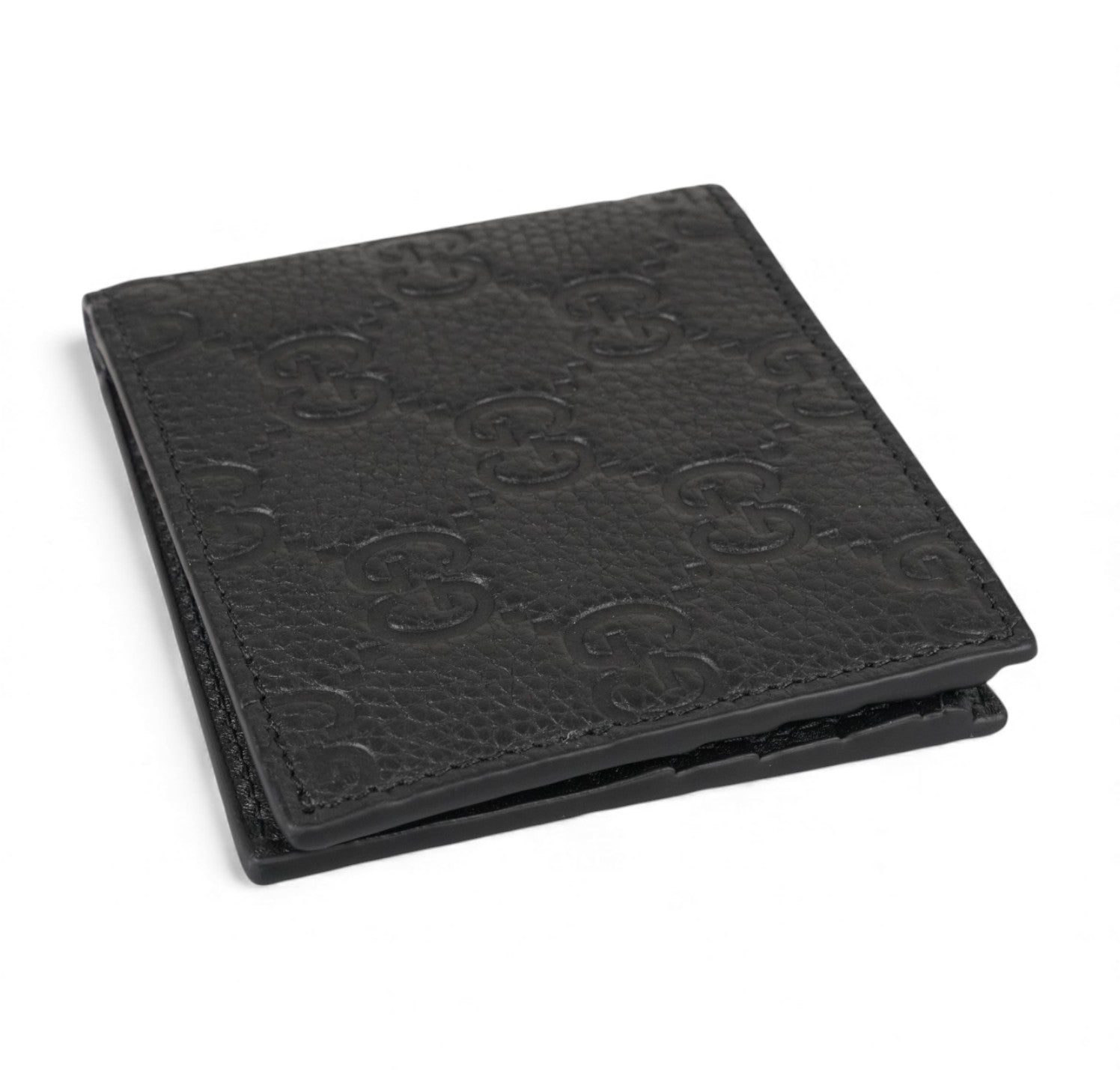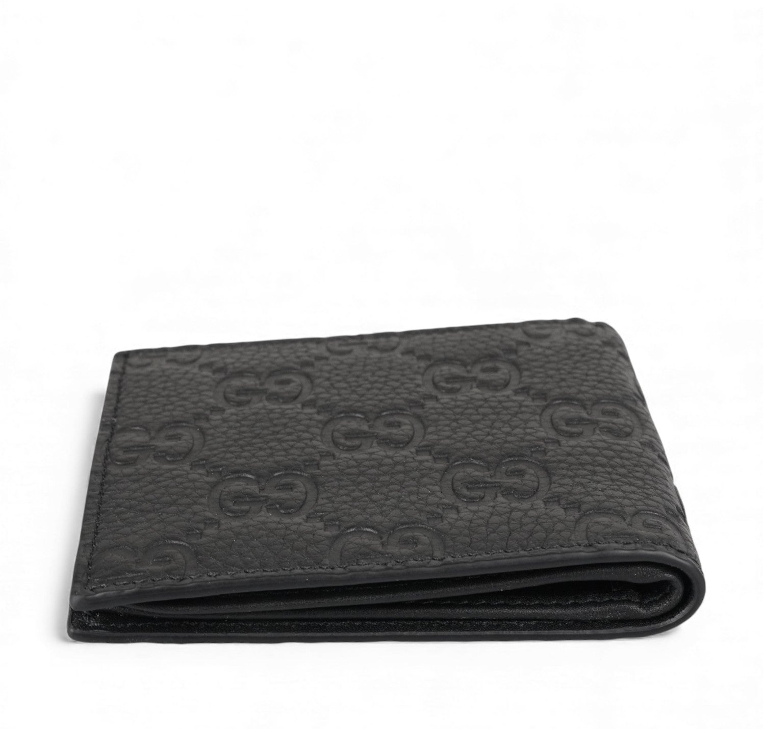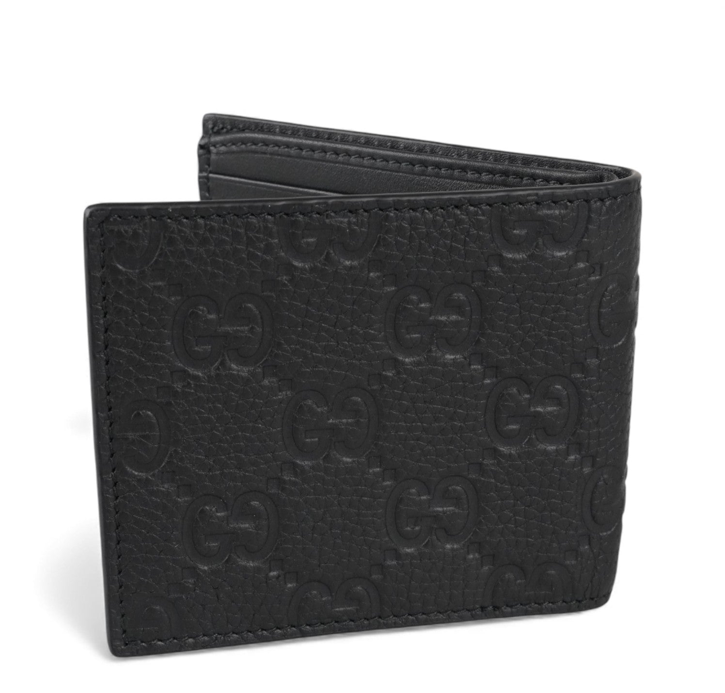 Portafoglio Gucci, modello bi-fold Imprint, in Pelle Nera con motivo GG. L’interno è organizzato da diversi scomparti per carte e vano per banconote. Dalle dimensioni pratiche da portare comodamente in tasca. Condizioni pari al nuovo, mai utilizzato.