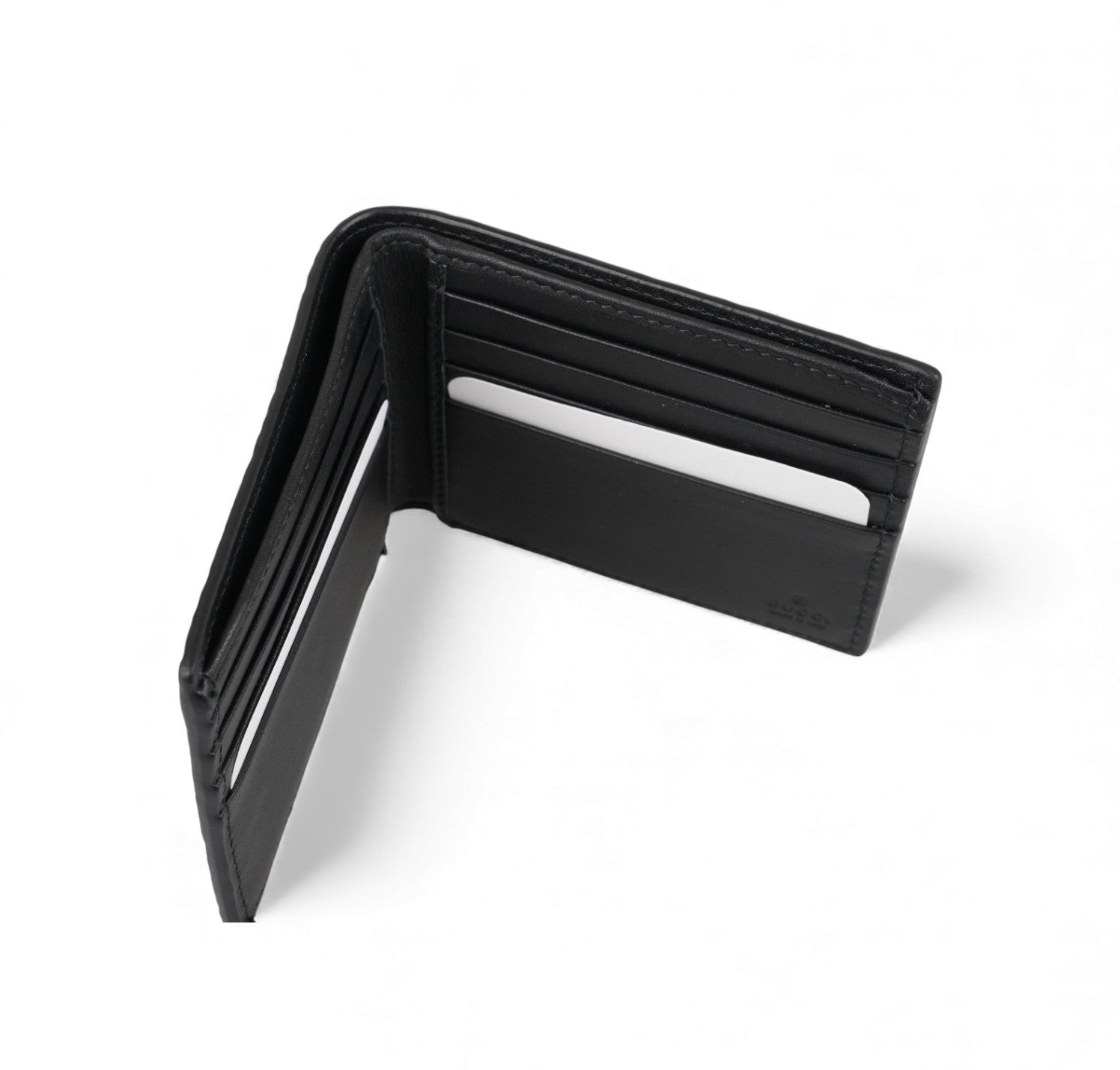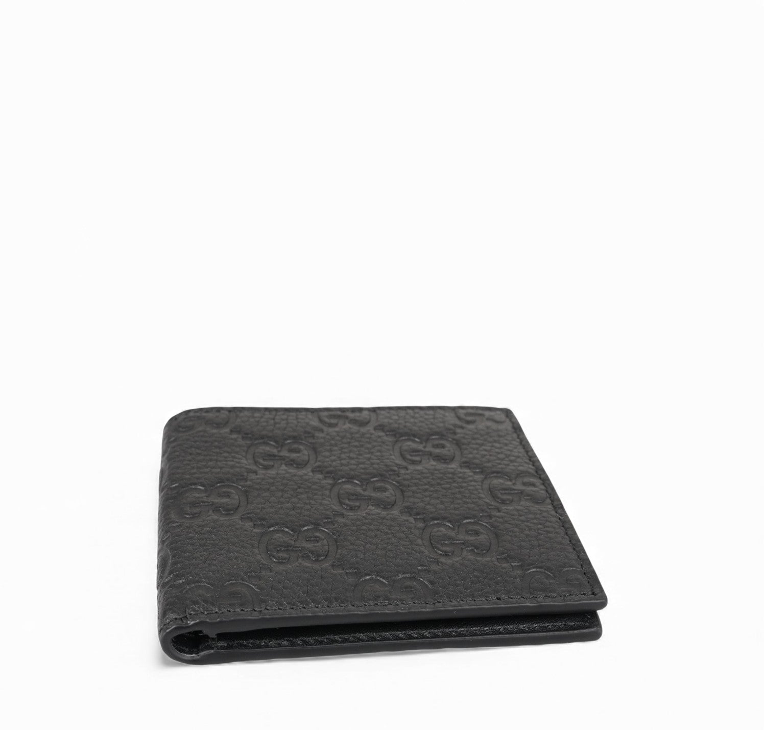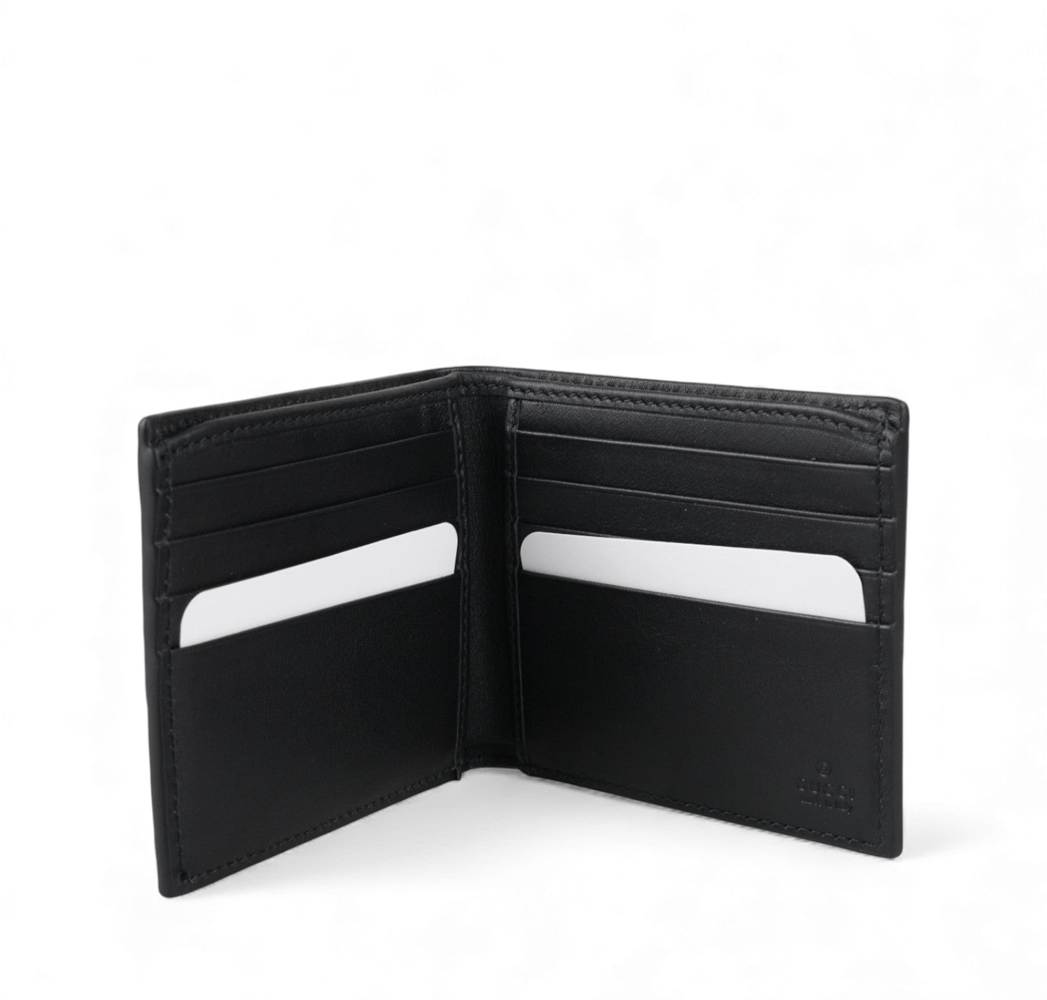 Portafoglio Gucci, modello bi-fold Imprint, in Pelle Nera con motivo GG. L’interno è organizzato da diversi scomparti per carte e vano per banconote. Dalle dimensioni pratiche da portare comodamente in tasca. Condizioni pari al nuovo, mai utilizzato.