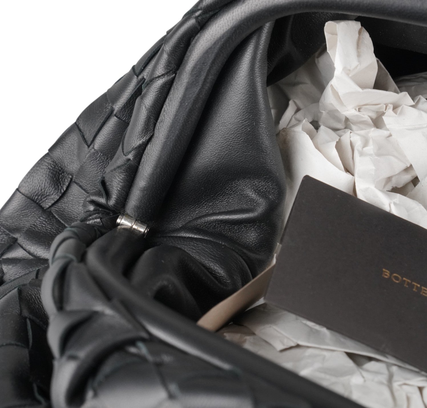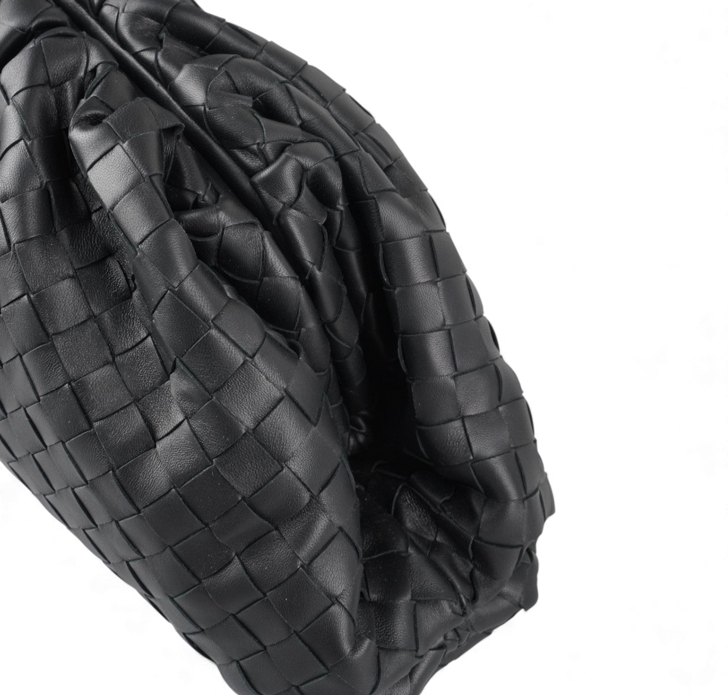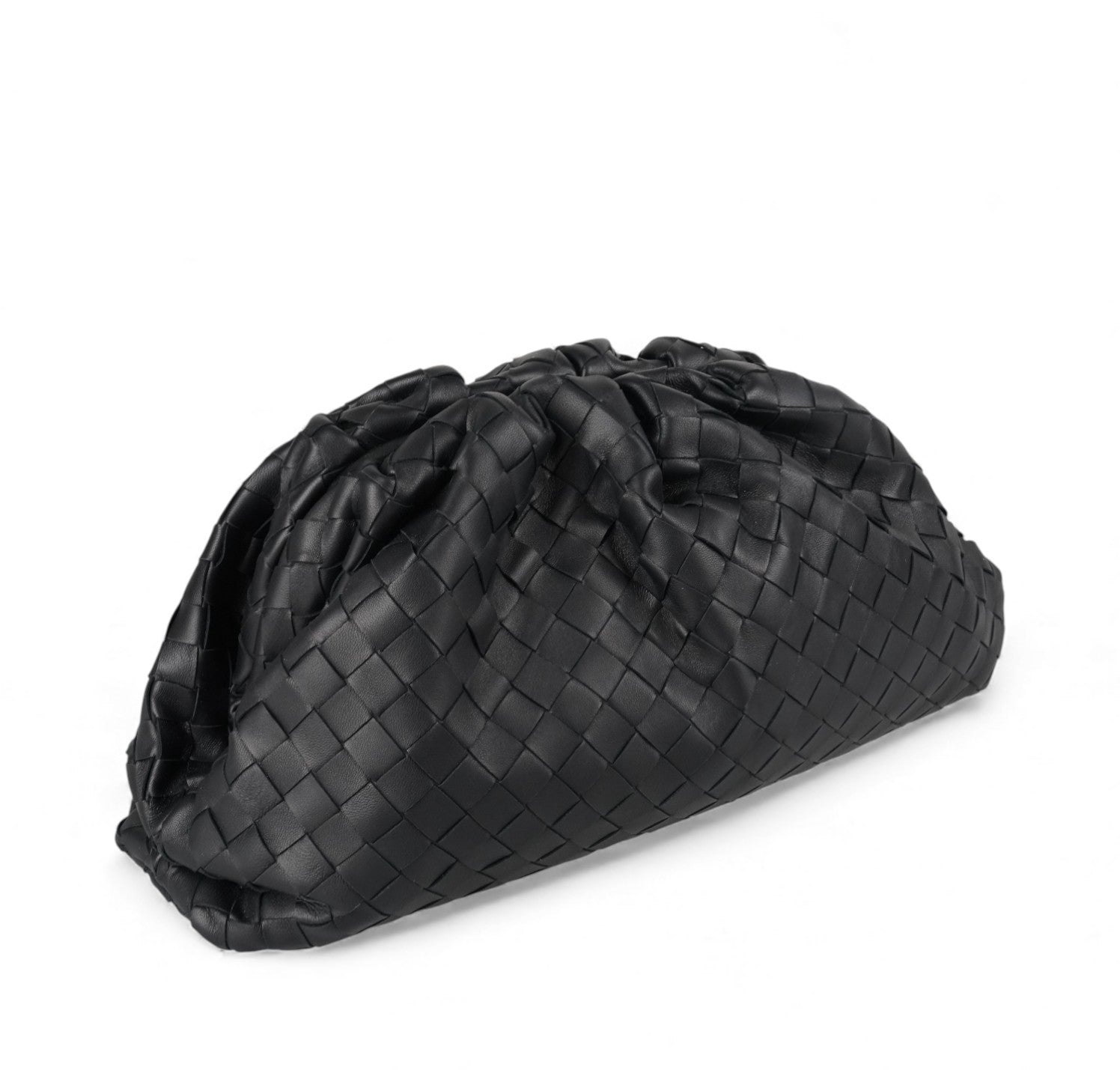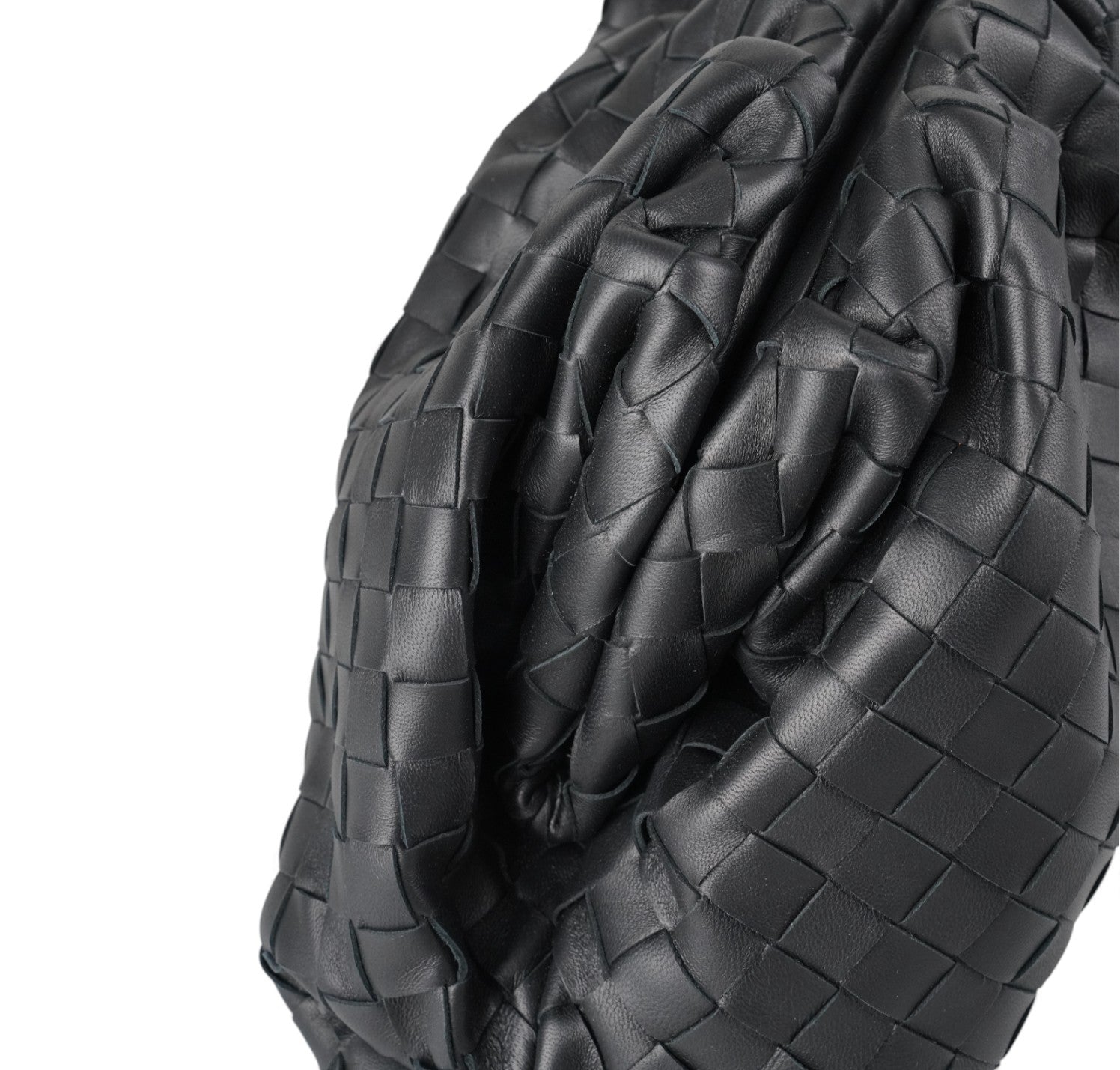 Maxi Clutch Bottega Veneta, Pouch Intrecciato in Bordeaux Leather. Soft shape with particular gatherings at the closure. Features a magnetic snap closure. Leather interior with a single compartment, large and roomy. Like new condition, never worn item.