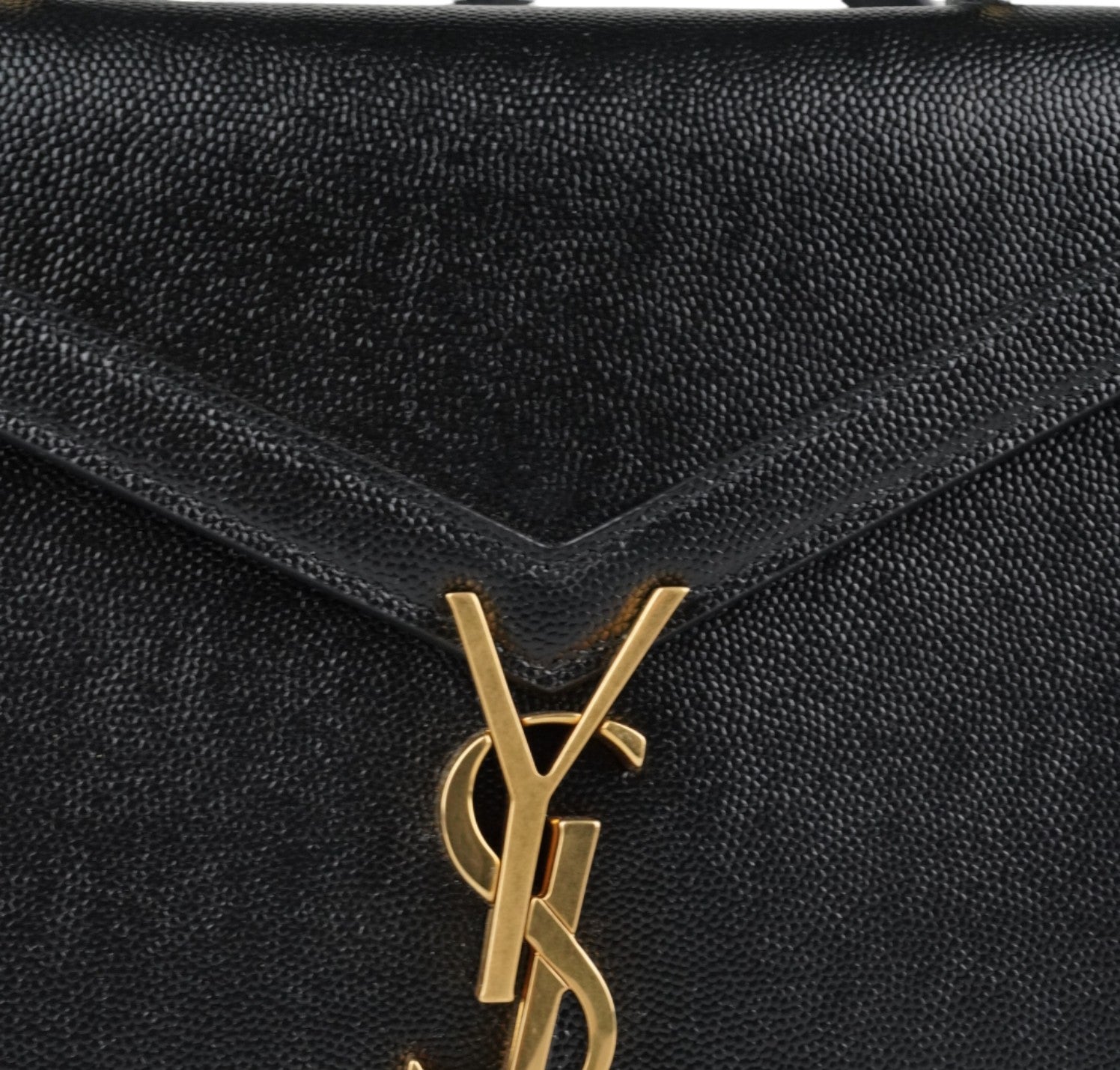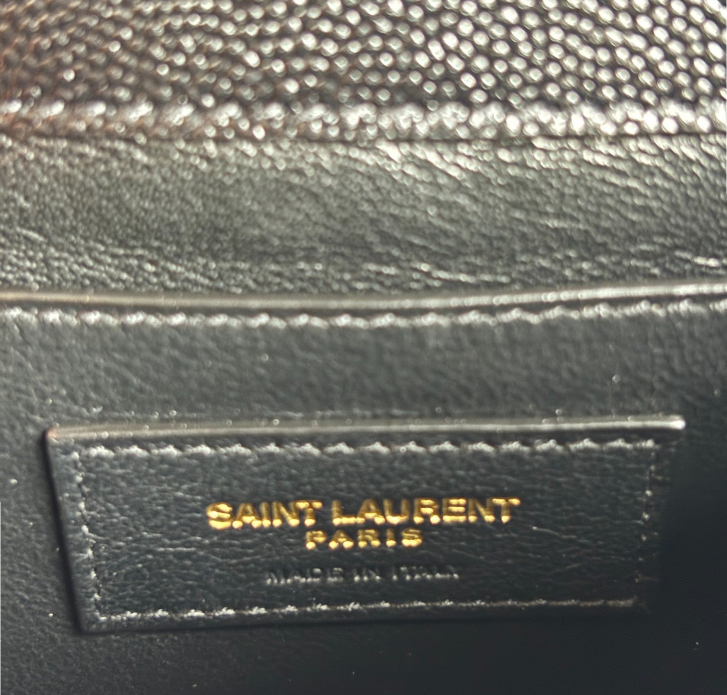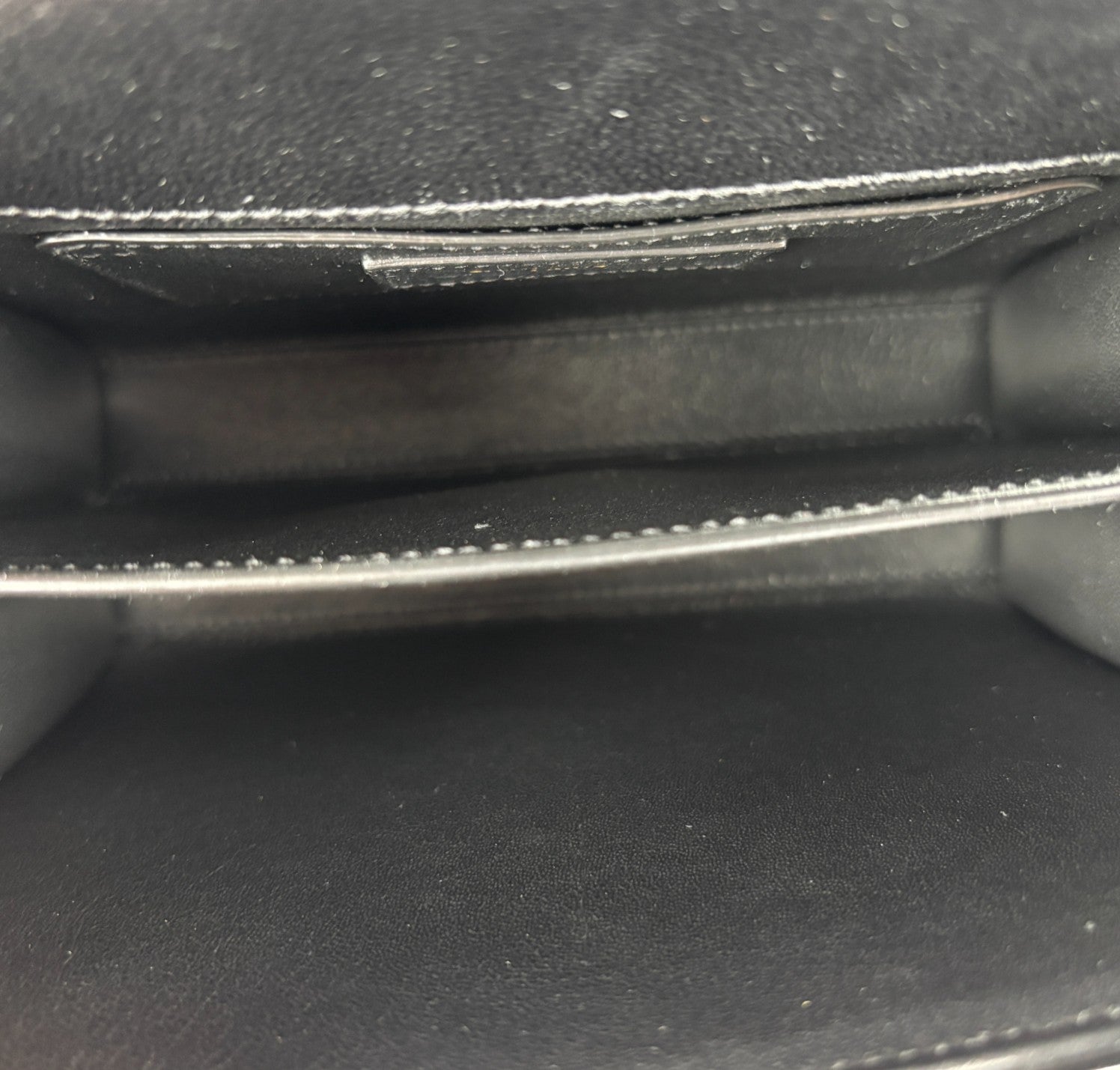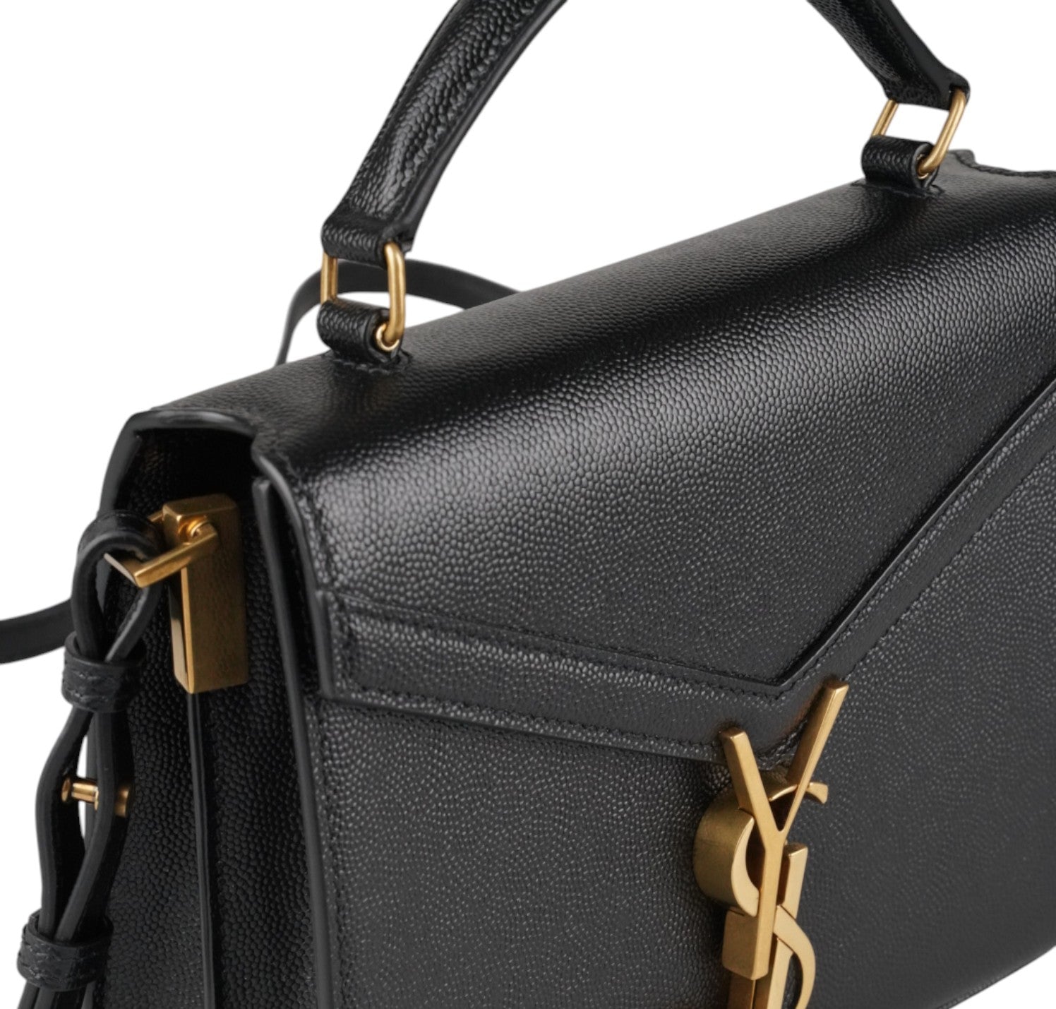 Borsa Saint Laurent, modello Cassandra, misura Mini, realizzata in pelle Nera con finiture in metallo dorato. Caratterizzata dall’iconico monogramma YSL frontale che funge anche da chiusura. Sotata di manico superiore e tracolla regolabile e removibile, che consente un doppio utilizzo: a mano o a spalla/crossbody. Interno compatto ma ben organizzato, con scomparti e tasca piatta. Modello perfetto per completare look eleganti e sofisticati. Condizioni pari al nuovo, potrebbe presentare micro segni di stoccaggio.