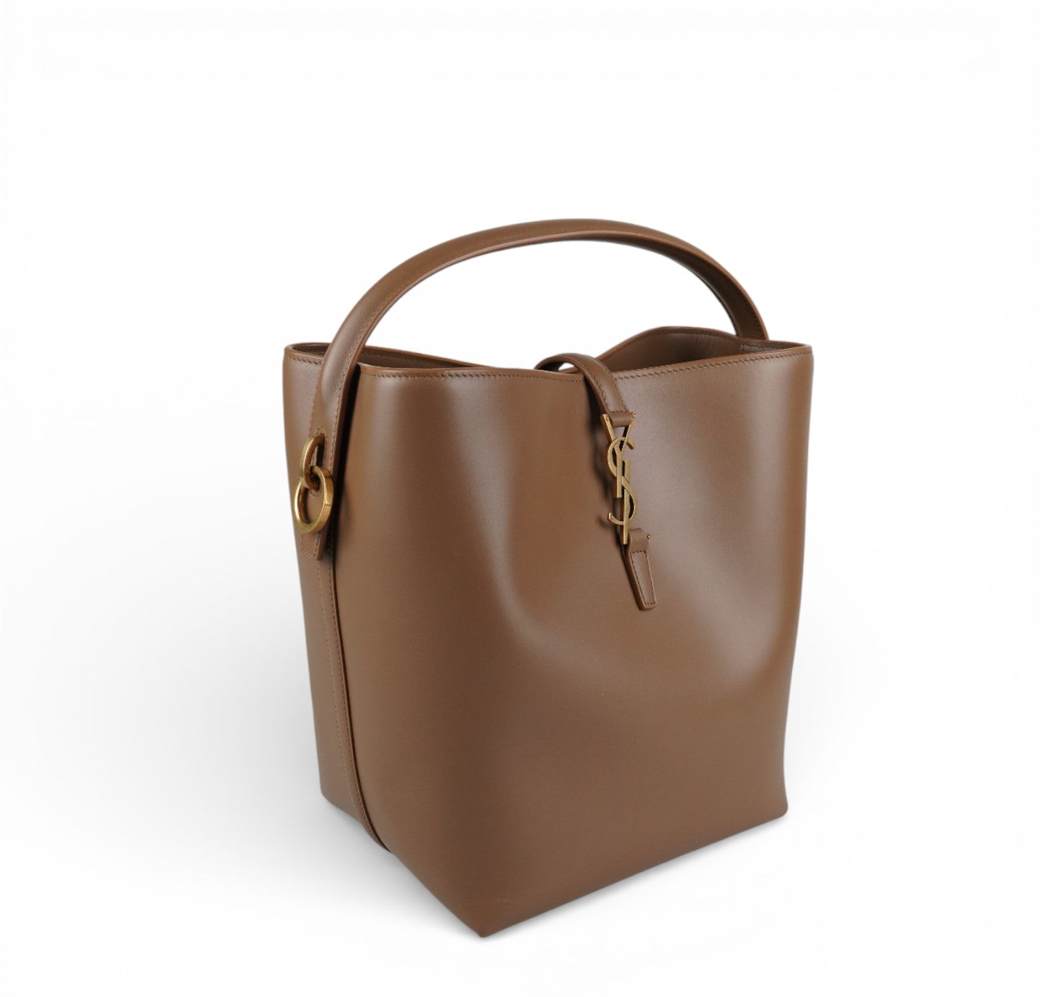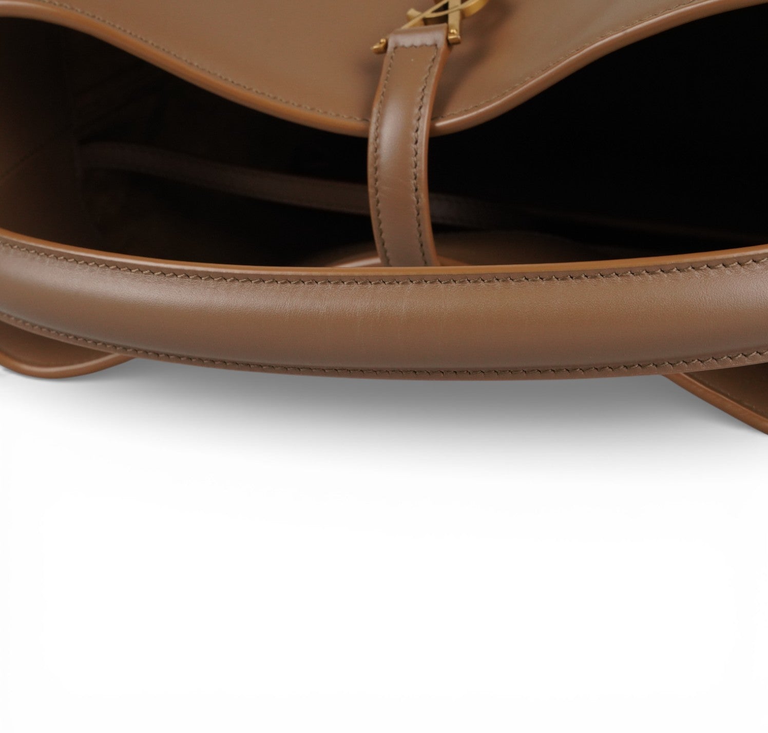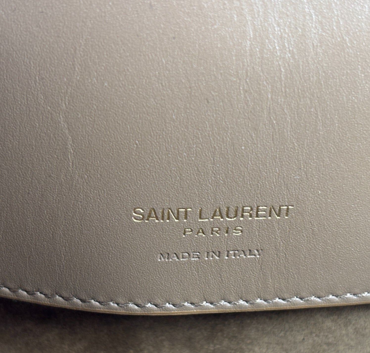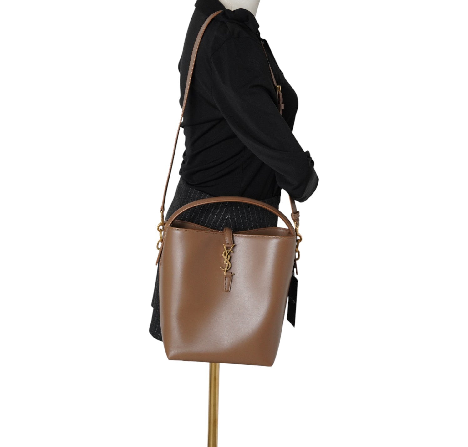 Borsa Saint Laurent, modello Le 37, realizzata in pelle Marrone. Caratterizzata dall’iconico monogramma YSL in metallo color oro effetto anticato applicato su chiusura frontale con cinturino. Interno ampio foderato in suede con base rinforzata. Dotata di manico superiore e tracolla regolabile e removibile per una doppia portabilità. Completa di pouch coordinata. Mai indossata, in condizioni pari al nuovo.