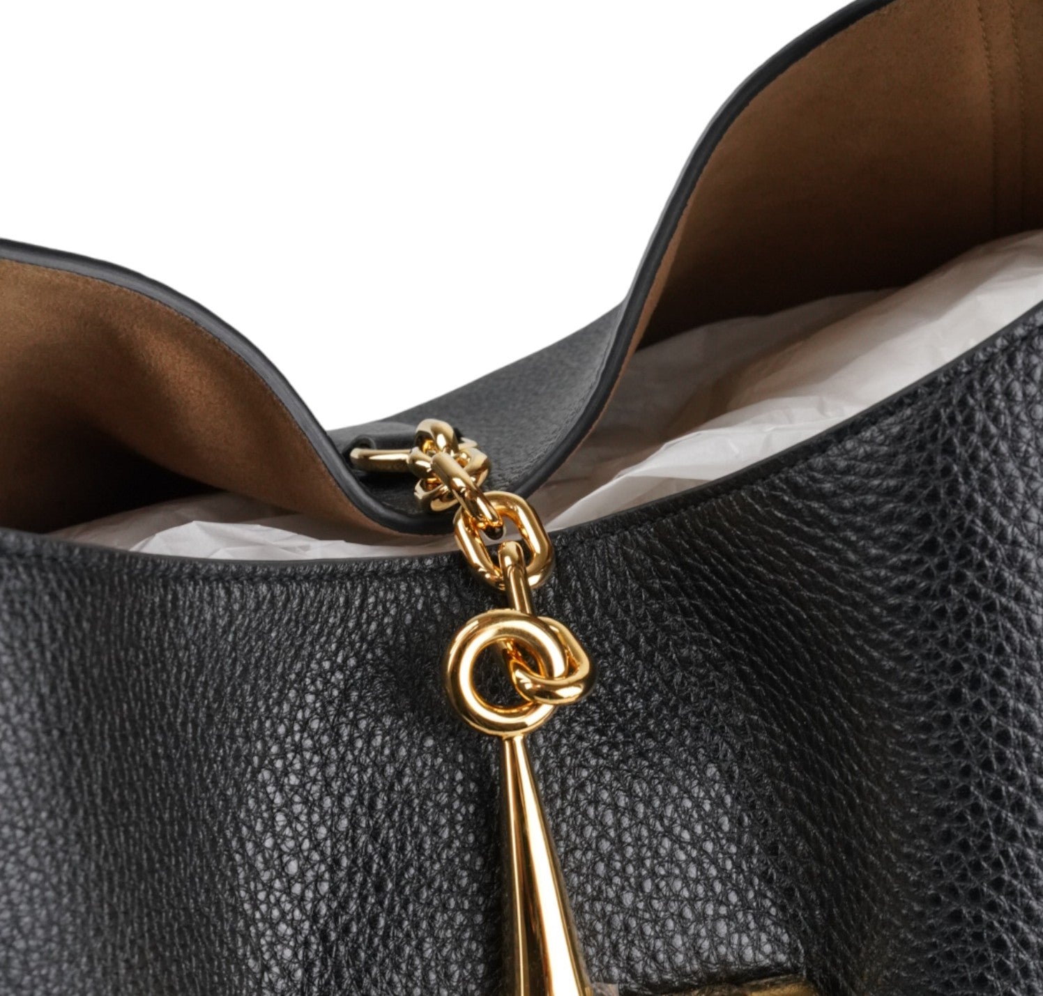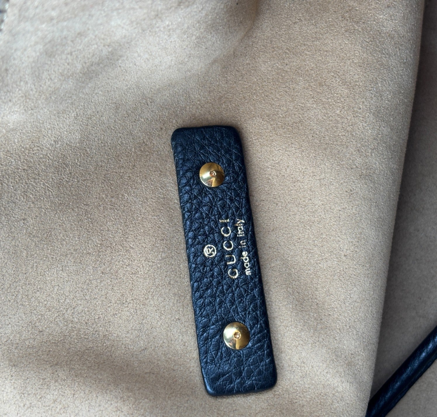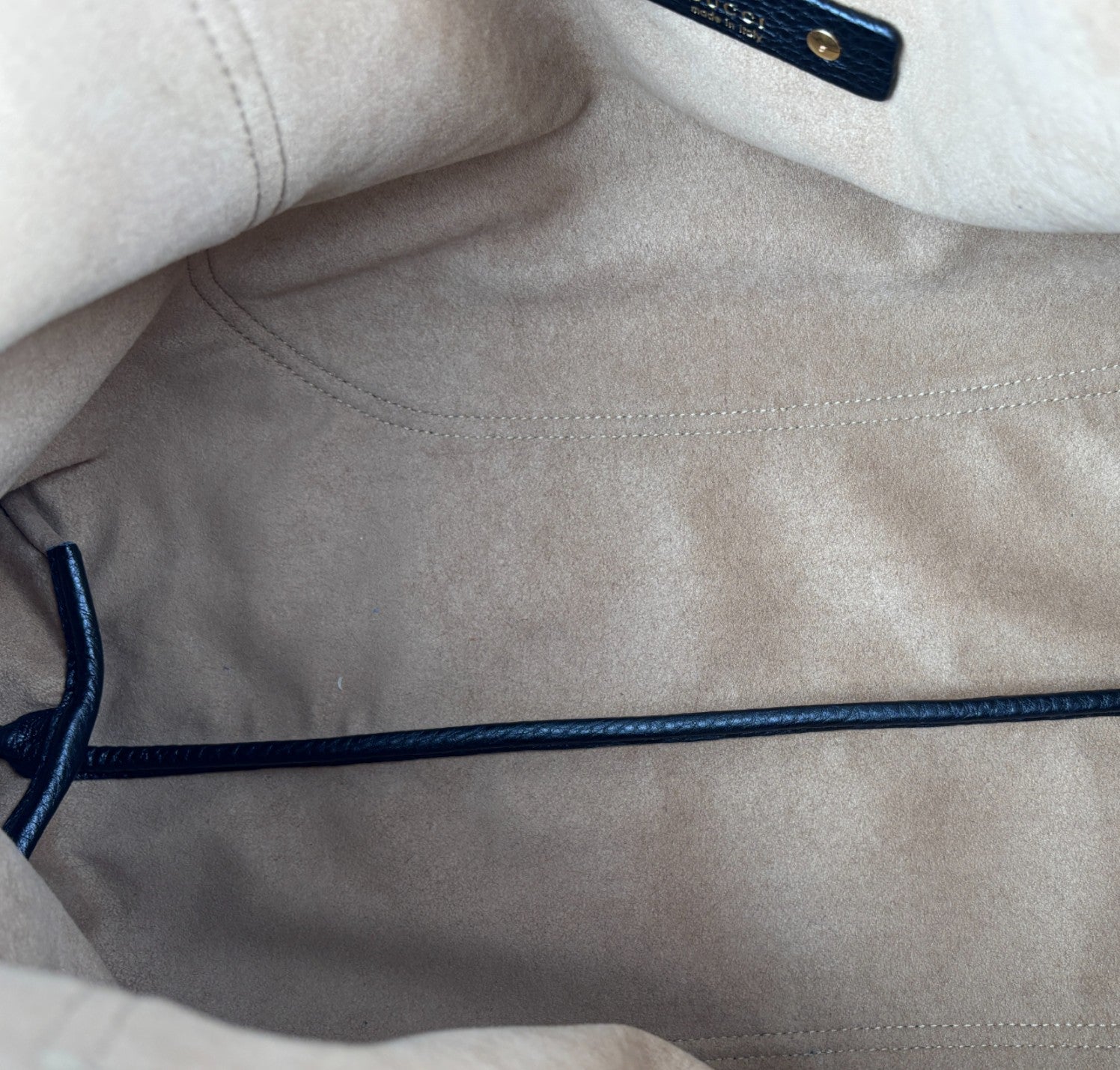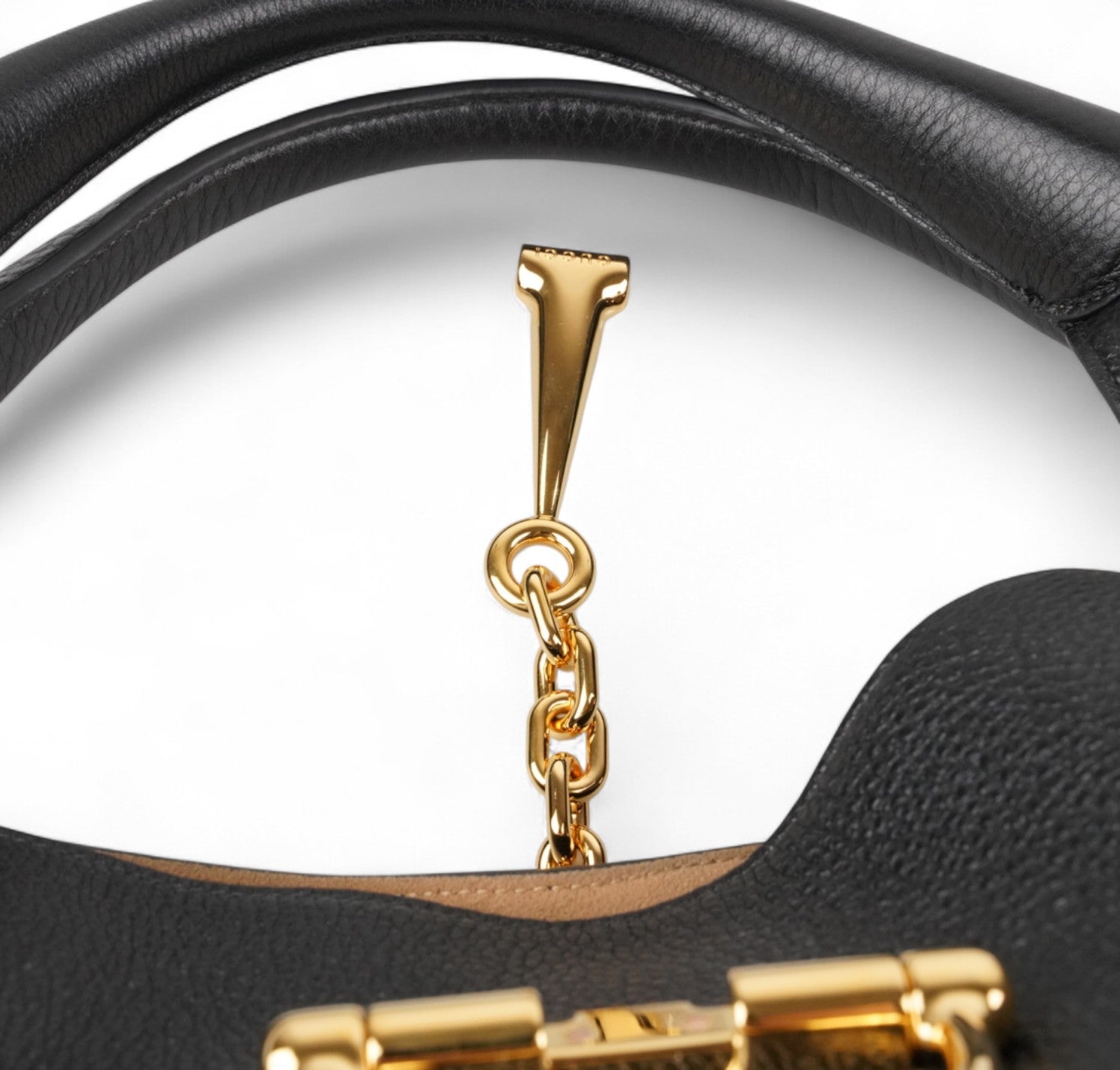 Borsa a spalla Gucci, modello Softbit realizzata in Pelle Granata (grainy) Nera con chiusura a mezza fibbia Horsebit oversize. Finiture in metallo dorato. Interno in microfibra marrone. Dotata di pochette interna removibile. Manici superiori per il trasporto a spalla o mano. Drop manici circa 20 cm. Modello nuova collezione, di produzione recente. Non presenta segni d'uso ma potrebbe comunque presentare micro segni di stoccaggio.