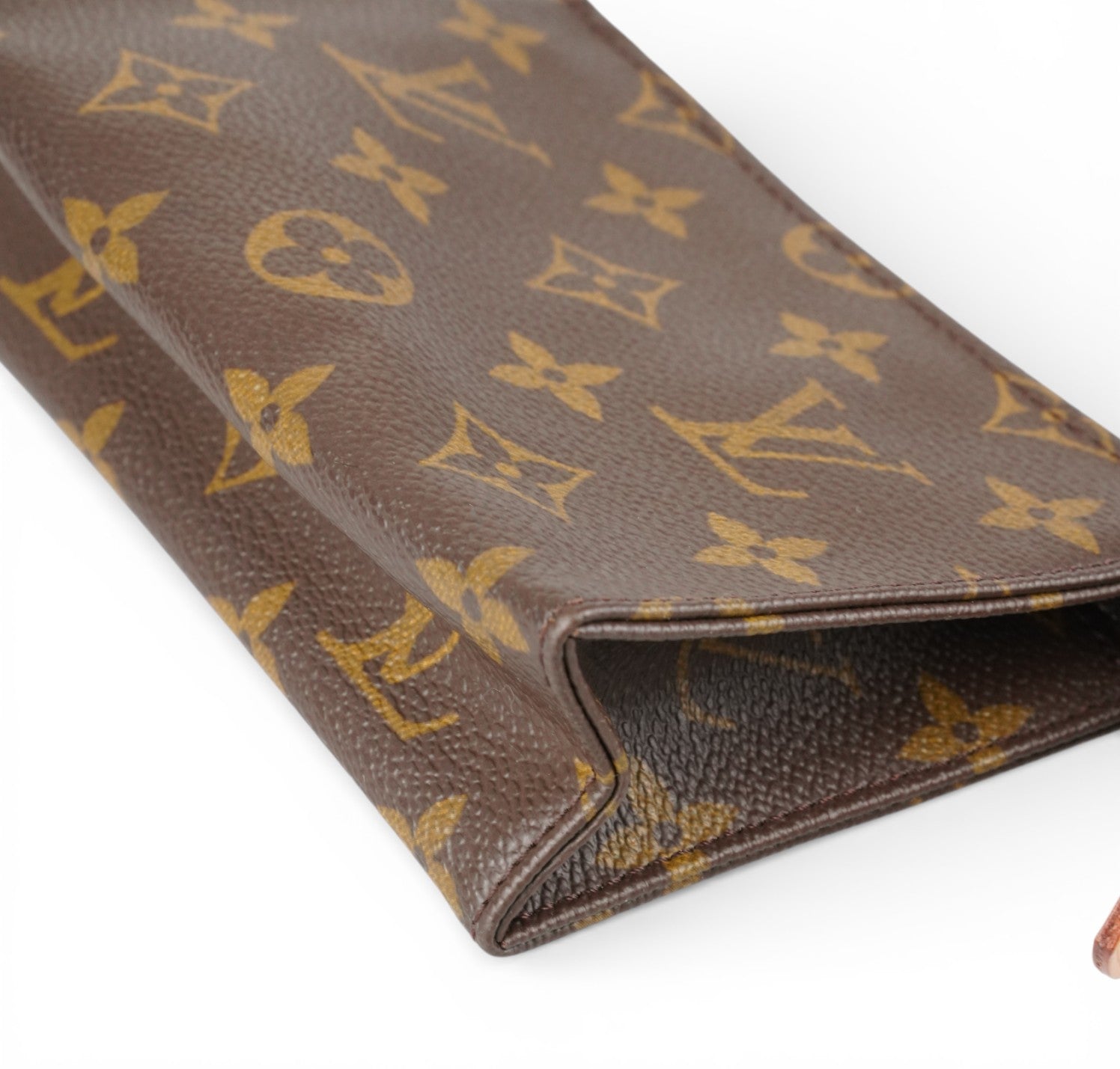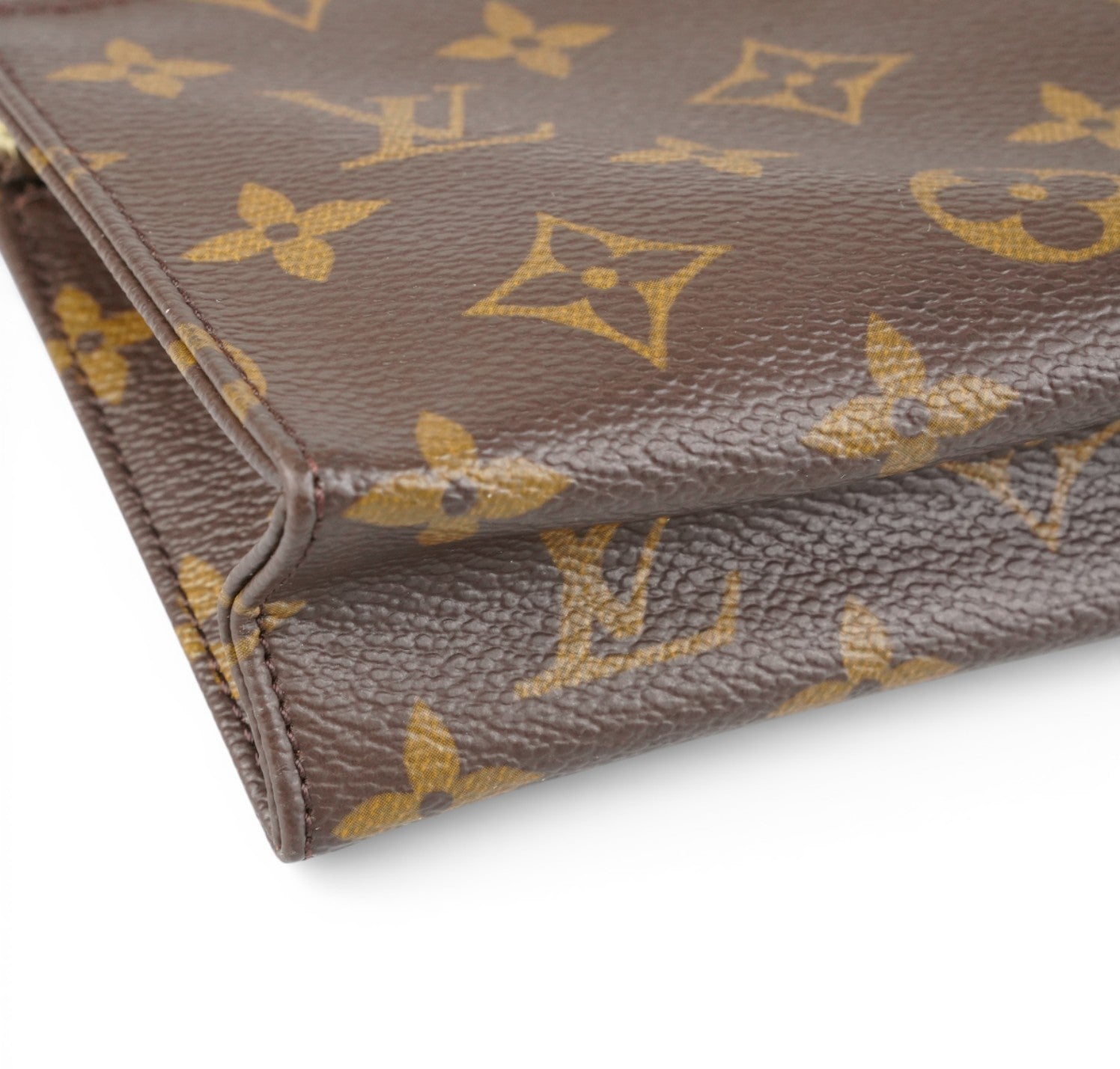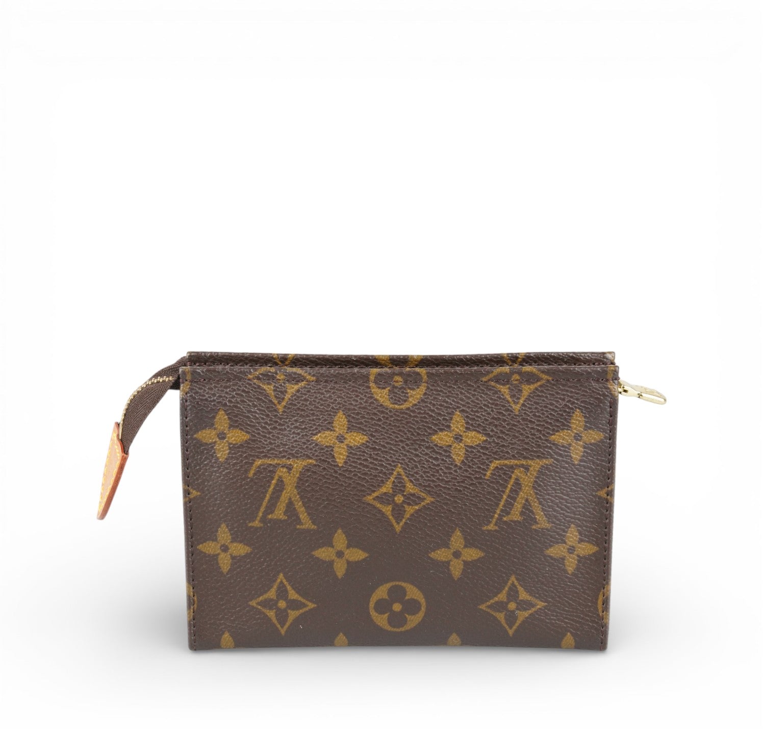 Louis Vuitton clutch, Toilette 19 model, made of Monogram Canvas. Gold-colored hardware. Cowhide details. Internally lined in Beige Leather. Top zip closure. Versatile, with a practical and compact shape. Light signs of use on the internal leather. Light general signs of aging.
