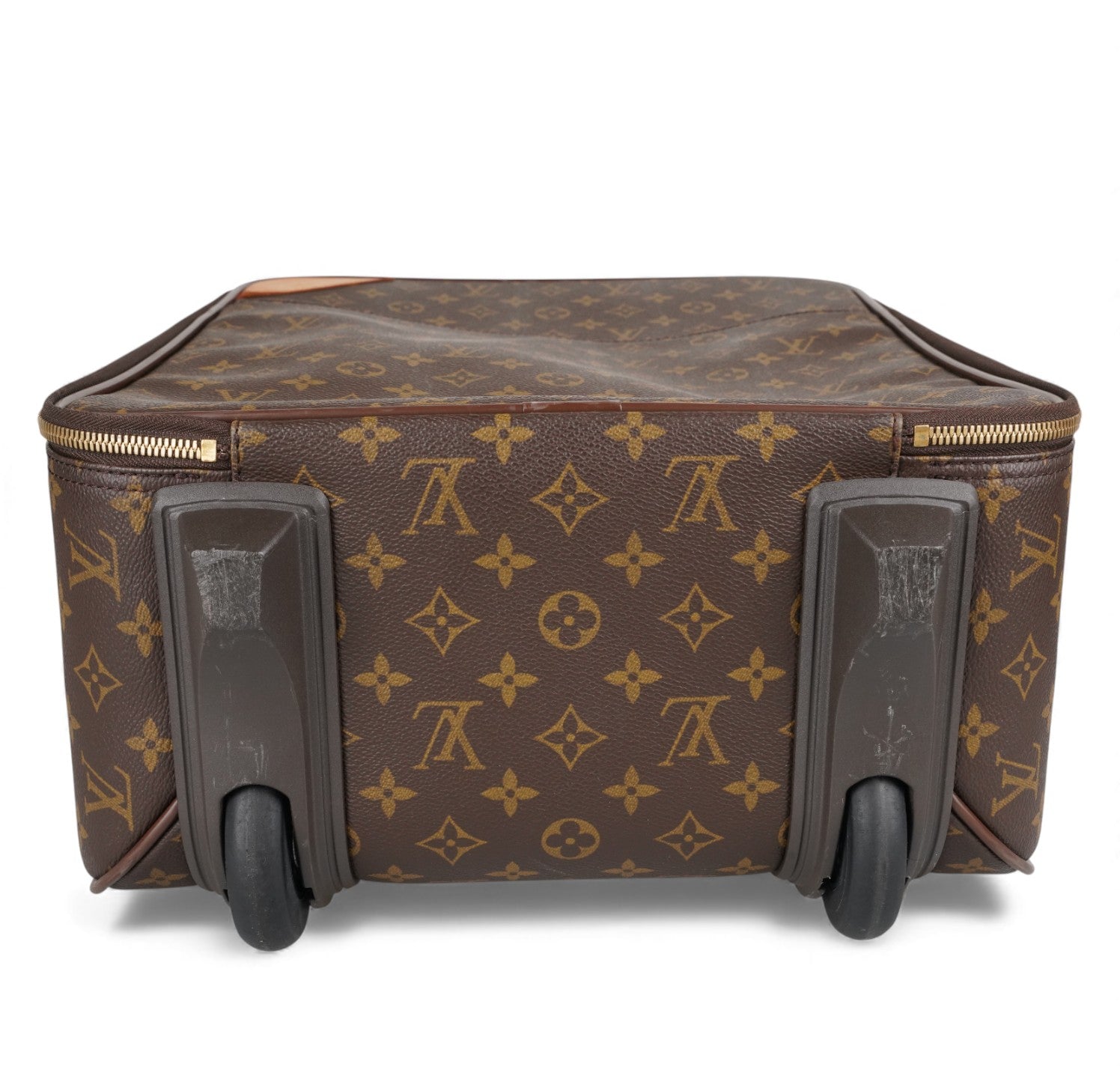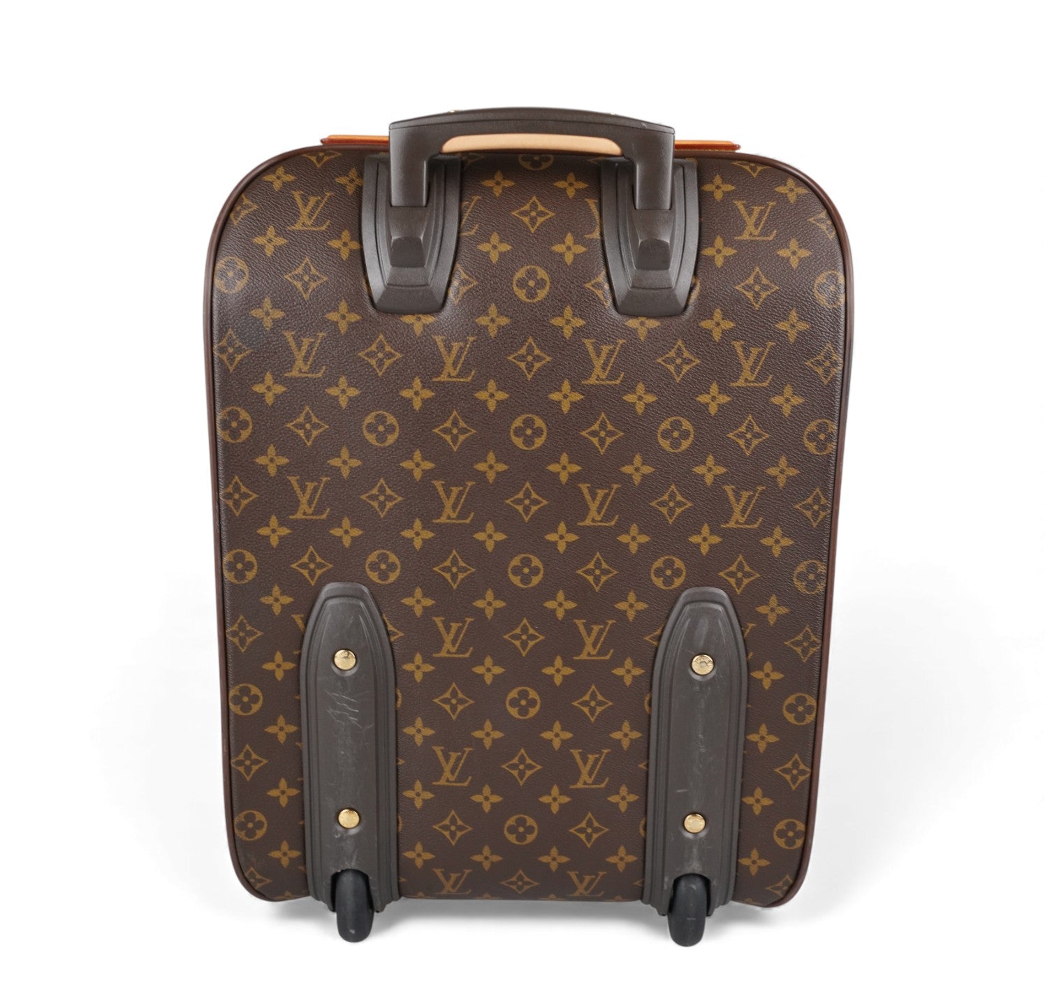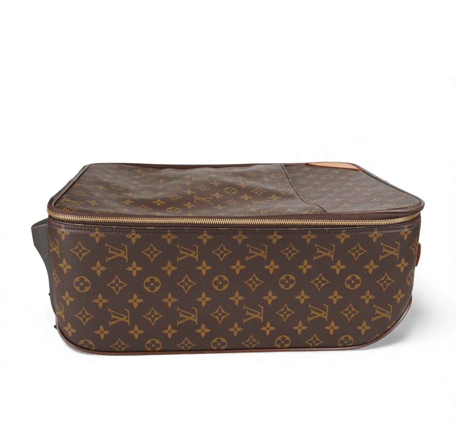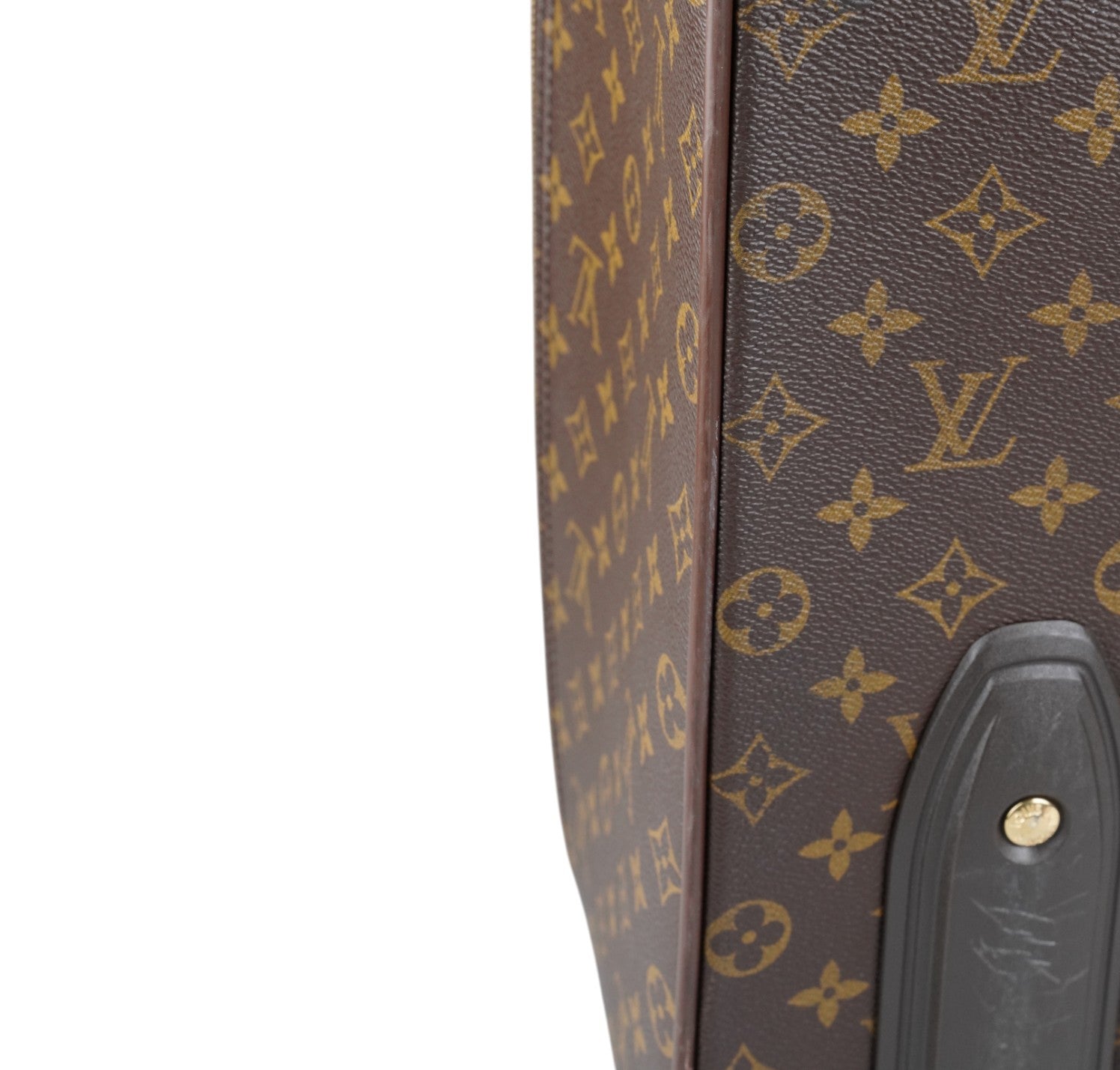Louis Vuitton Trolley, Pégase model, size 45, made of Monogram Canvas. Natural cowhide finishing. Gold hardware. Fabric lined interior. External double slider zip closure. Large flat front pocket. Equipped with extractable top handle, cowhide top handle, Name Tag. In excellent condition, with slight signs of use on plastic plates.