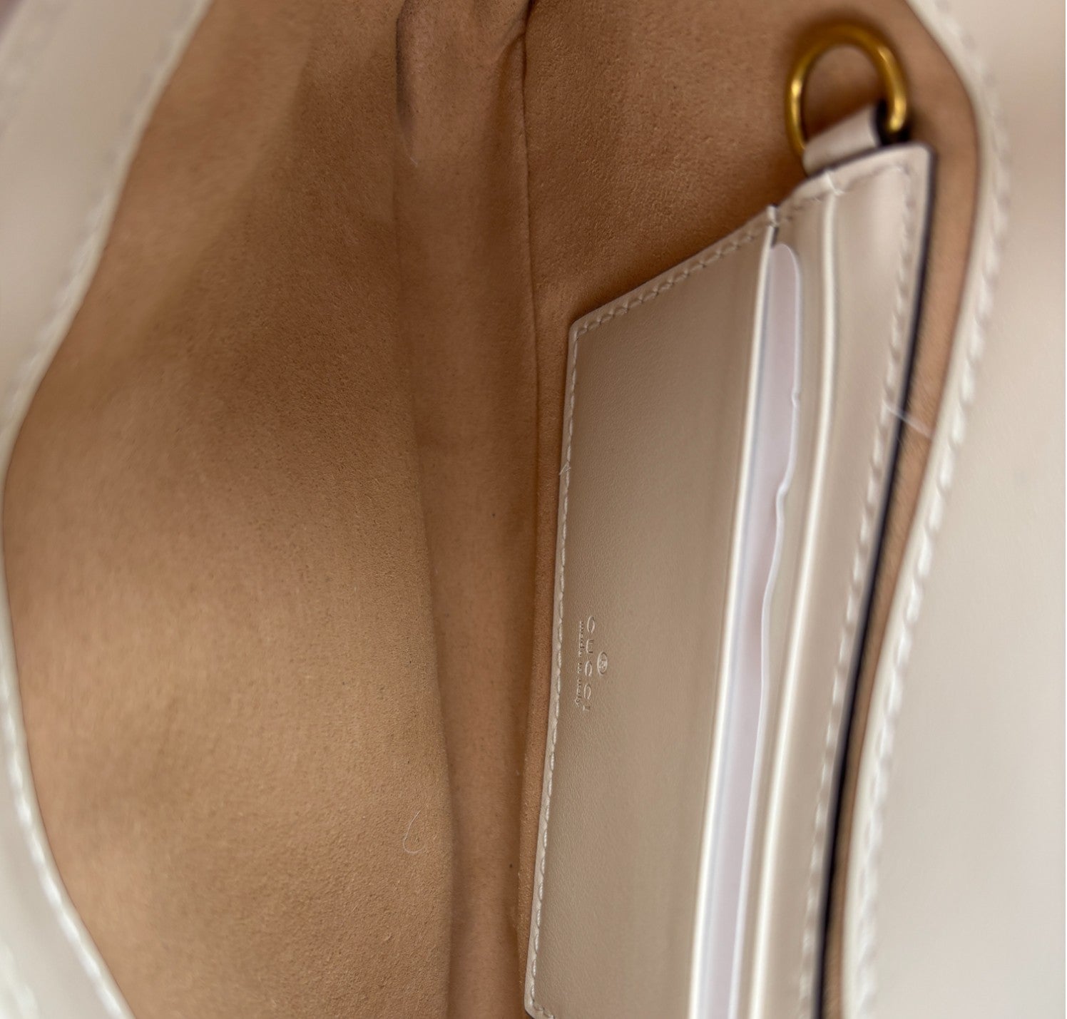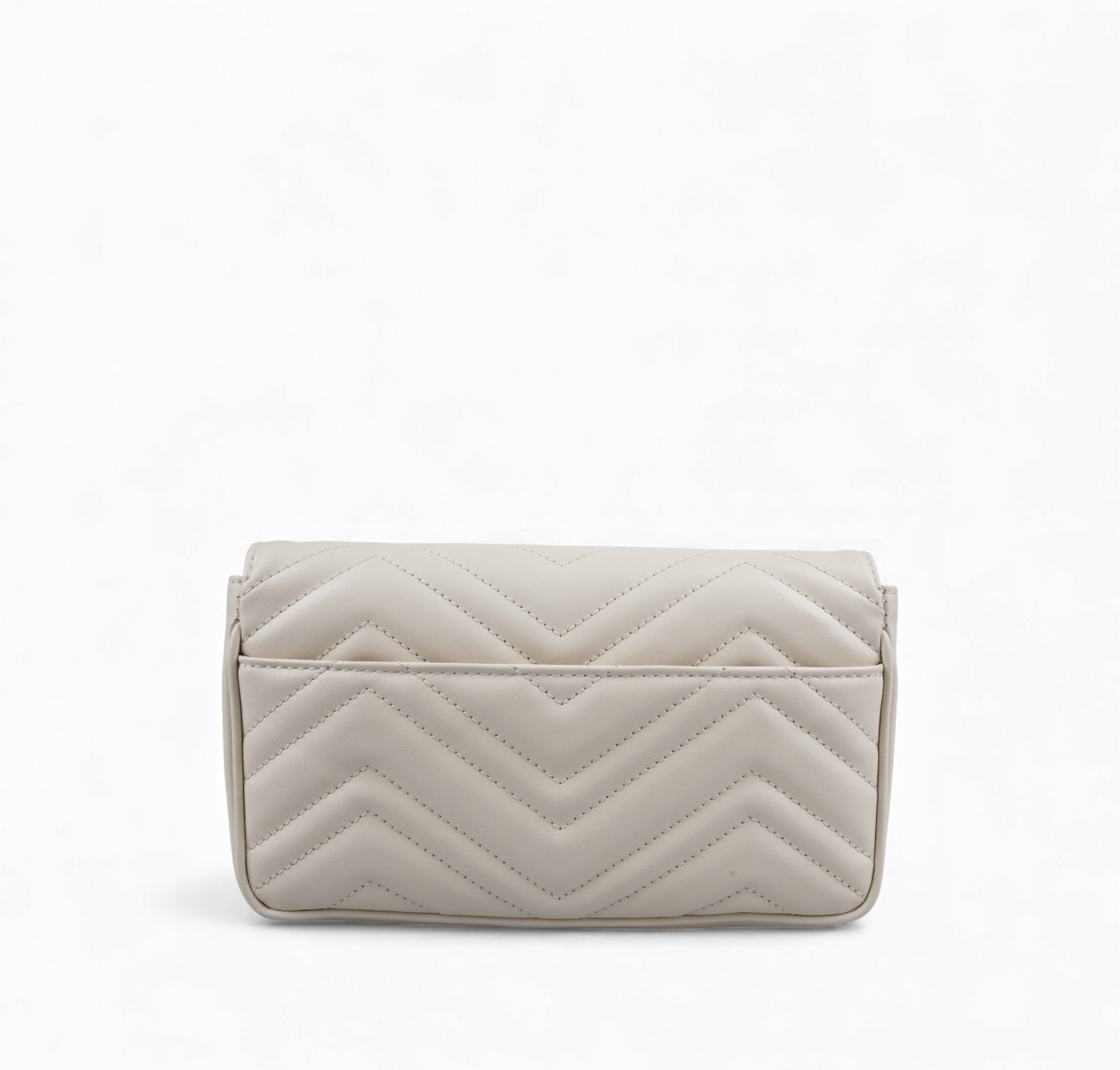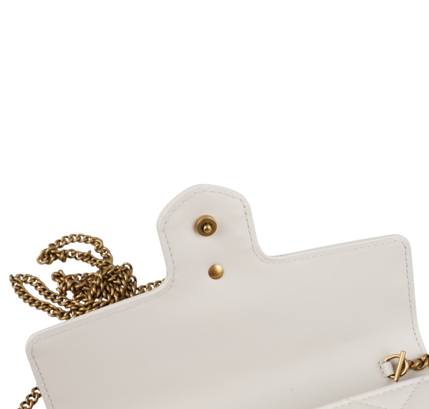 Borsa Gucci, modello GG Marmont Mini, realizzata in morbida Pelle matelassé color Bianco (Avorio). Impreziosita dal logo doppia G frontale e metalleria color Oro anticato. Chiusura con pattina e bottone a pressione. Tracolla a catena amovibile per un utilizzo a spalla, come pochette a mano o crossbody. Interno compatto e ben organizzato, con tasche porta carte. Munita di piccolo organizer a contrasto coordinato in Pelle Nera, da usare come portacarte o portadocumenti con pratica tasca centrale con zip per riporre monete. Pari al nuovo, mai indossata. Potrebbe presentare micro segni di stoccaggio.