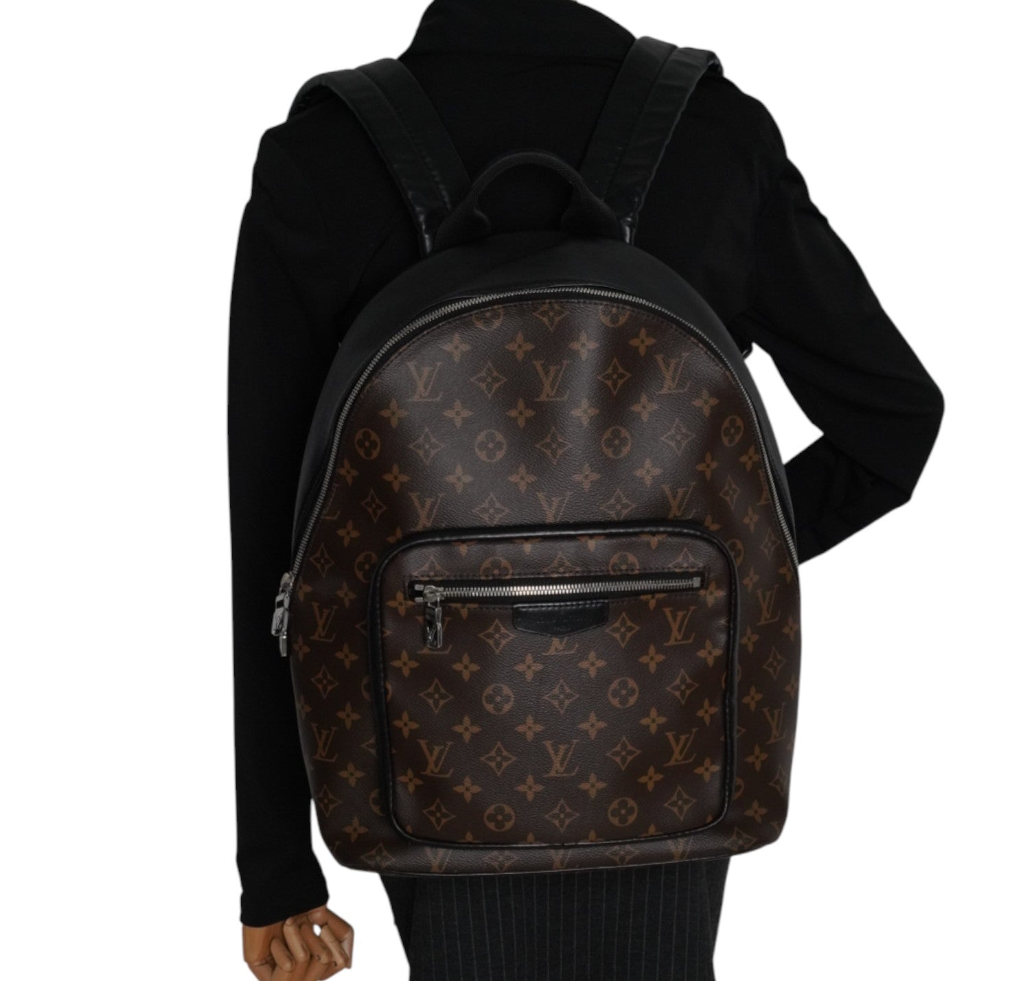 Zaino Louis Vuitton, modello Josh, realizzato in Tela Monogram e dettagli in Pelle Nera. Dotato di tasca frontale con zip, ampio scomparto principale con chiusura a zip e spallacci imbottiti regolabili per il massimo comfort. L’interno, foderato in tessuto nero, presenta una tasca piatta laterale divisa, ideale per piccoli oggetti. Modello dal design moderno ma iconico, perfetto per l'uso giornaliero ma anche da viaggio. Condizioni eccellenti, con lievi micro segni d’usura su un punto del fondo dovuti al normale utilizzo e appoggio. Normali micro graffi alla metalleria. Presente Microchip.