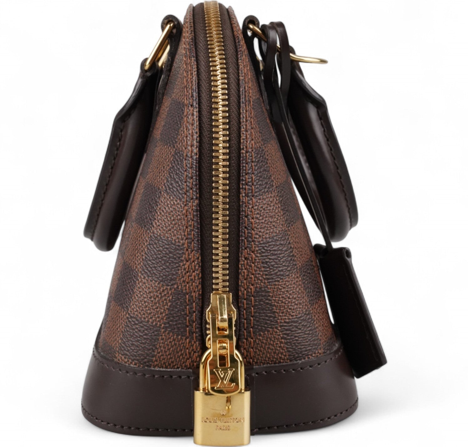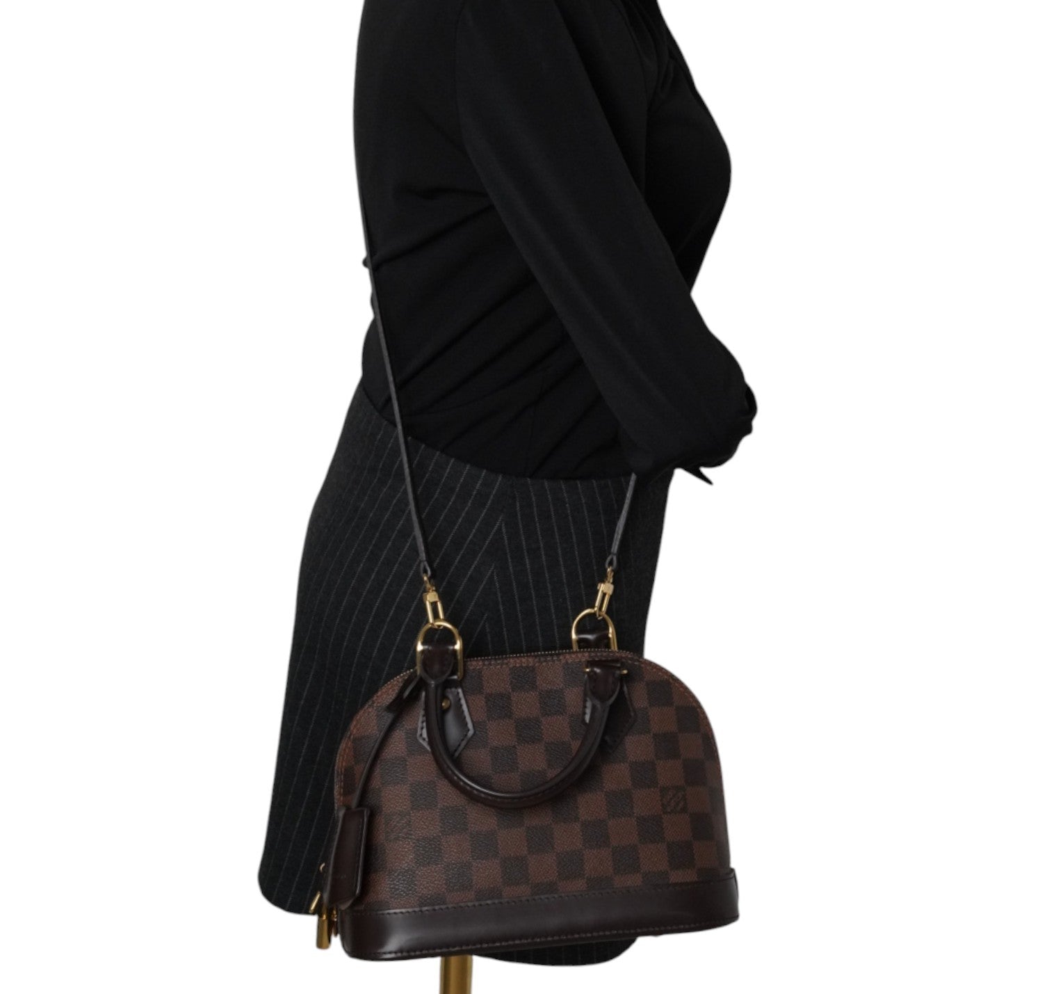 Louis Vuitton bag, Alma model, size BB made of Monogram Canvas. Honeyed cowhide details. Gold-colored hardware. Brown fabric-lined interior, flat pocket. Equipped with a thin cowhide shoulder strap for use on the shoulder or crossbody. Top zip closure with double slider. Equipped with padlock, clochette with two keys and double dustbag. Light signs of general use. Light signs of use on cowhide. Light signs of aging on the hardware.