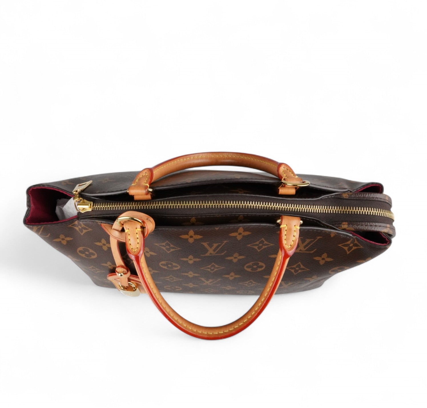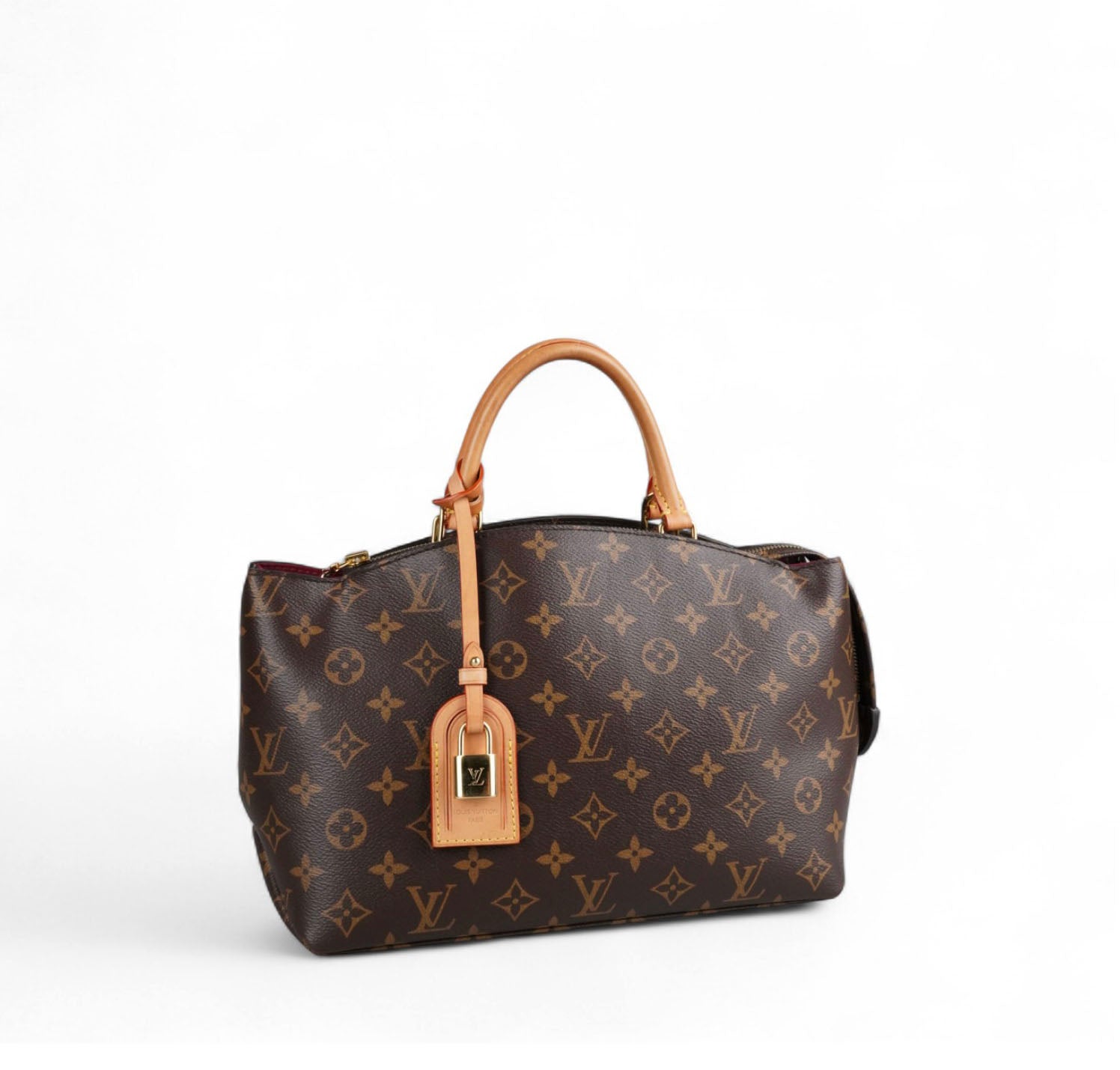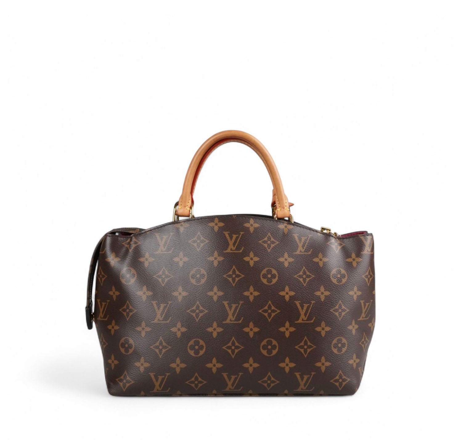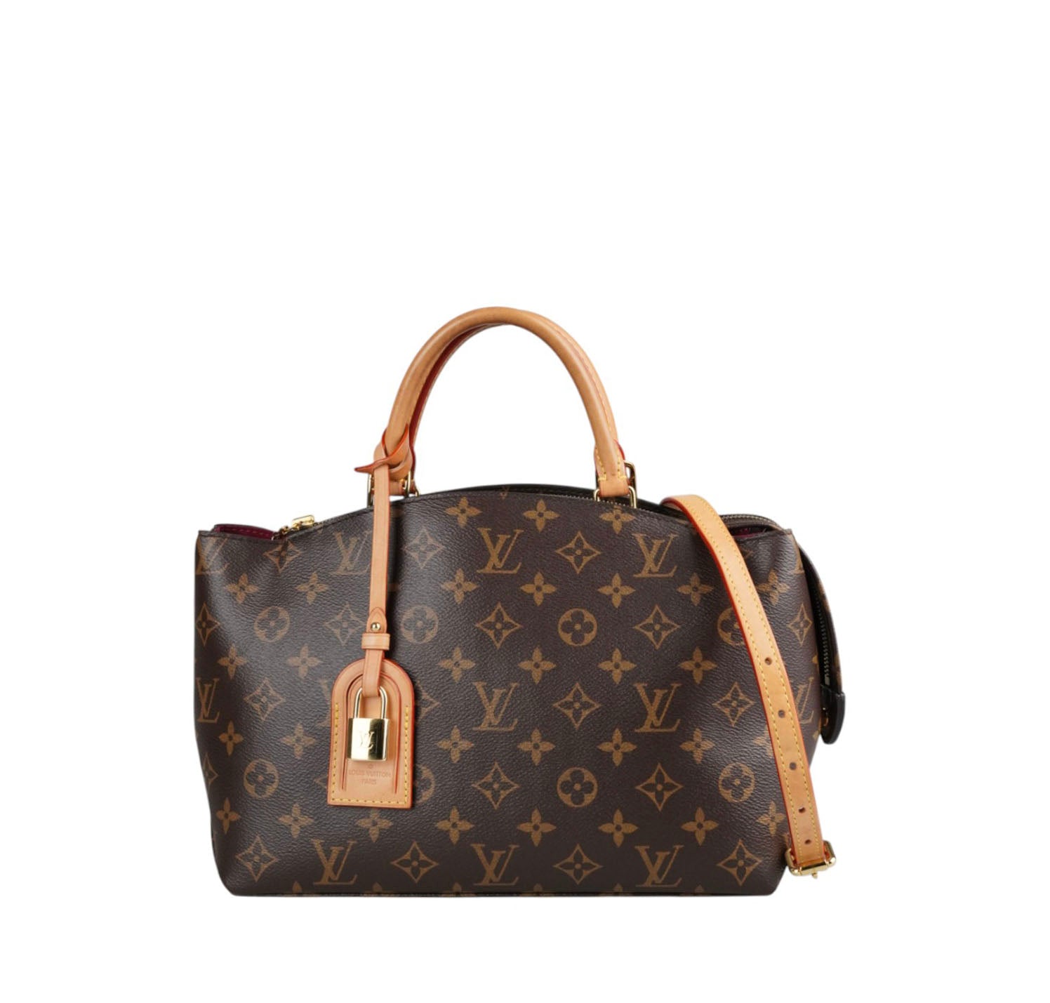 Borsa Louis Vuitton, modello Petit Palais, realizzata in tela Monogram con finiture in vacchetta naturale. Metalleria color oro. Dotata di tracolla regolabile e removibile in vacchetta per l'utilizzo a spalla o crossbody, manici superiori per il trasporto a mano. Impreziosita frontalmente da porte addresse con lucchetto. Interno foderato in tessuto bordeaux con tasche piatte. Ulteriori scomparti piatti esterni. Micro segni d'uso angoli, lievi aloni sulla vacchetta. Metalleria con leggere tracce d’uso. Munita di microchip interno.