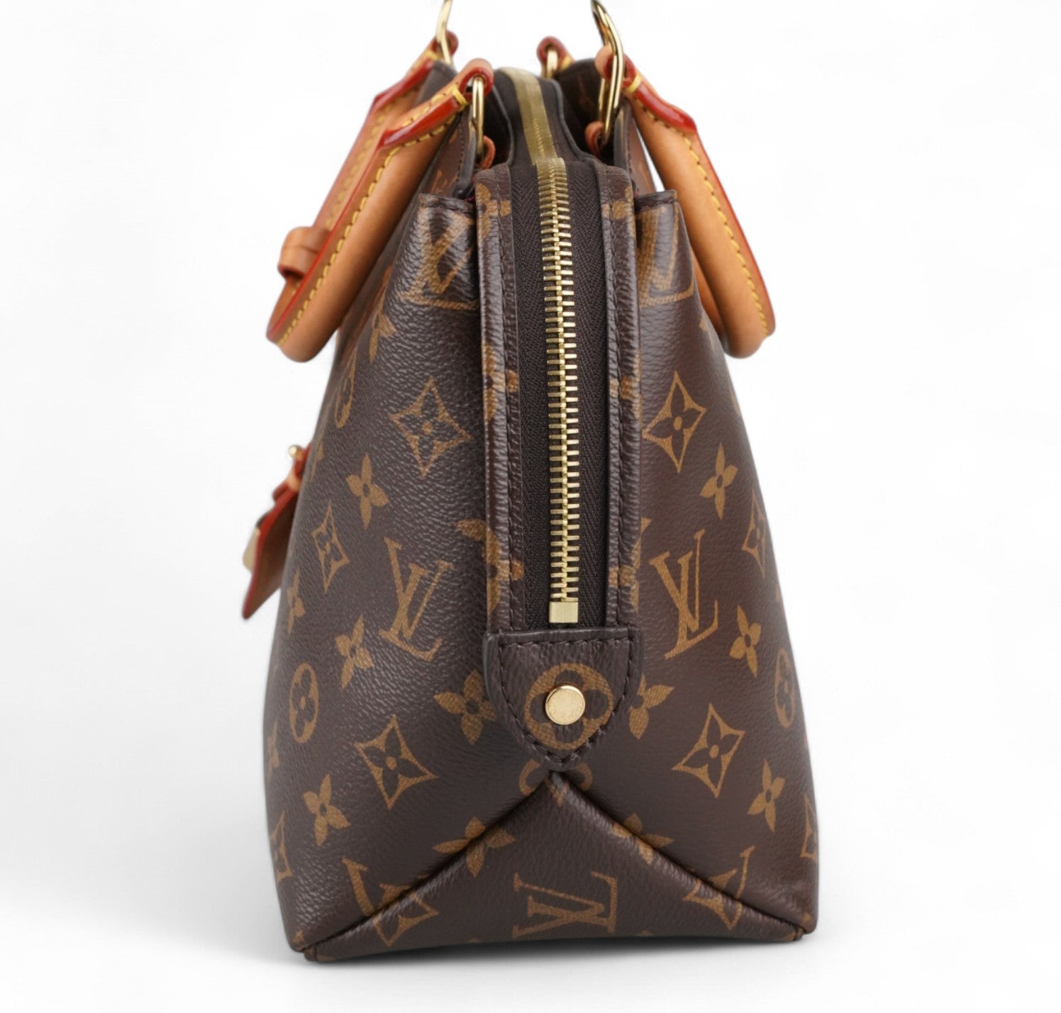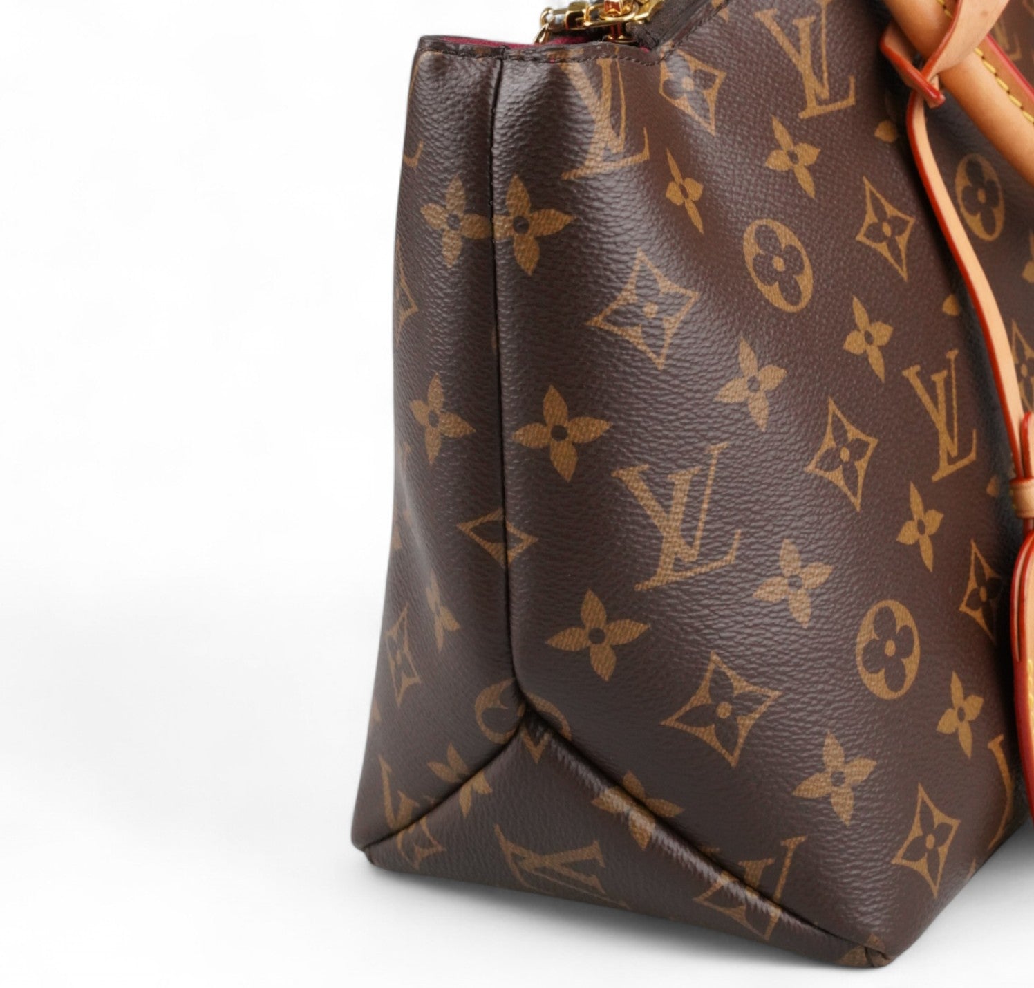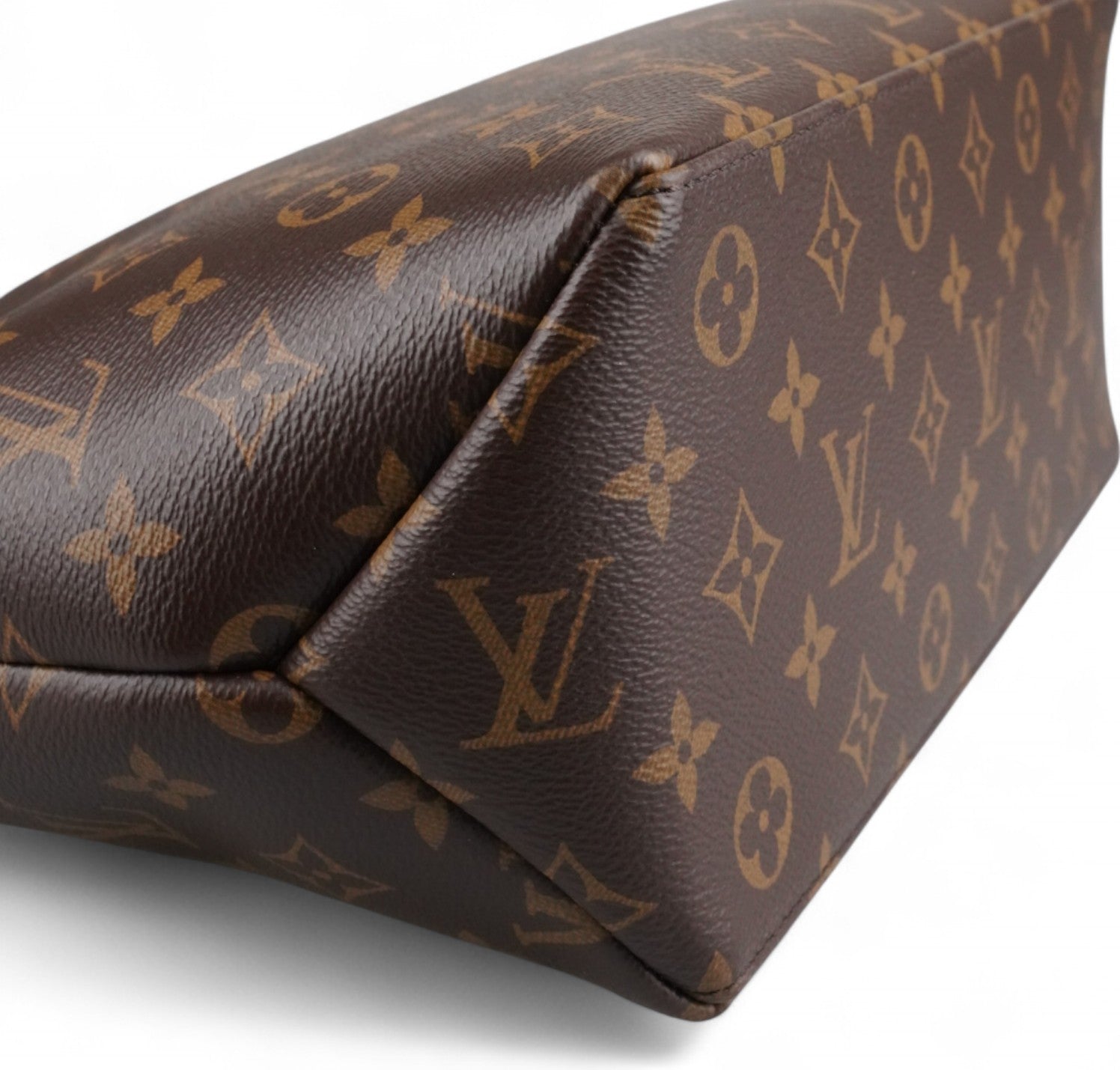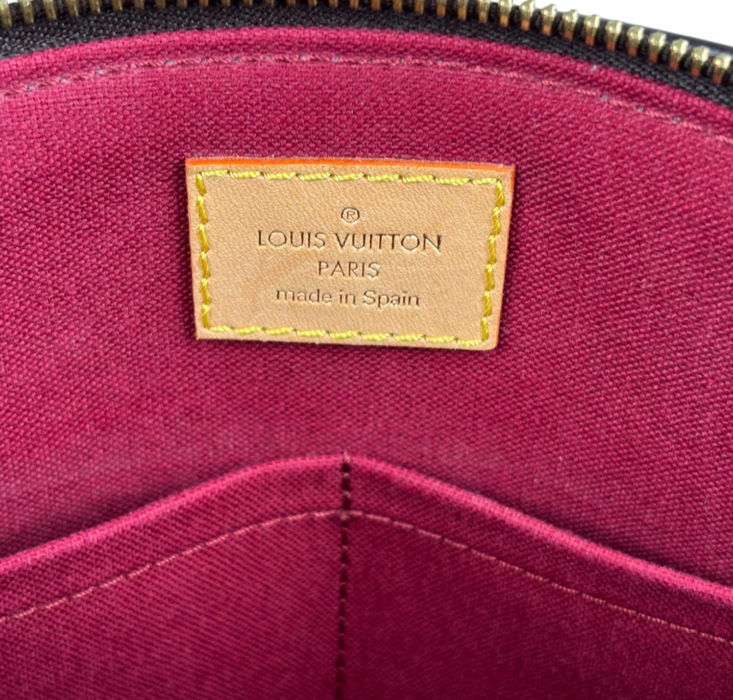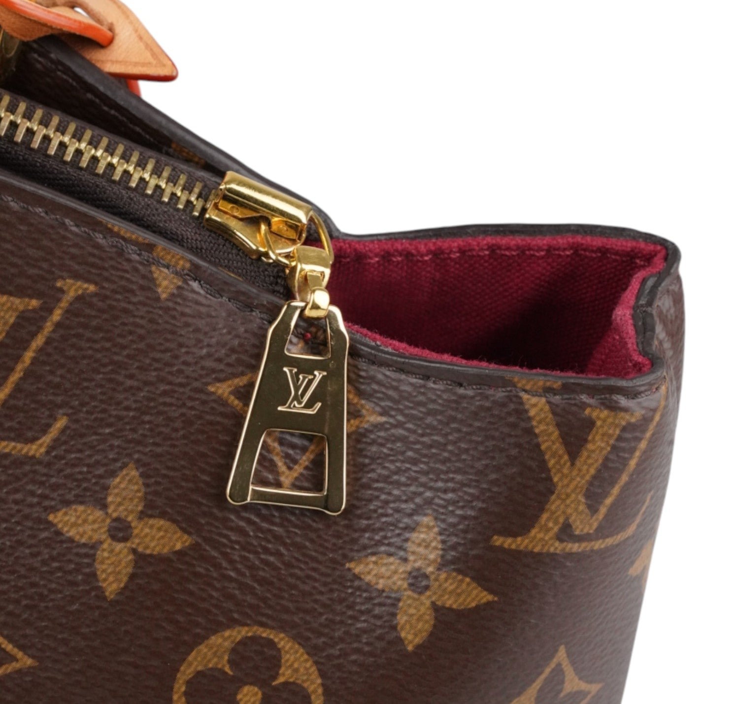 Borsa Louis Vuitton, modello Petit Palais, realizzata in tela Monogram con finiture in vacchetta naturale. Metalleria color oro. Dotata di tracolla regolabile e removibile in vacchetta per l'utilizzo a spalla o crossbody, manici superiori per il trasporto a mano. Impreziosita frontalmente da porte addresse con lucchetto. Interno foderato in tessuto bordeaux con tasche piatte. Ulteriori scomparti piatti esterni. Micro segni d'uso angoli, lievi aloni sulla vacchetta. Metalleria con leggere tracce d’uso. Munita di microchip interno.