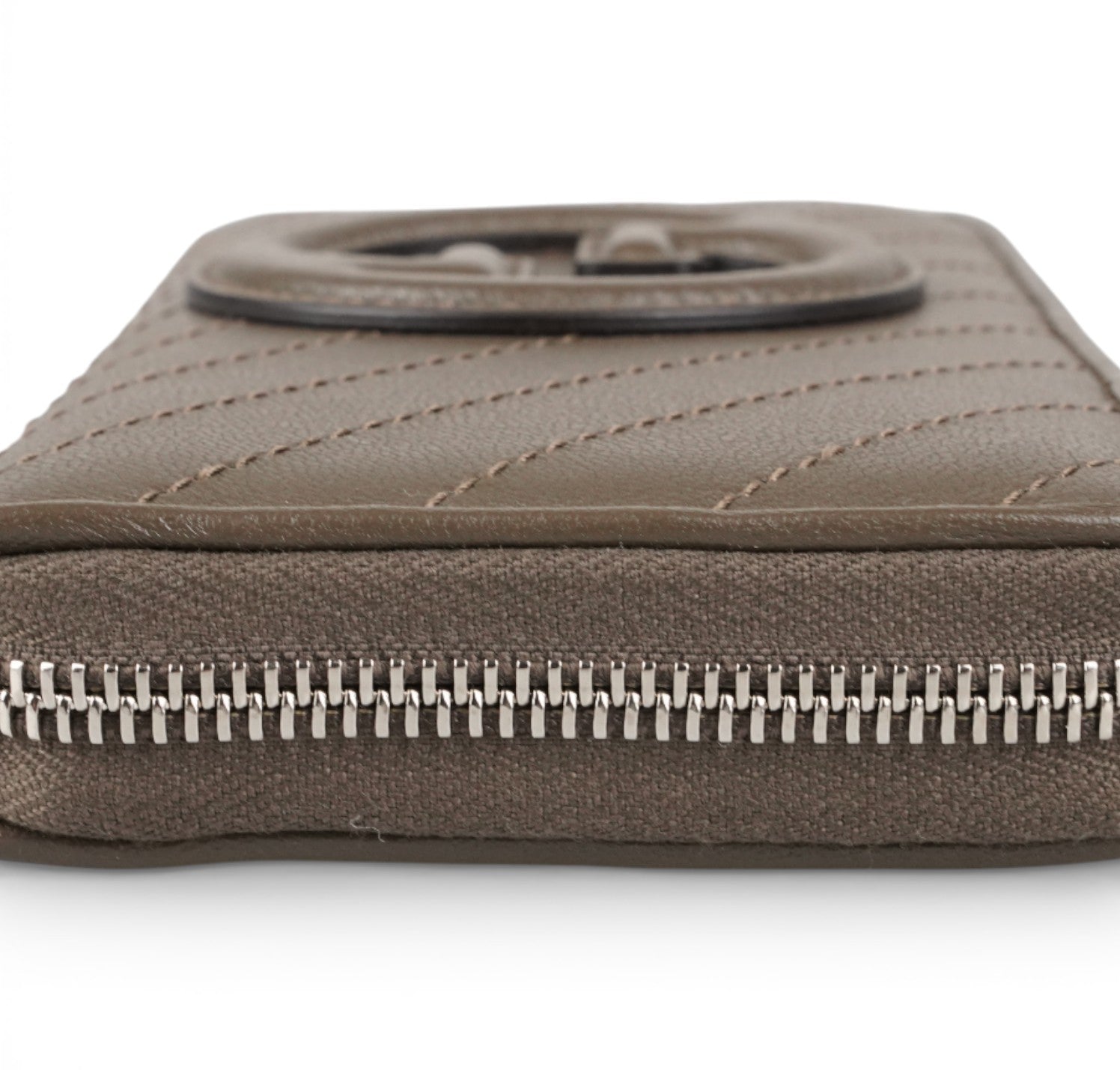 Portafoglio Gucci, modello Blondie Lungo, realizzato in Pelle Marrone impreziosita da impunture diagonali e logo GG in rilievo. Parti metalliche color Argento. Chiusura esterna con cerniera. Si apre su un interno ben organizzato con slot portacarte, tasca banconote e taschini laterali. Pari al nuovo. Potrebbe presentare micro segni di stoccaggio.
