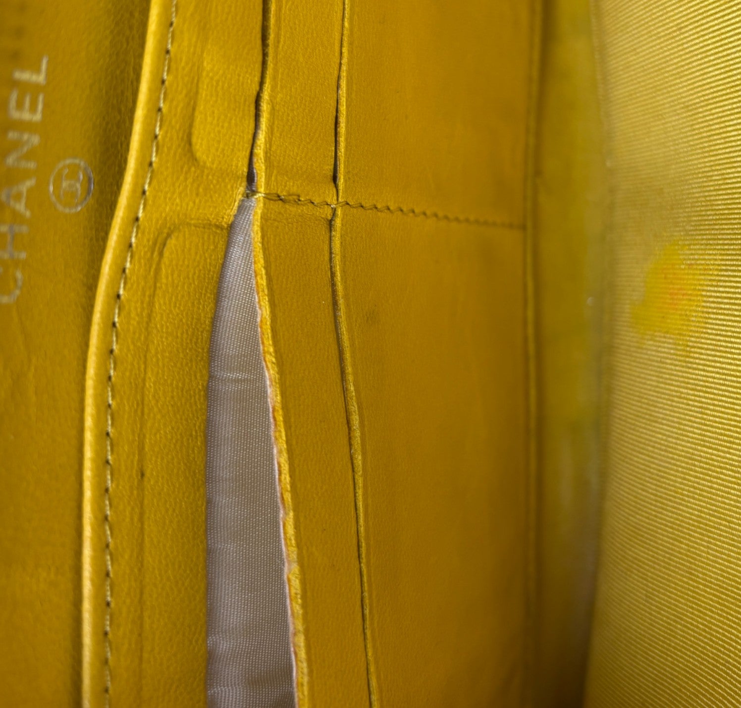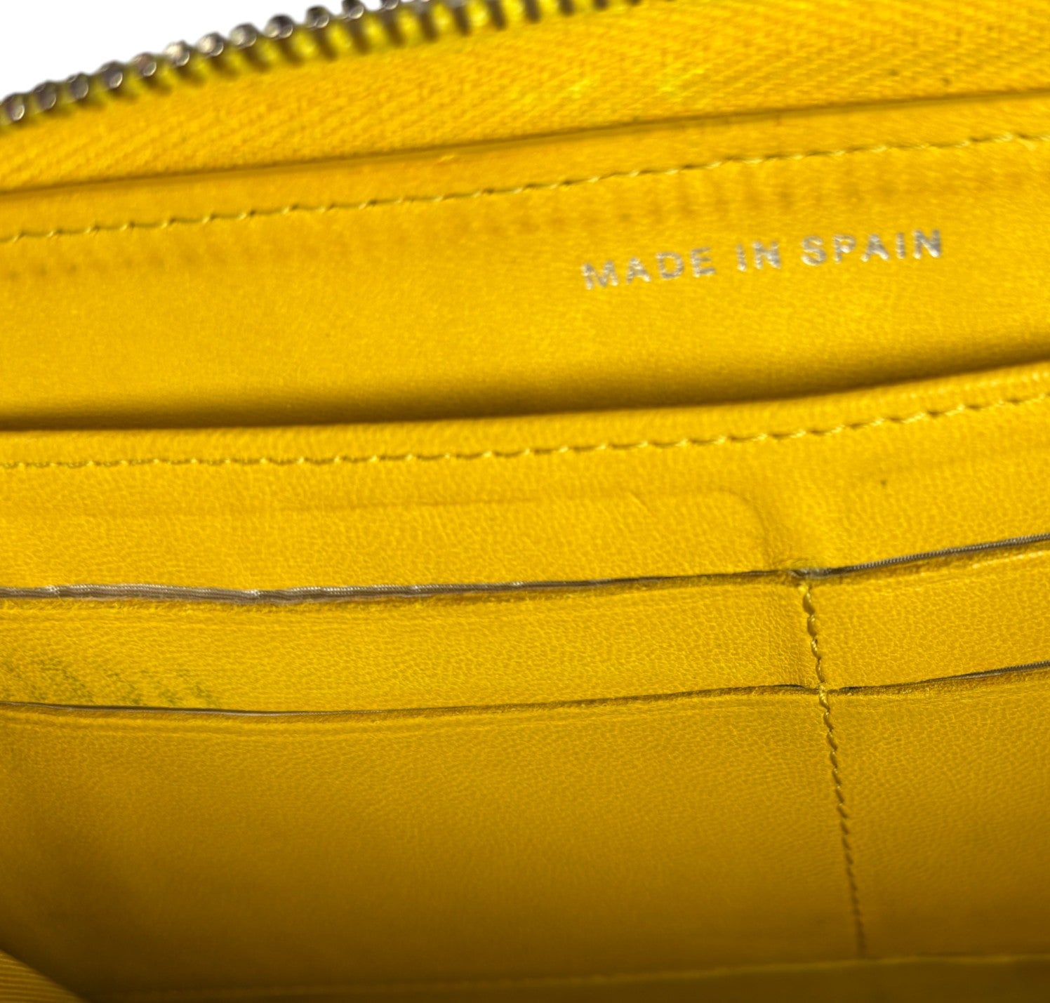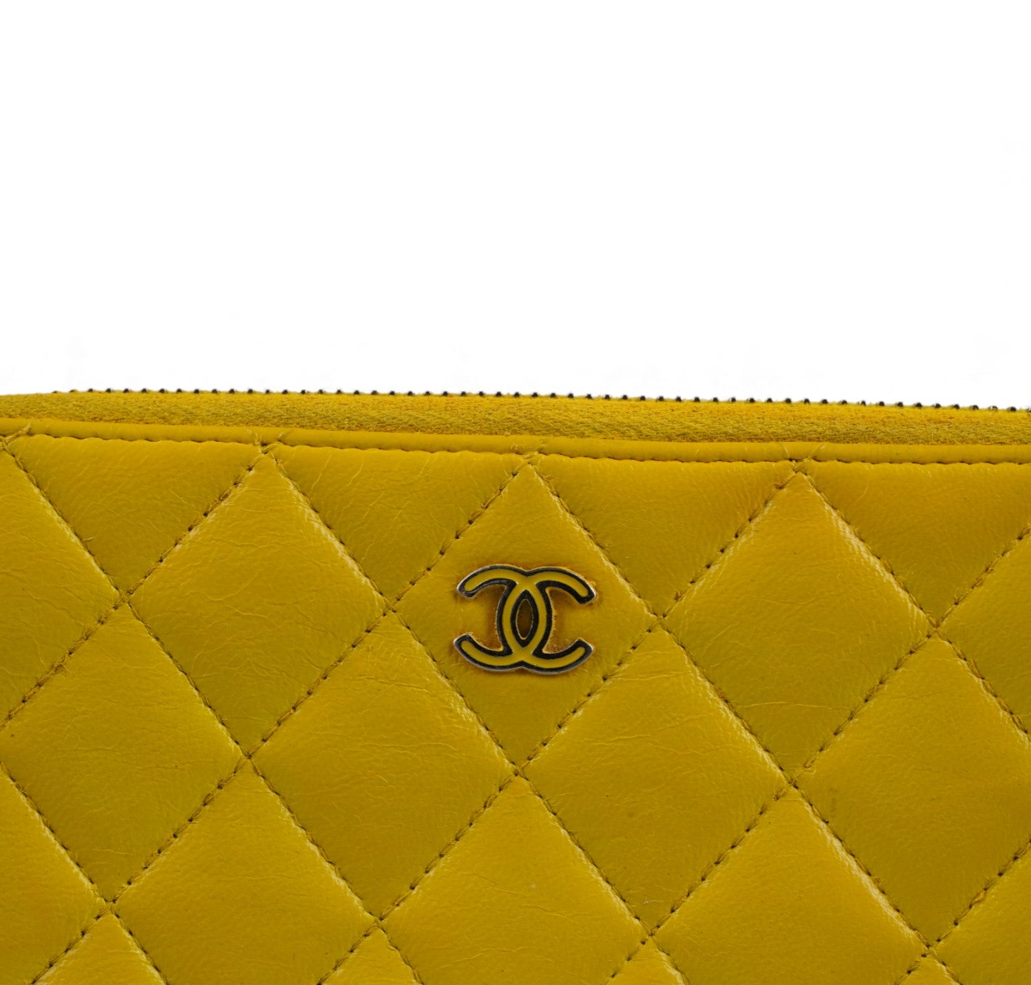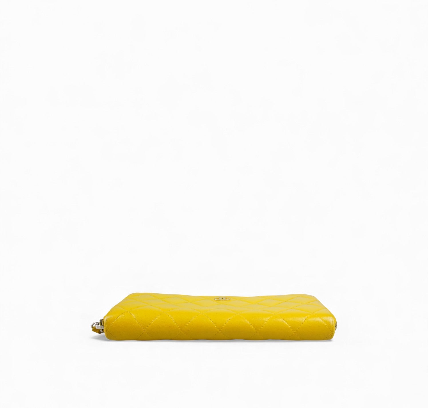 Portafoglio CHANEL, modello Classico Zip-Around, realizzato in Pelle colore Giallo Senape impreziosito da logo CC. Metalleria argentata. Chiusura con zip con tiralampo in pelle. Interno in pelle e tessuto tono su tono con slot portacarte, scomparti per banconote e portamonete con zip. Presenta lievi aloni nelle tasche interne dovuti al normale utilizzo con monete (già pulito e igienizzato). Riprese di colore in alcuni punti esterni. Segni del tempo generali ma buono stato complessivo.