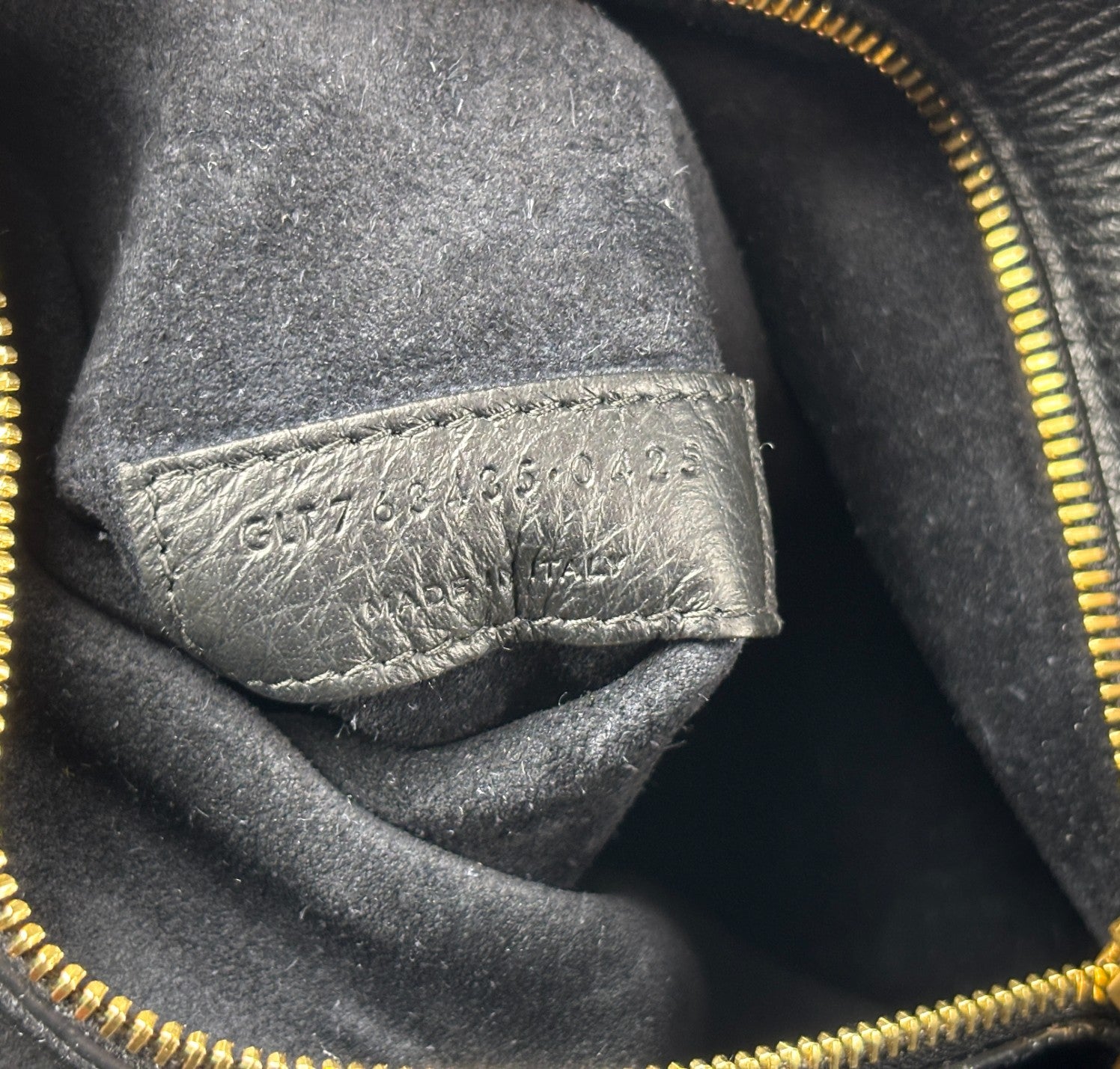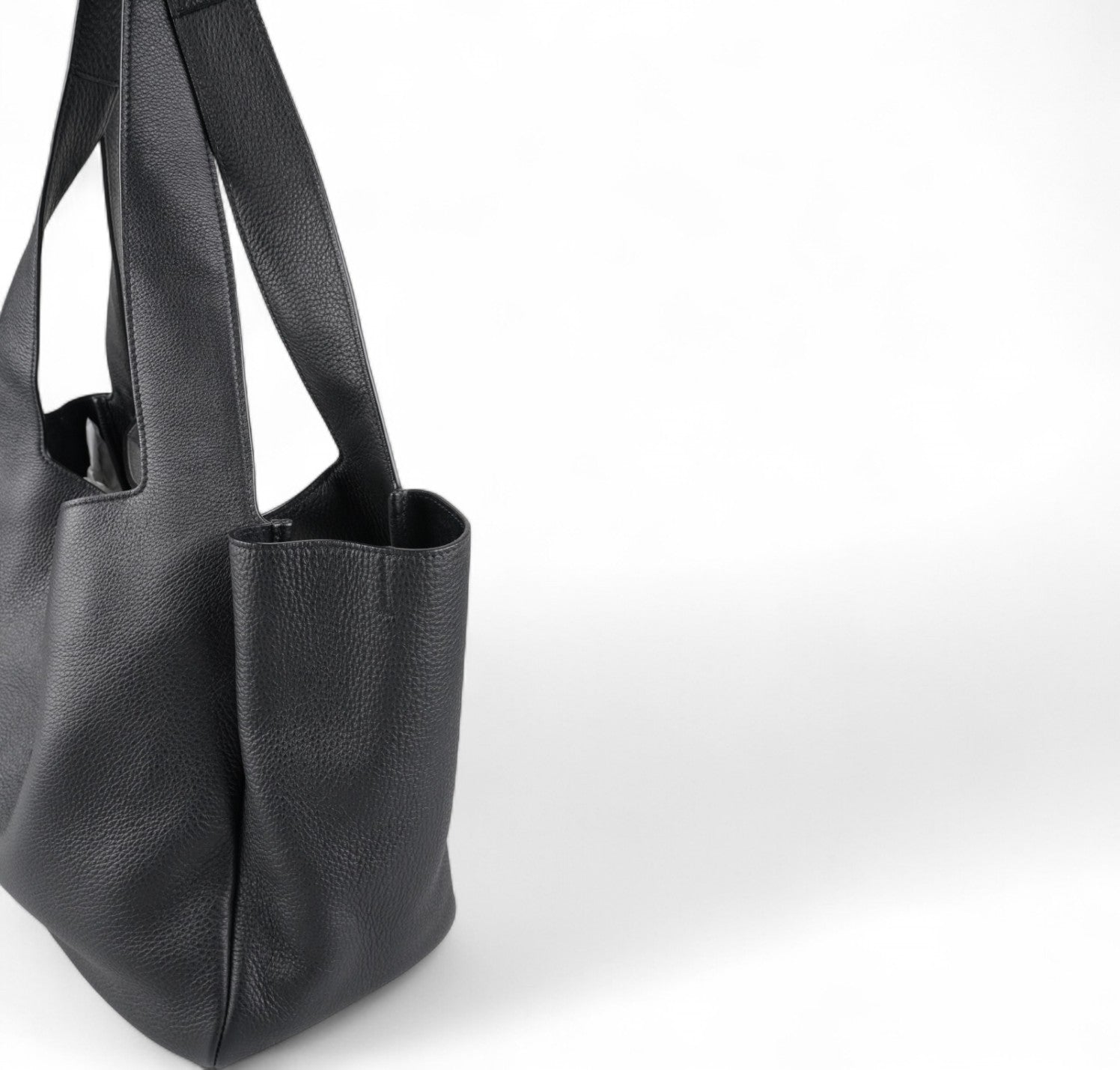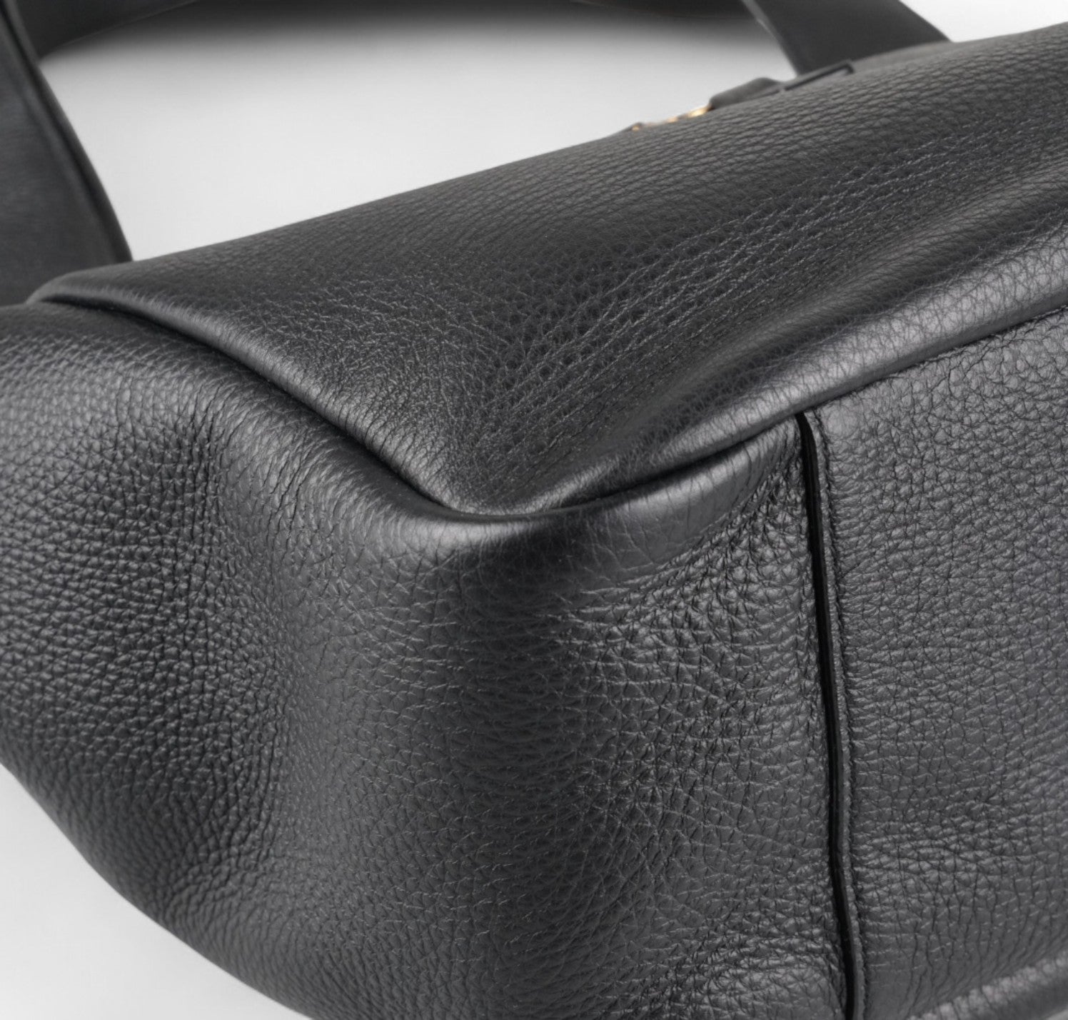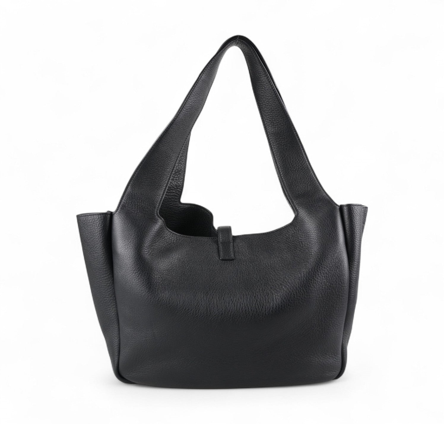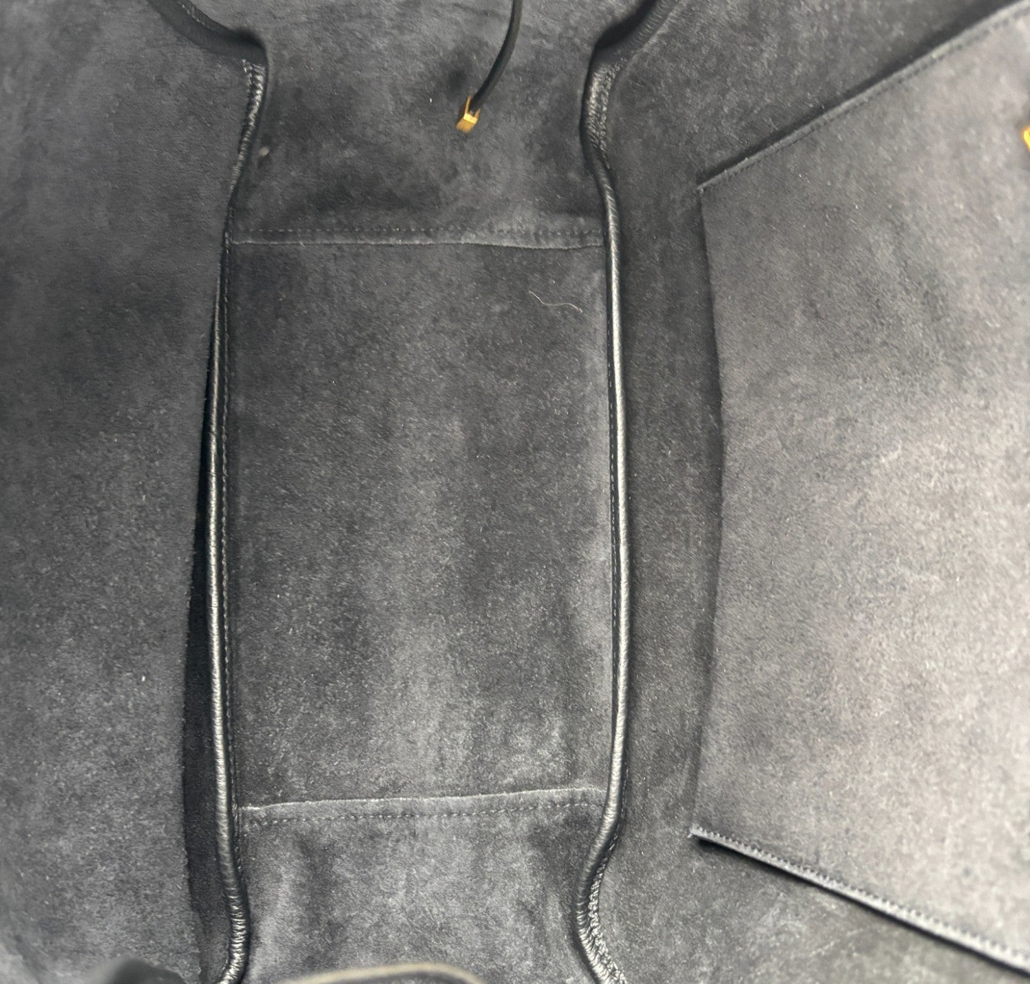 Maxi Borsa Saint Laurent, modello Le 5 à 7 Bea, realizzata in pelle martellata Nera, con iconica chiusura YSL dorata sul davanti. Silhouette morbida e capiente perfetta per l’uso quotidiano. Doppio manico ampio che consente di portarla comodamente a spalla. Interno in suede tono su tono, ben rifinito e con una tasca con zip. Mai indossata, ma potrebbe presentare micro segni di stoccaggio.