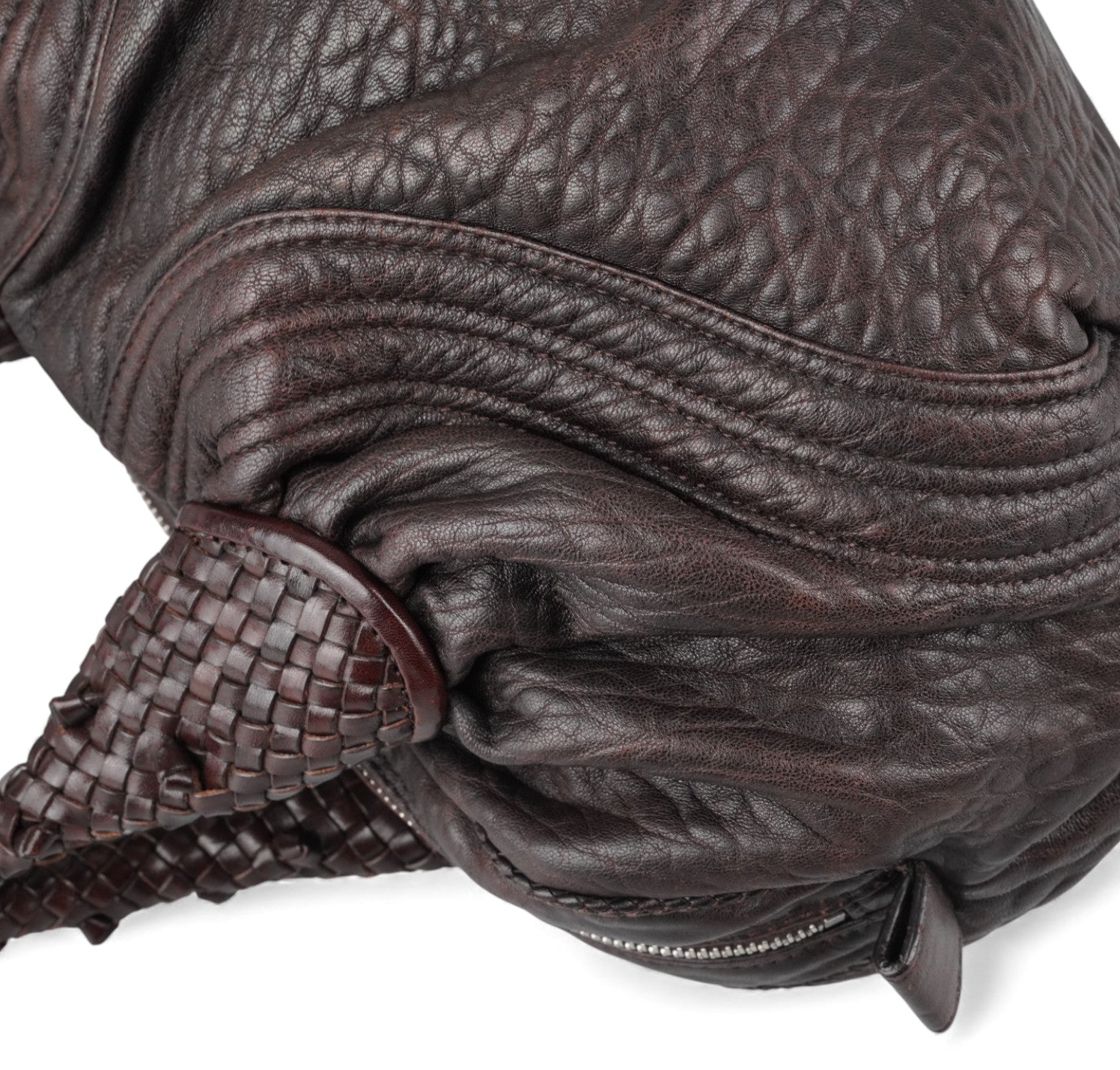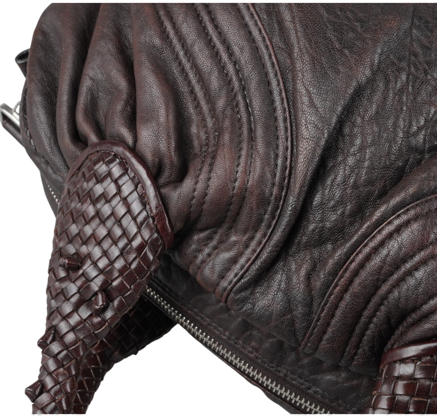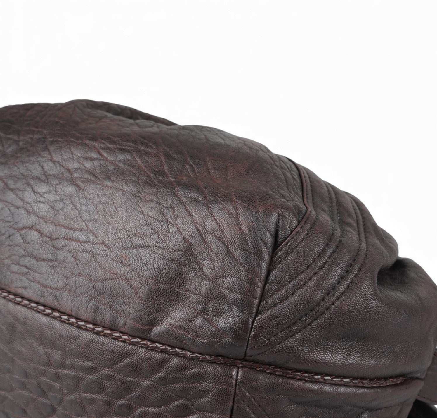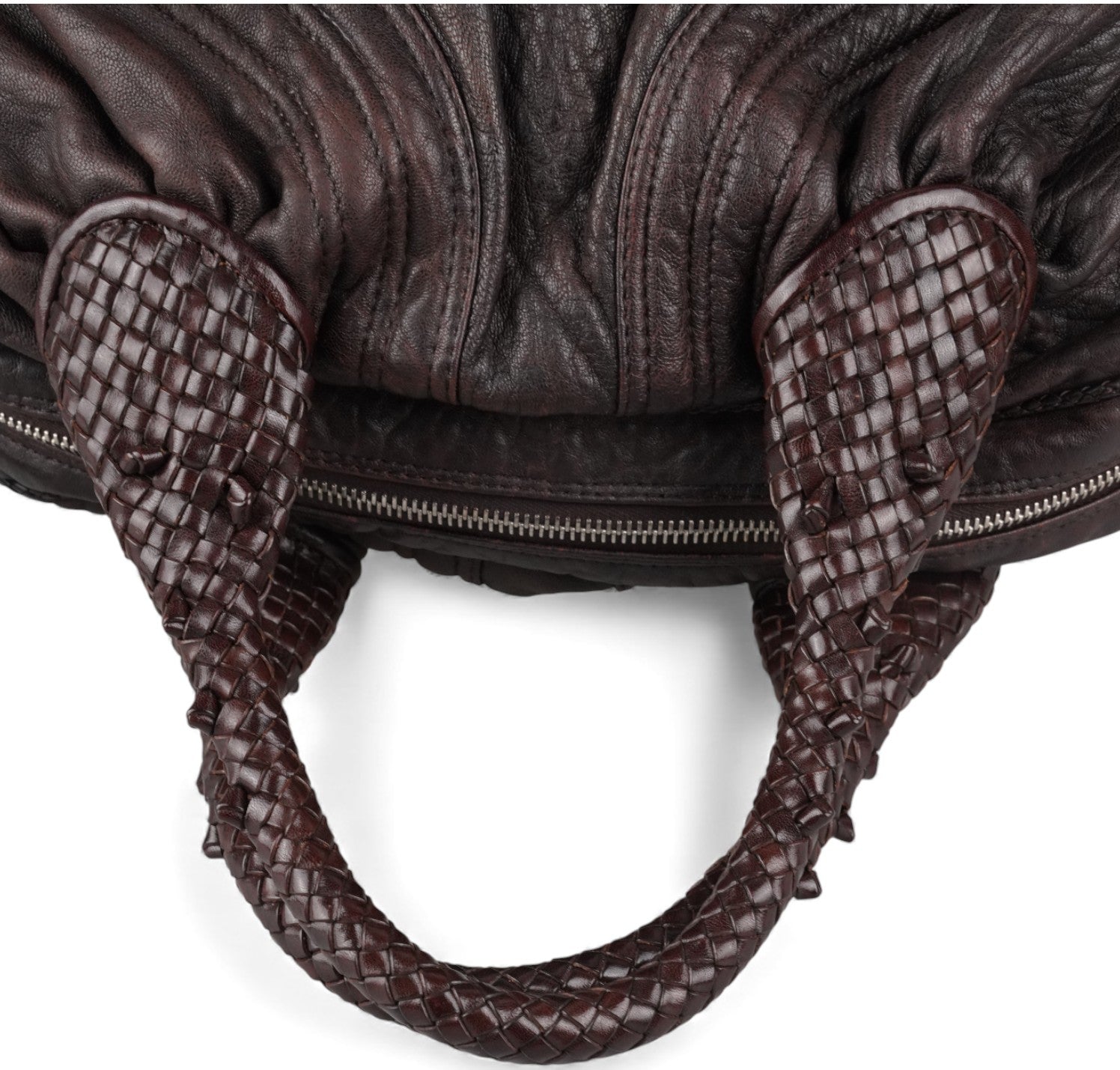 Fendi bag, Spy Vintage model, made of Monogram Zucca Canvas. Tobacco Brown Leather finishes. Gold-colored metal parts. Equipped with special woven upper handles. Upper closure with zip and maxi logo puller. Interior lined in Beige Fabric, pocket. With a soft and rounded shape, slightly crescent shape that makes it roomy and comfortable. Ideal for a casual-chic look. Minimal general signs of aging on the leather, micro scratches, slight general signs of aging.
