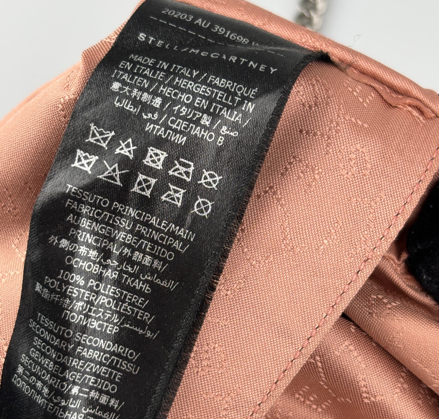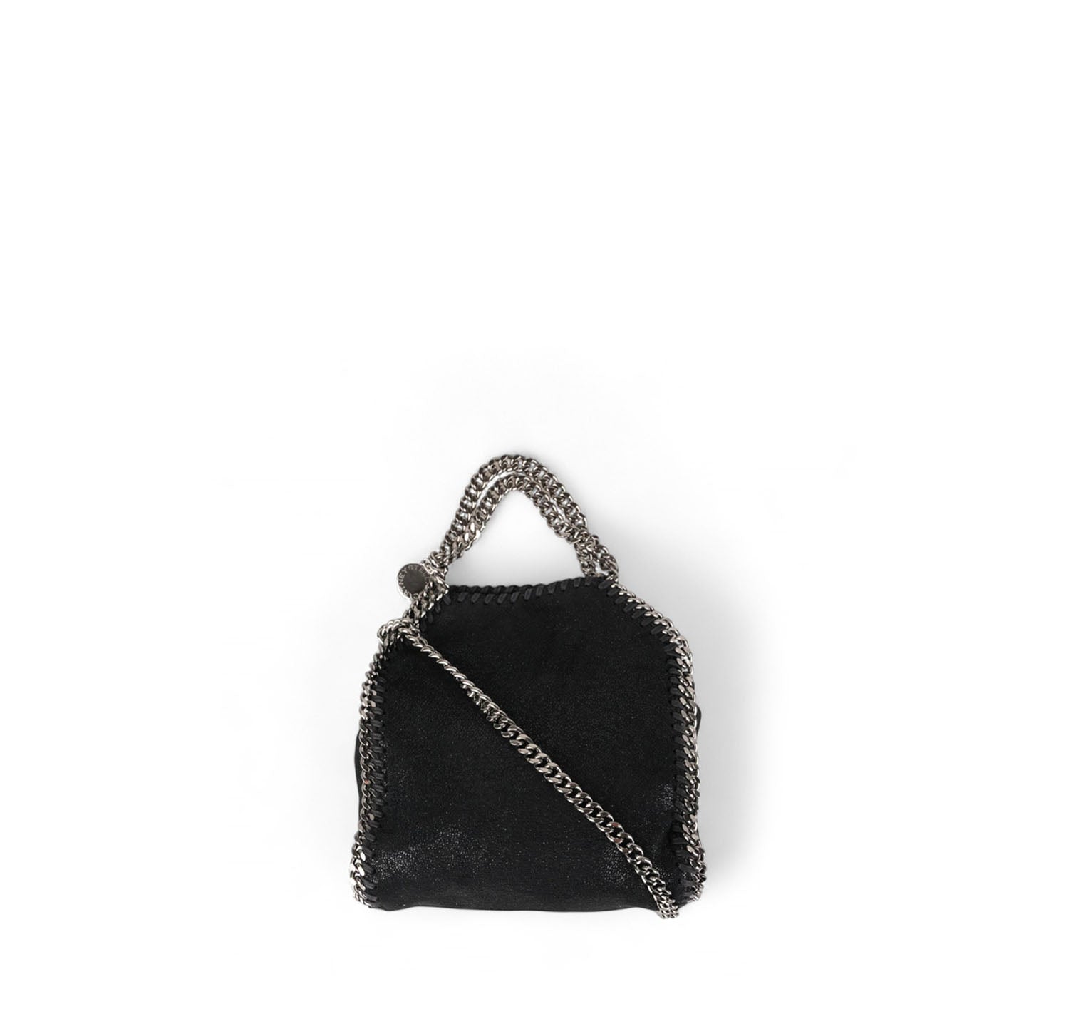 Stella McCartney Falabella bag, Micro size, made of Black Shaggy Deer Synthetic Fabric. Silver metal finishes. Equipped with handles and chain shoulder strap for use by hand or as a shoulder bag embellished with a Logo Medallion. Interior lined in Pink Ecological Fabric. Slight general signs of aging.