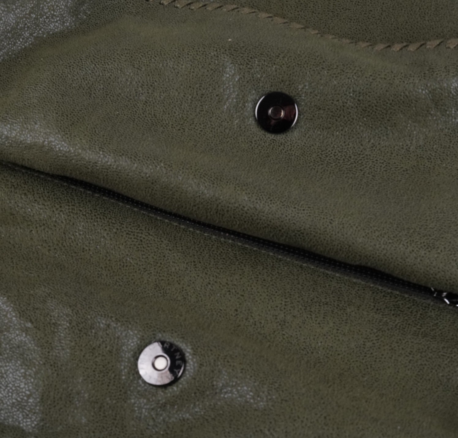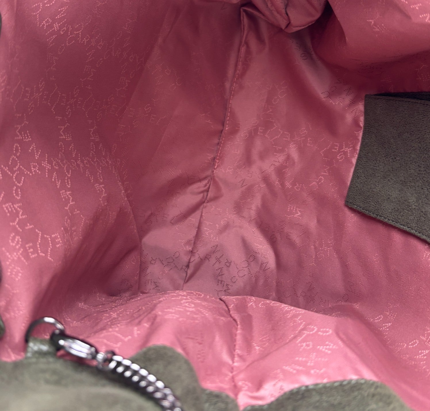 Stella McCartney bag, Falabella Tote Folding Two Chains model, made of Black Shaggy Deer Synthetic Fabric. Silver hardware. Magnetic top closure. Interior lined in Pink Fabric, zip pocket. Upper chain handles for carrying on the shoulder or by hand. Embellished with Logo Medallion. Light general signs of aging.