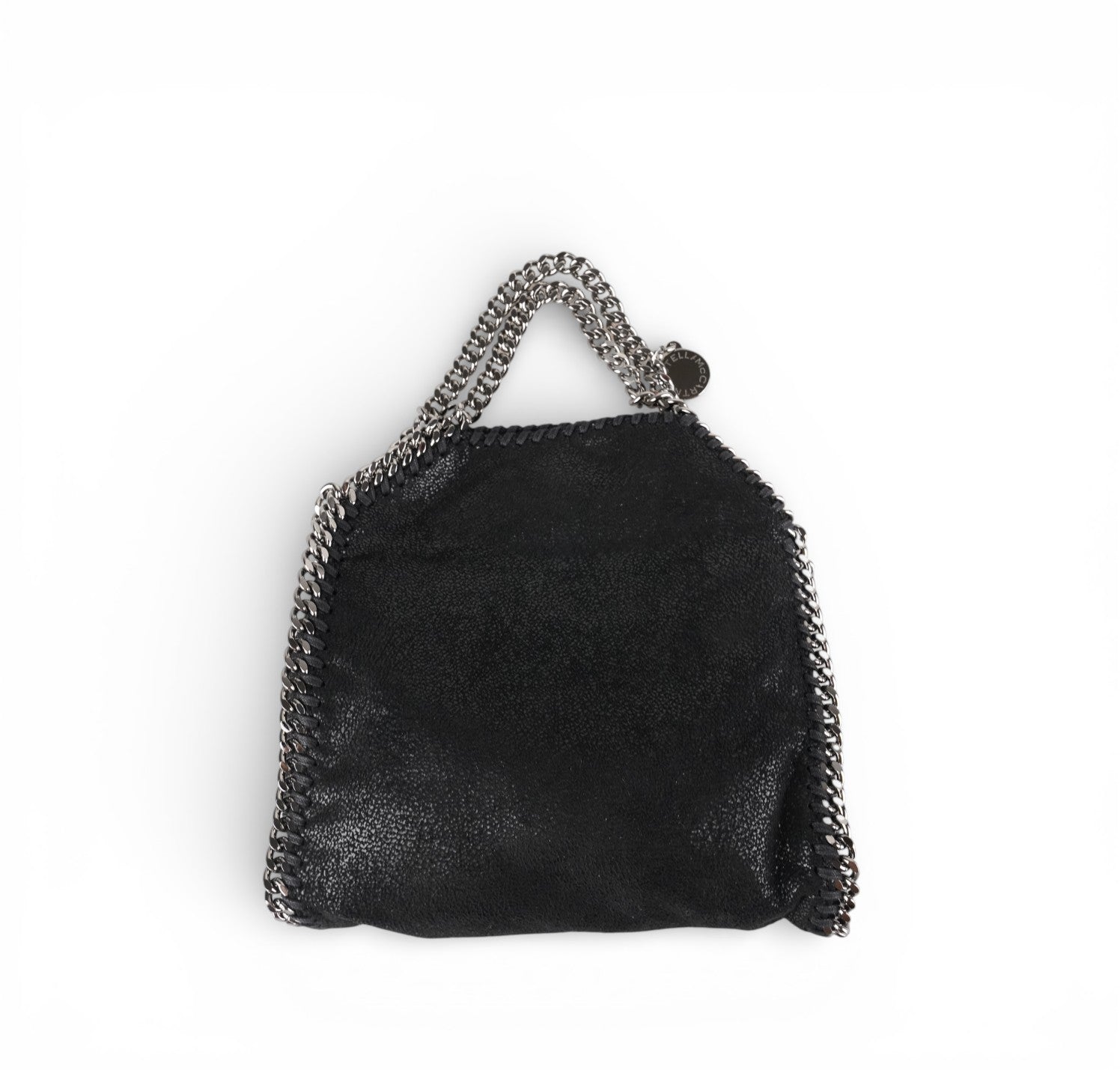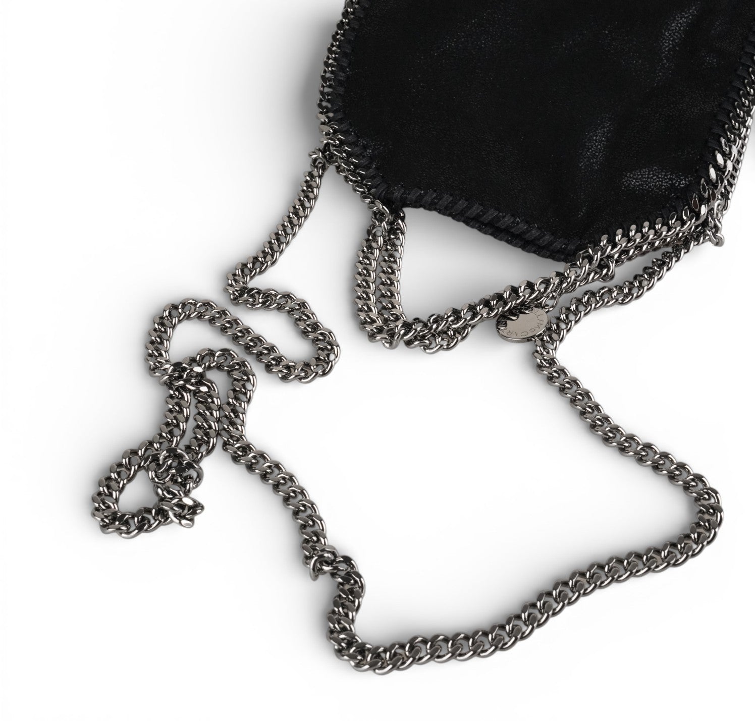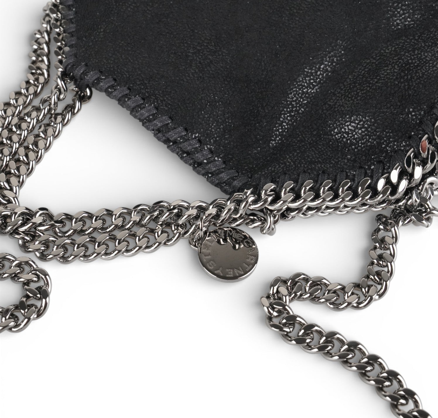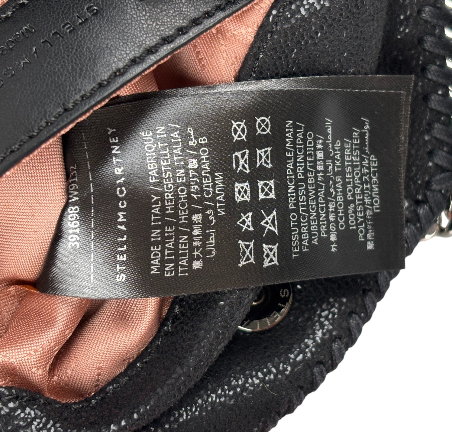 Borsa Stella McCartney modello Falabella misura Micro, realizzata in Tessuto Sintetico Shaggy Deer Nero. Finiture metalliche Argento. Munita di manici e tracolla in catena per l'utilizzo a mano o bandoliera impreziosita da Medaglione Logato. Interno foderato in Tessuto Ecologico Rosa. Lievi segni del tempo generali.