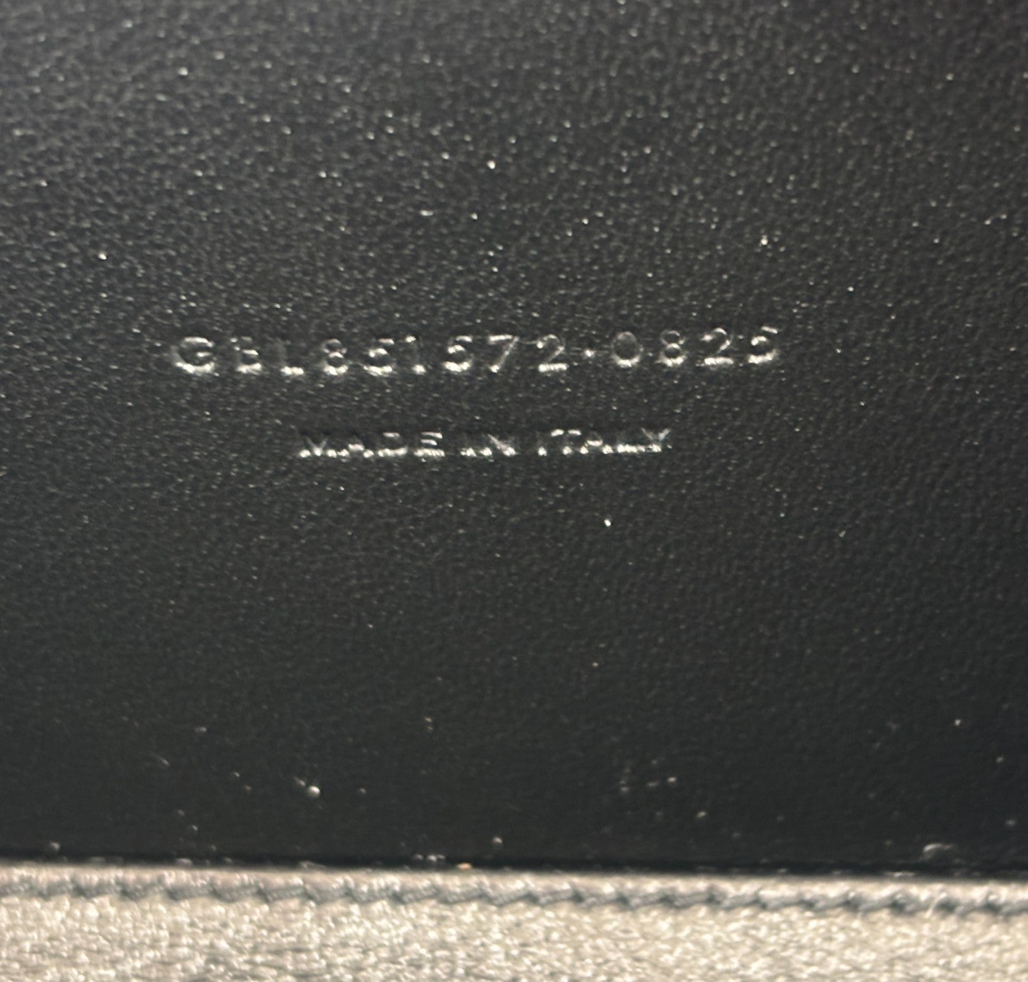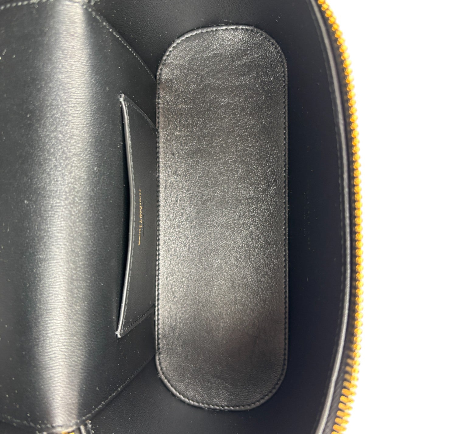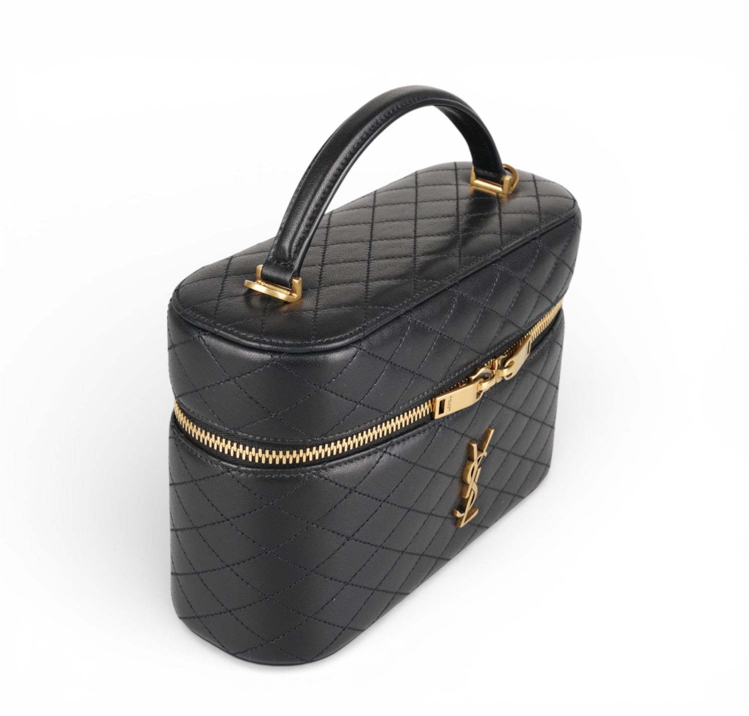 Borsa Saint Laurent, modello Gaby Vanity, misura Grande, realizzata in Pelle trapuntata Nera, impreziosita dall’iconico logo YSL in metallo color oro e da zip superiore con doppio cursore. Manico on top per il trasporto a mano, tracolla regolabile ed amovibile per portabilità a spalla o crossbody. Interno con unico scomparto con tasca piatta. Condizioni eccellenti, pari al nuovo. Potrebbero essere presenti micro segni di stoccaggio.