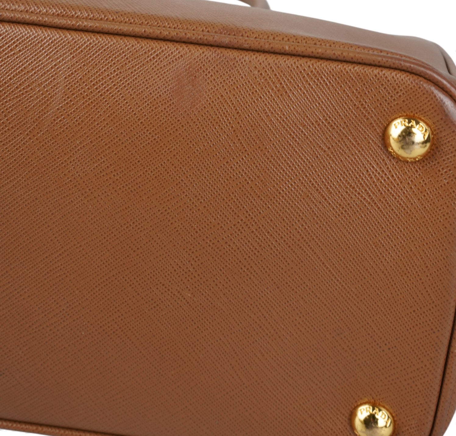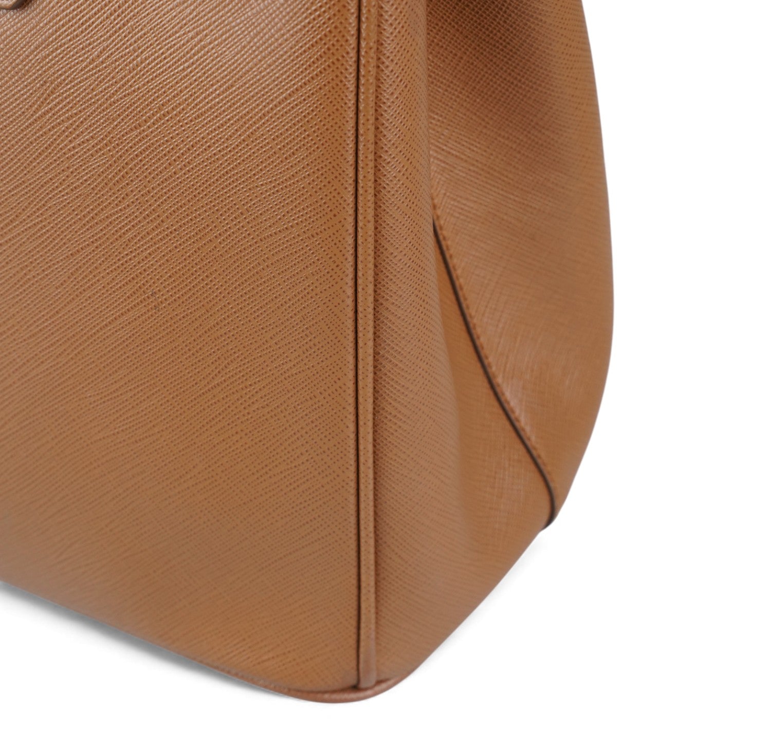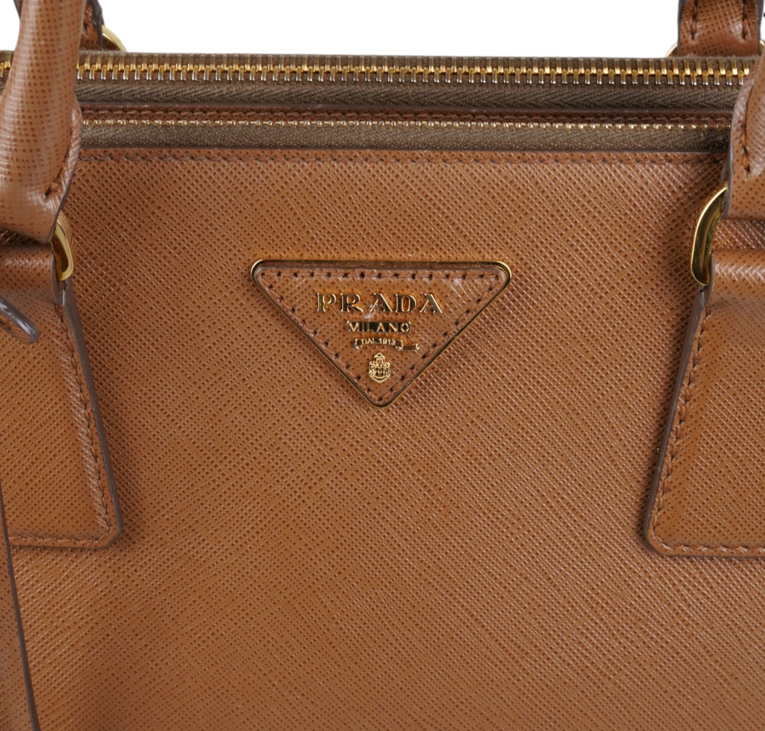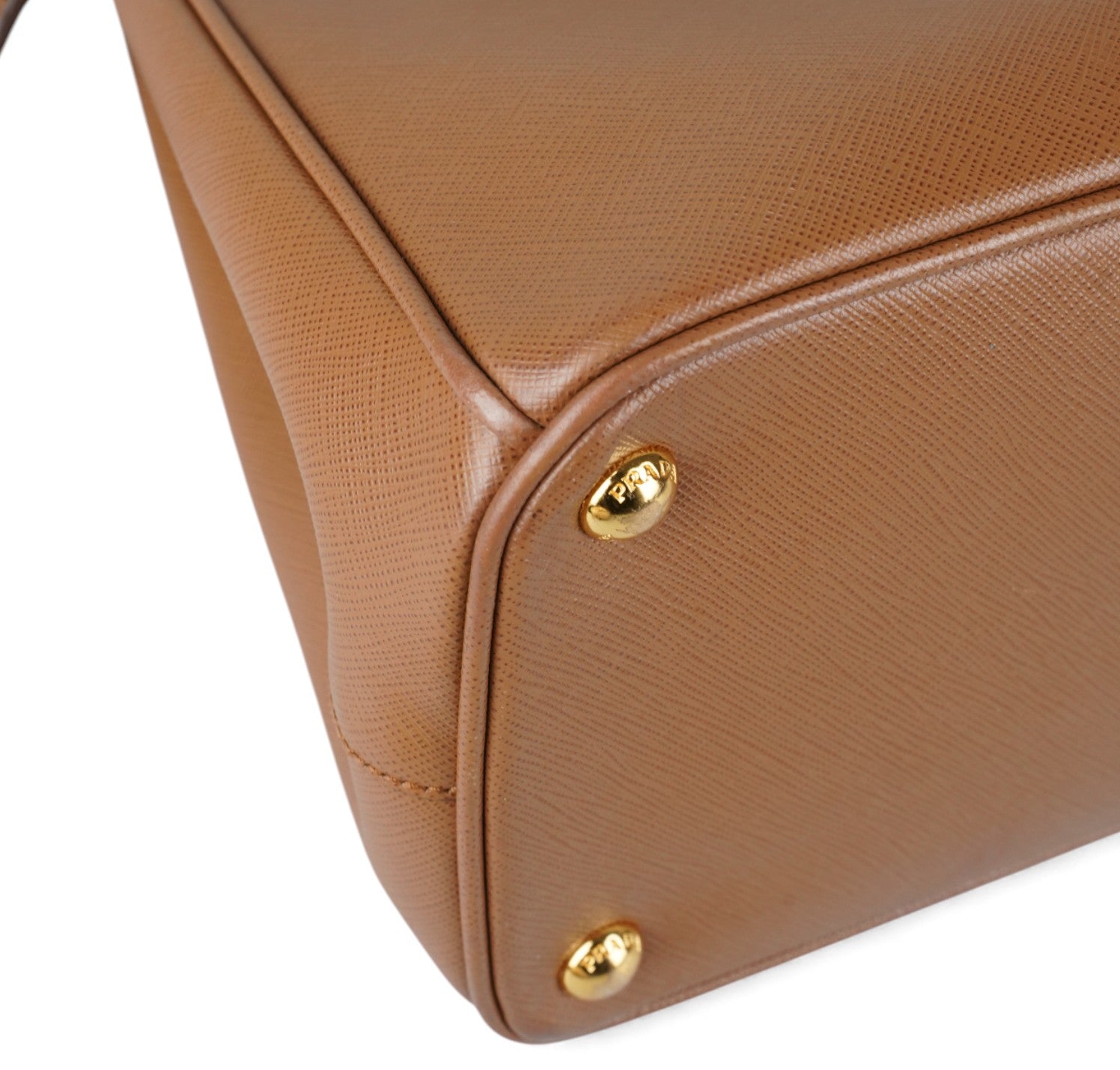 Borsa Prada, modello Galleria, misura Grande, realizzata in Pelle Saffiano, color Cammello. Metalleria color Oro. Internamente foderata in tessuto logato Beige, con dettagli in pelle e tasche esterne con chiusura a zip. Presente bottone laterale per aumentare o diminuire la capienza interna. Portachiavi frontale amovibile. Munita di tracolla amovibile e regolabile. Lievi segni del tempo generali. Lievi segni del tempo alla metalleria.