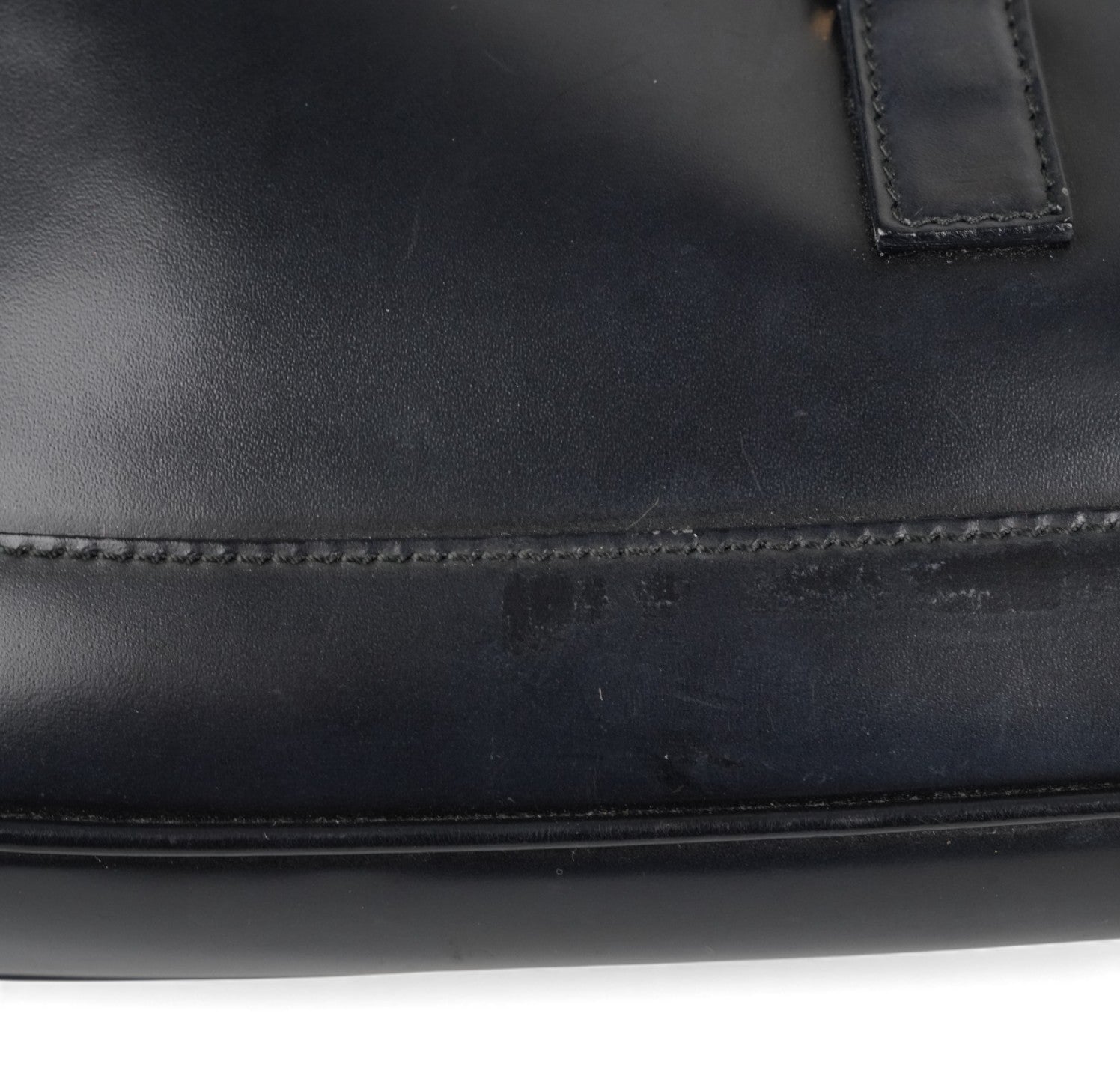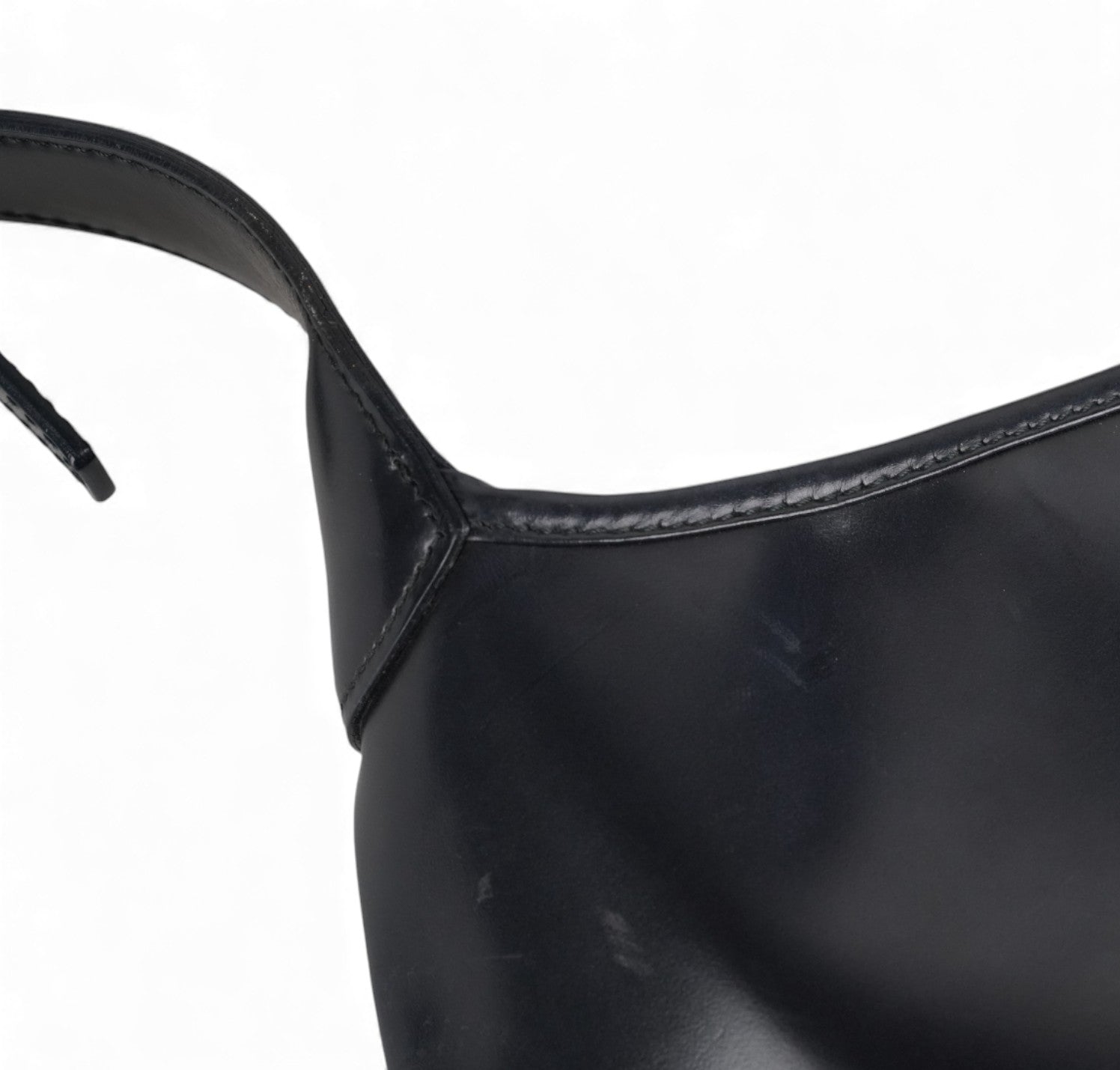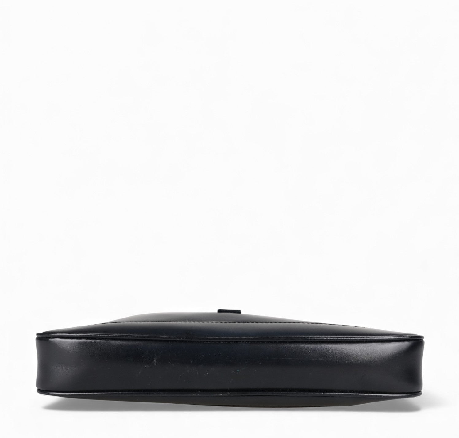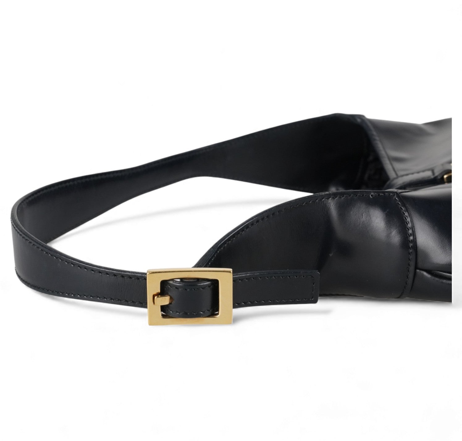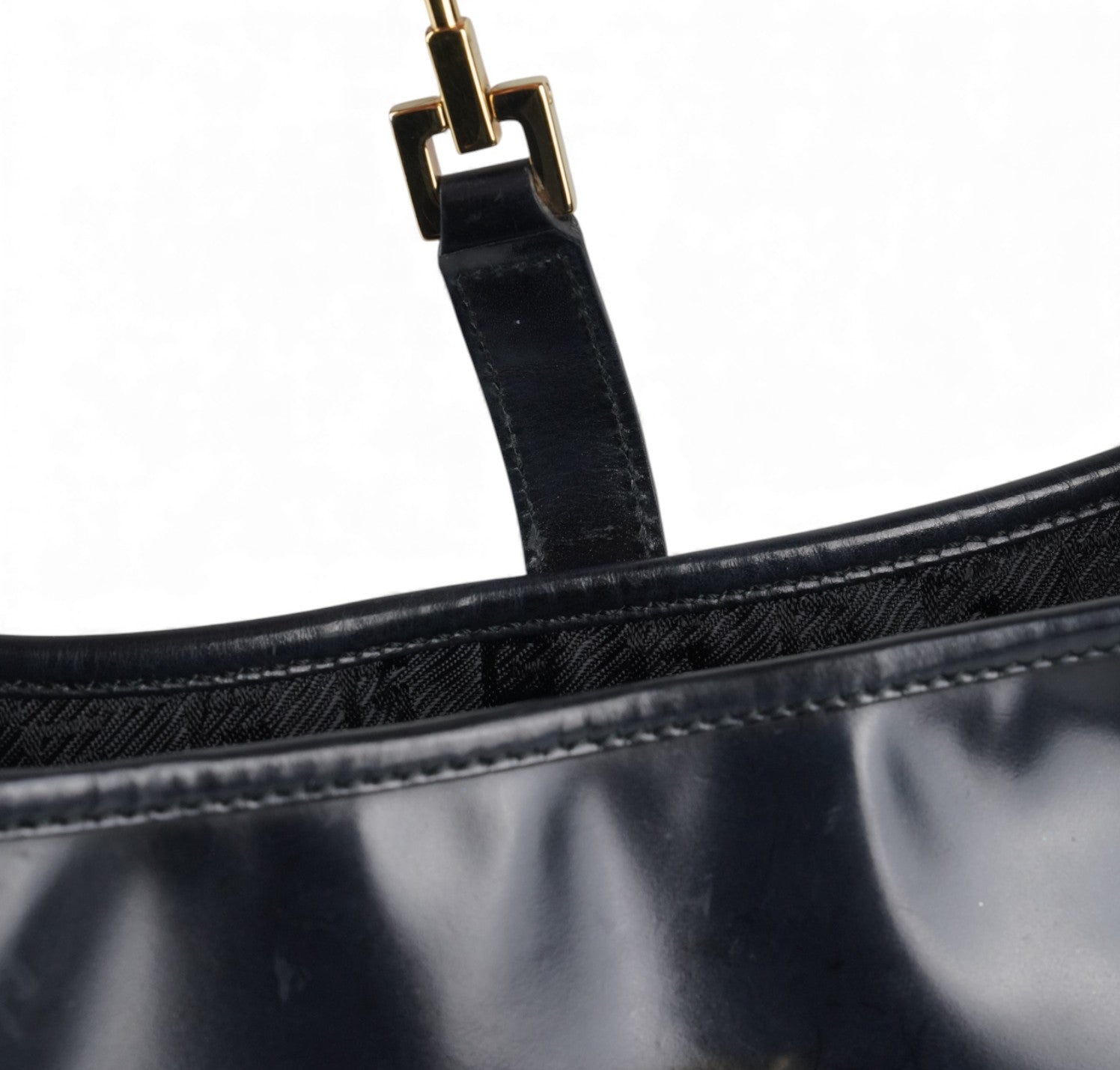 Borsa Gucci, modello Jackie, in pelle Nera. Metalleria color Oro. Iconica chiusura frontale ad incastro con fibbia in pelle. Interno foderato in tessuto logato. Manico superiore regolabile, ideale per l'utilizzo a spalla. Presenta dei minimi segni d'uso come lievi graffi su pelle e micro graffi su metalleria. Minimi segni del tempo.