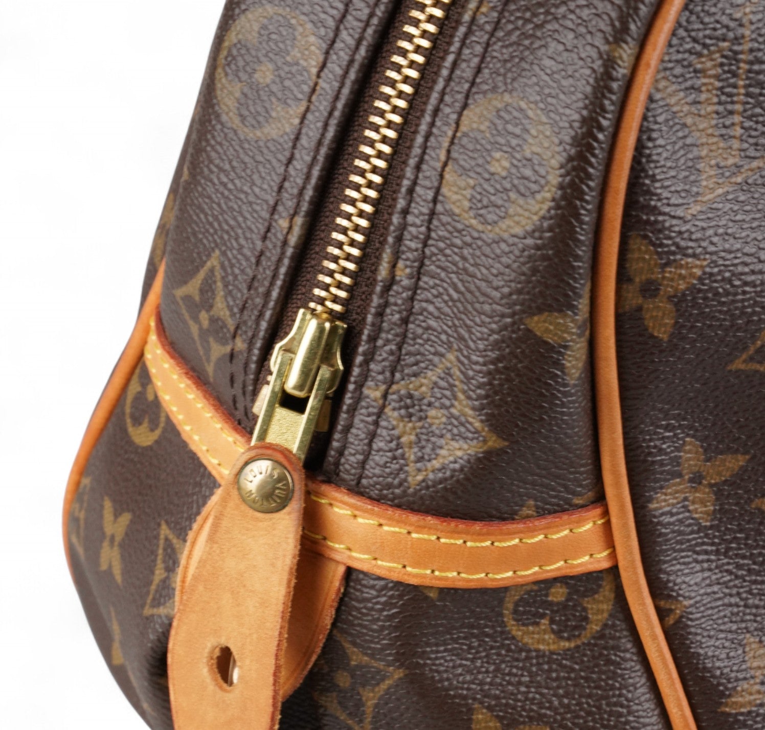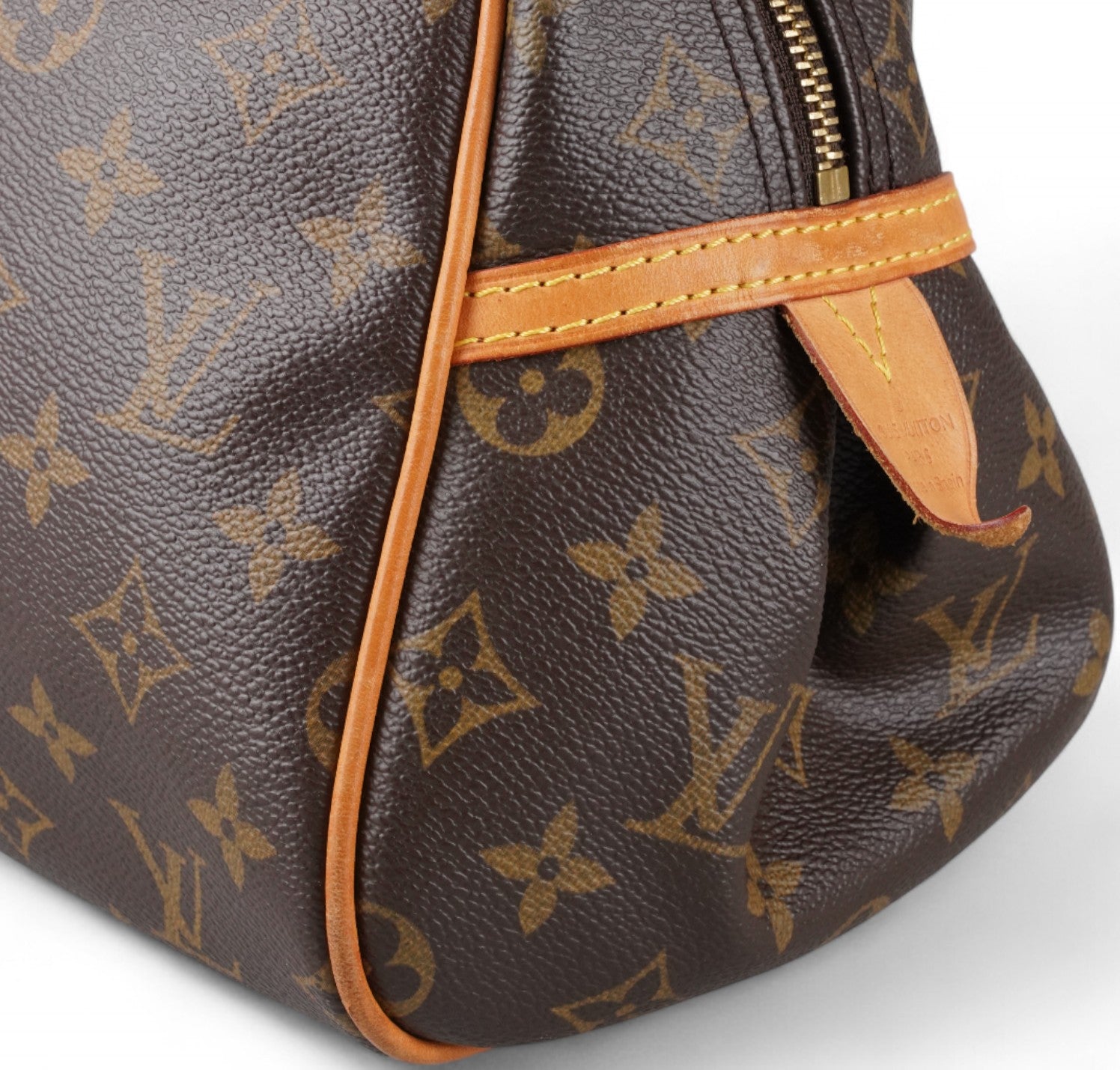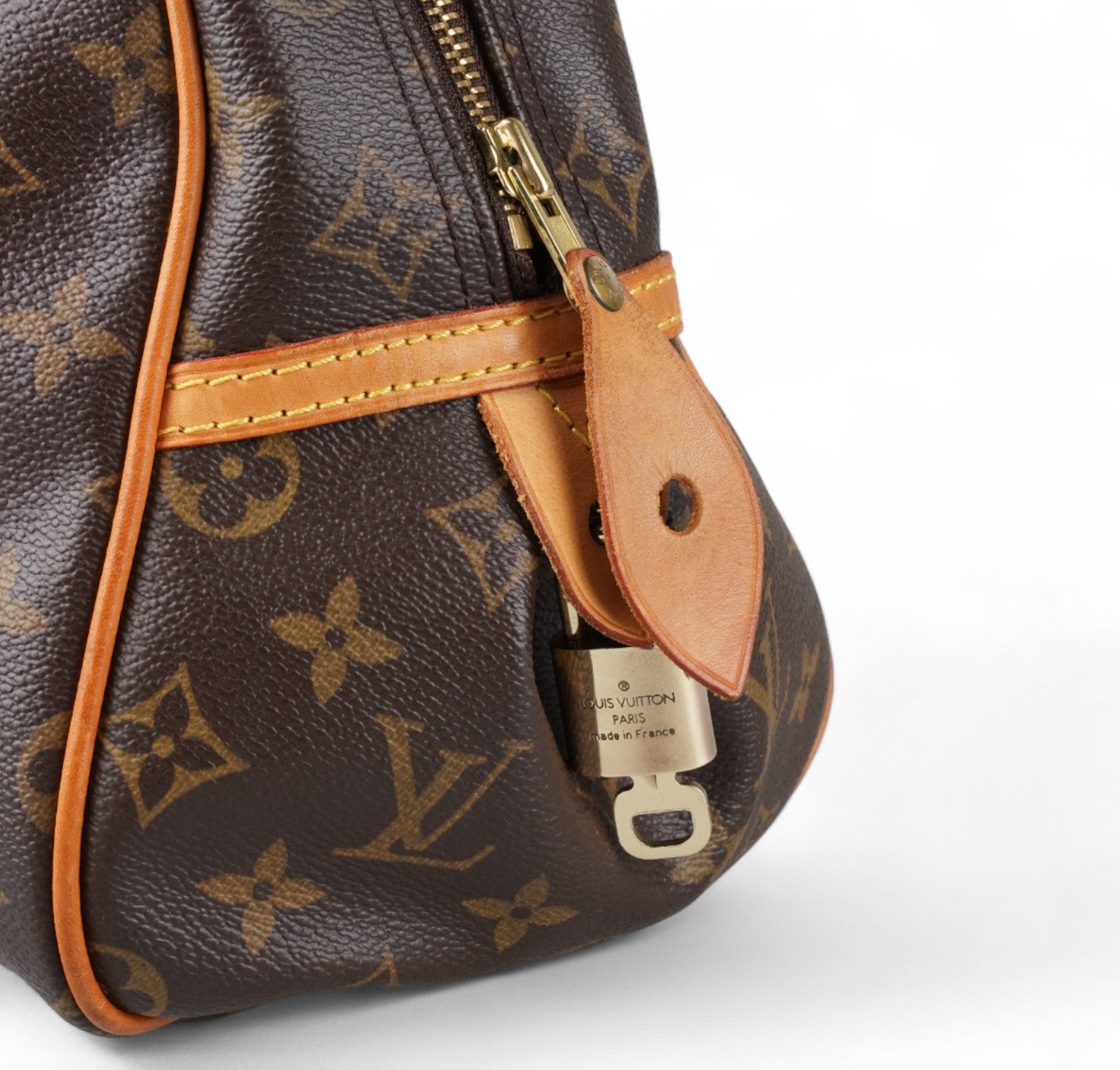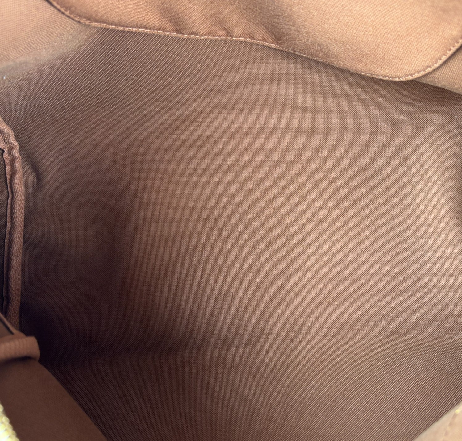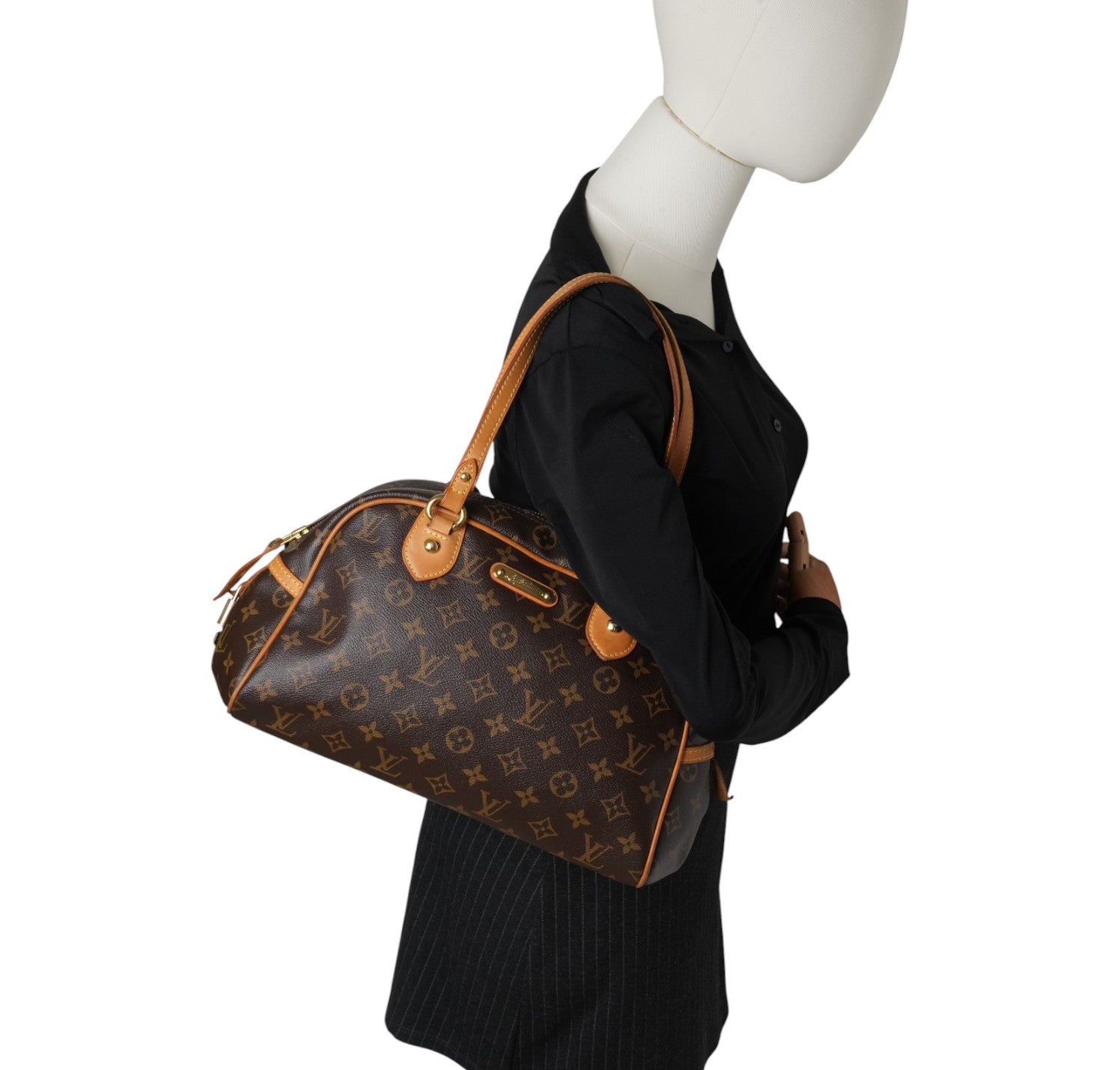 Borsa Louis Vuitton, modello Montorgueil PM, realizzata in Tela Monogram. Finiture in Vacchetta Naturale mielata. Parti metalliche dorate. Chiusura superiore con cerniera. Internamente foderata in tessuto marrone, tasca a bustina applicata. Munita di doppi manici superiori per il trasporto a spalla o mano. Presenti lievi segni d'uso, lievi aloni su vacchetta. Lievi segni del tempo generali.
