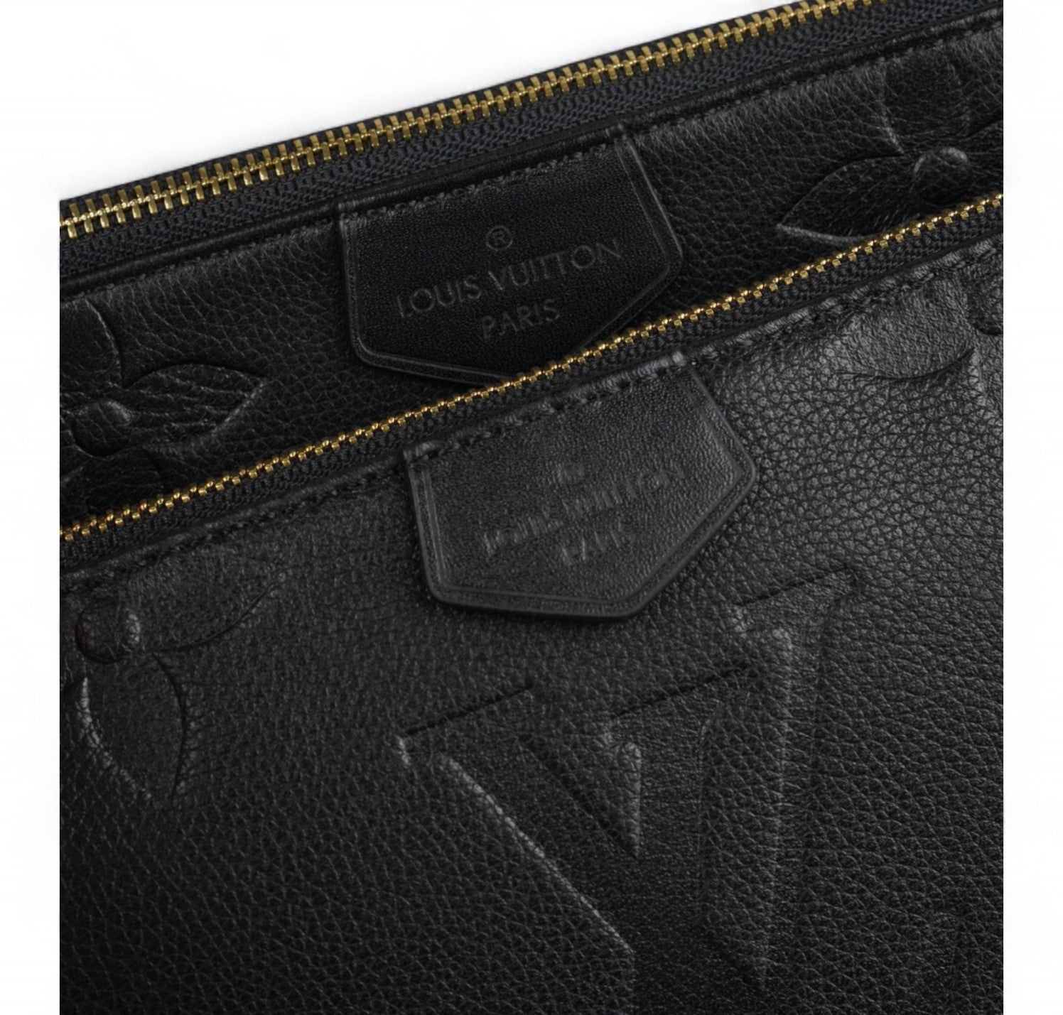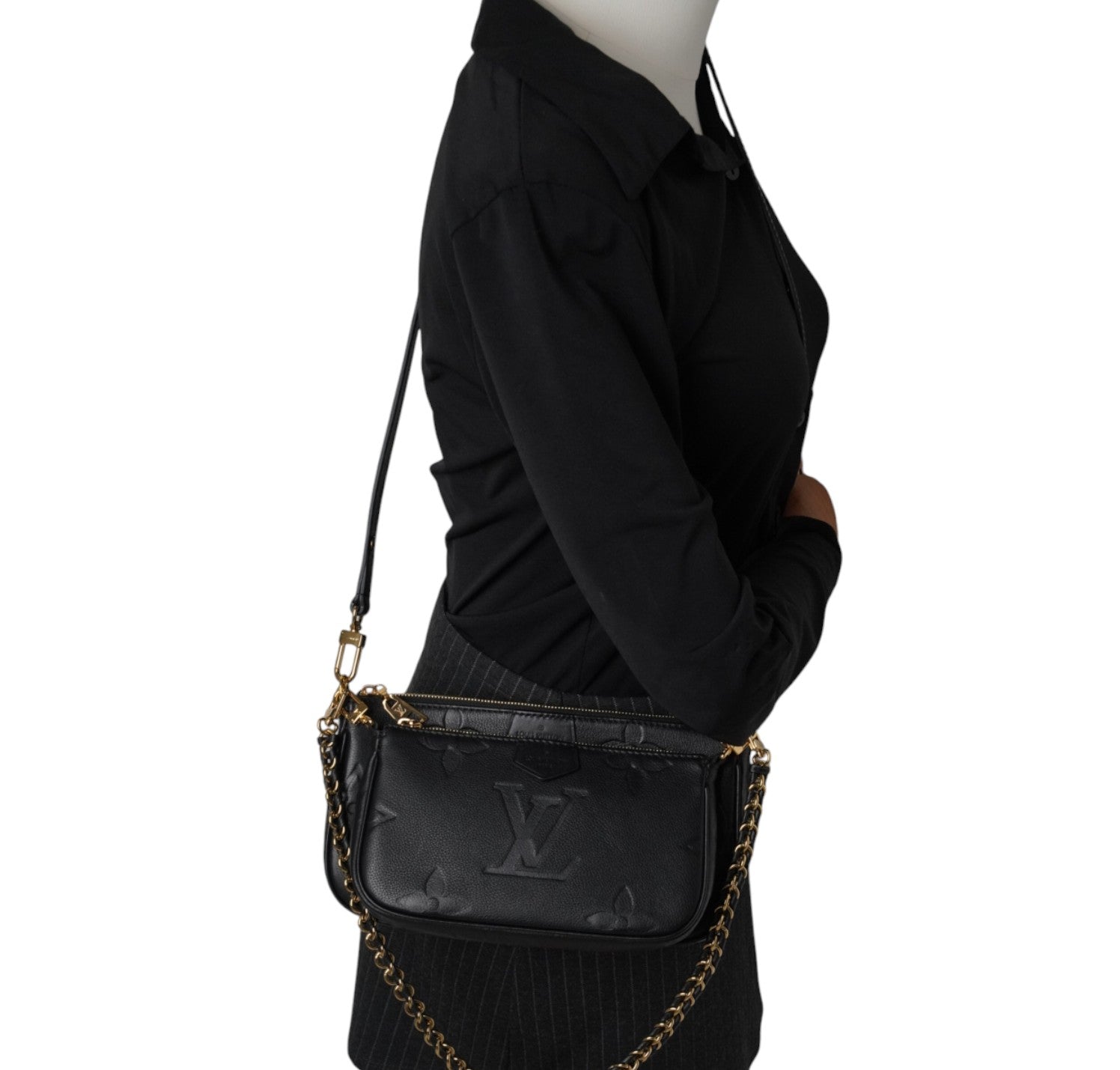 Borsa Louis Vuitton, modello Multi Pochette Accessoires, realizzata in Pelle Monogram Empreinte Nera con Metalleria Oro. Chiusura superiore con cerniera. Composta da due pochette e doppia tracolla in pelle regolabile e in catena dorata per doppia portabilità, a spalla o crossbody. Ideale per un look day-to-night. Interno foderato in microfibra. Condizioni eccellenti, minimi segni d'uso. Box esterna con segni di stoccaggio.