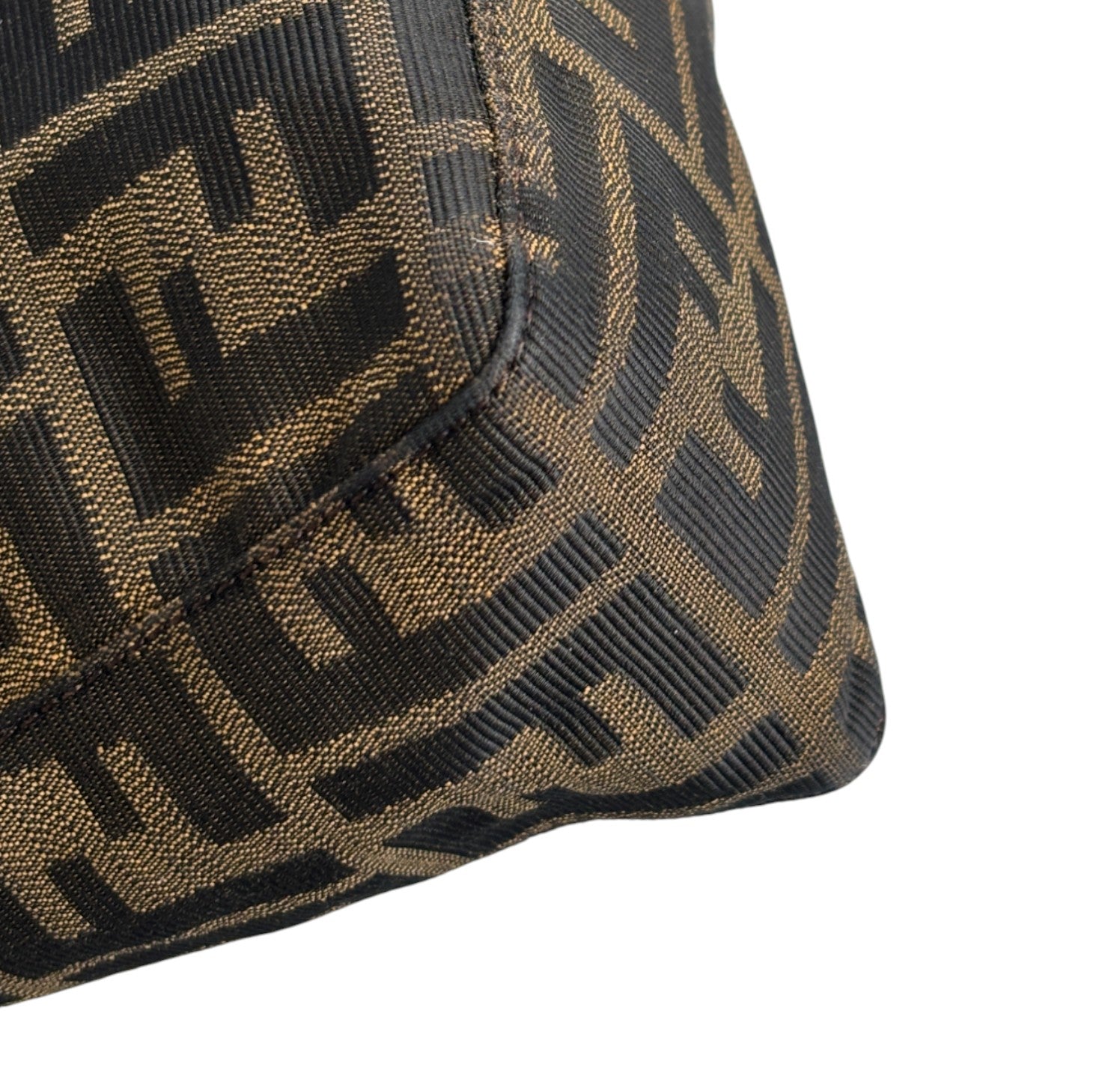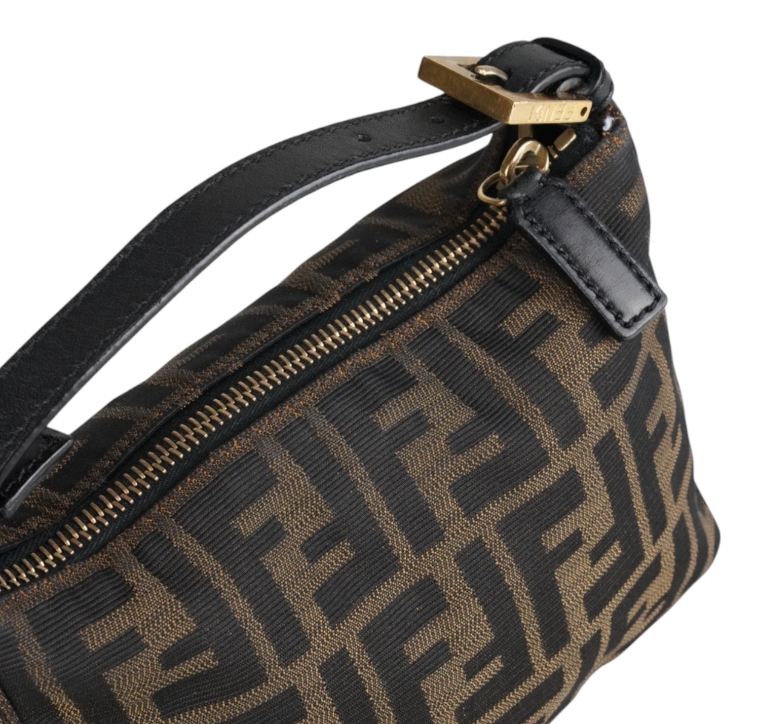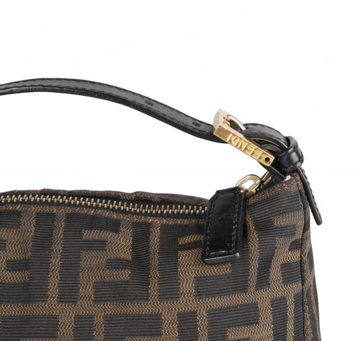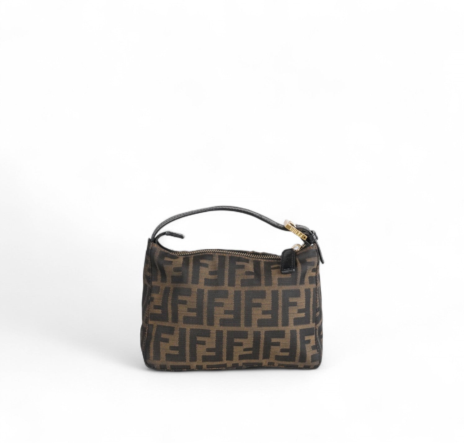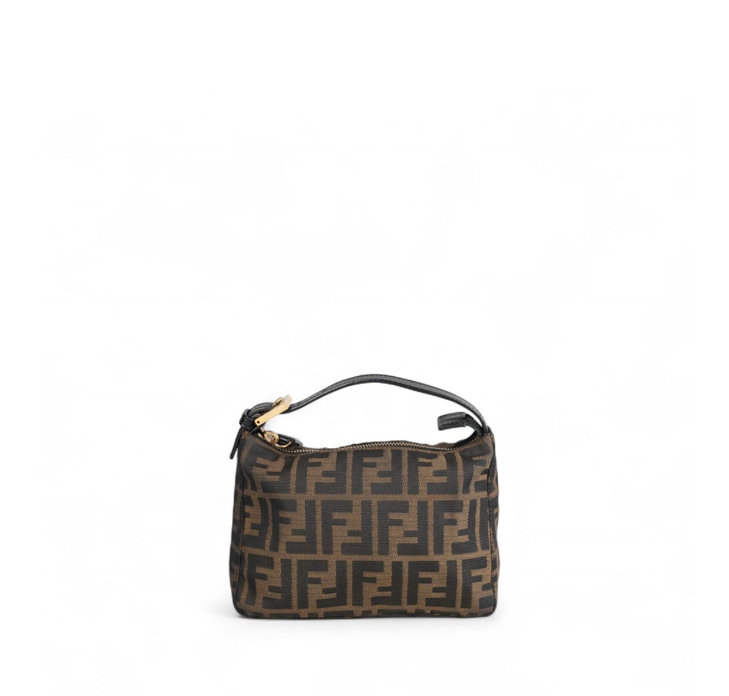 Borsa Fendi Pouch Hobo Monogram realizzata in Tela Monogram. Munita di manico superiore regolabile in pelle Nera. Finiture metalliche color Oro. Chiusura superiore con cerniera. Internamente foderata in pelle idrorepellente che ne consente una pulizia facilitata. Modello versatile, in quanto oltre al normale utilizzo, può anche essere utilzzato come toilette da bagno o borsa make-up. Lievissimi segni del tempo alla metalleria e generali. Minima goffratura pelle interna lato superiore, dovuta al normale utilizzo e apertura.