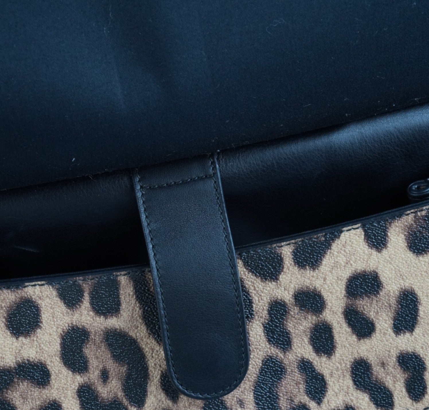 Borsa Dolce&Gabbana, modello Sicily, misura Maxi, realizzata in Tela con Stampa Animalier. Finiture in Pelle Nera. Parti metalliche color Oro. Patta frontale con chiusura doppio magnete nascosto, impreziosita da targhetta logata bigalvanica. Fodera interna tessuto Nero, tasca con zip, taschini. Manico On Top per il trasporto a mano. Dotata di tracolla per l'uso a spalla. Minimi segni del tempo generali, graffi su pelle in alcuni punti. Lievi segni alla metalleria, micrograffi alla metalleria. Lunghezza tracolla 47 cm.