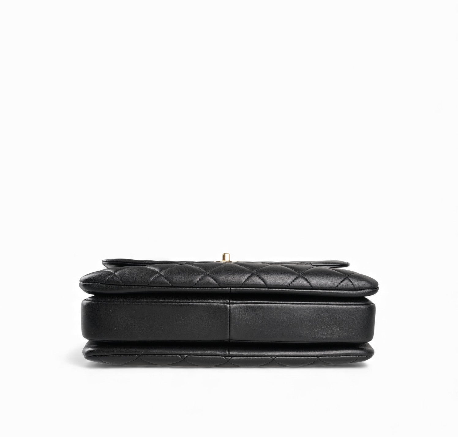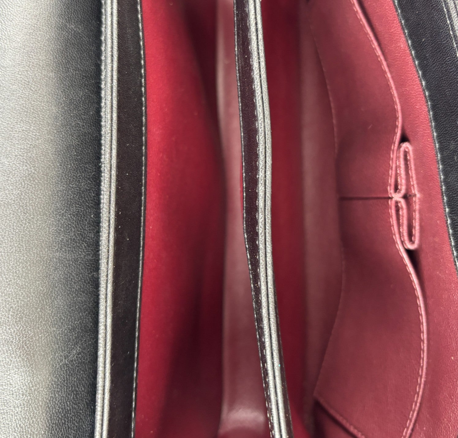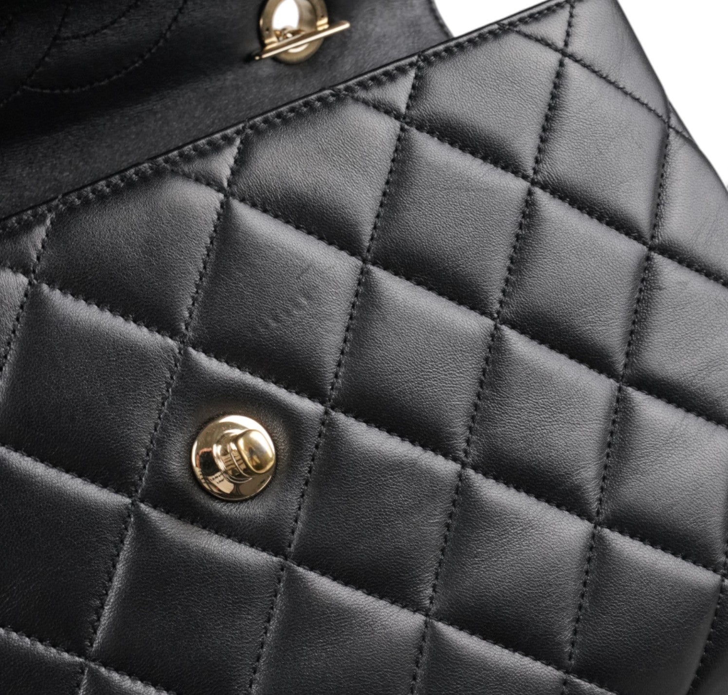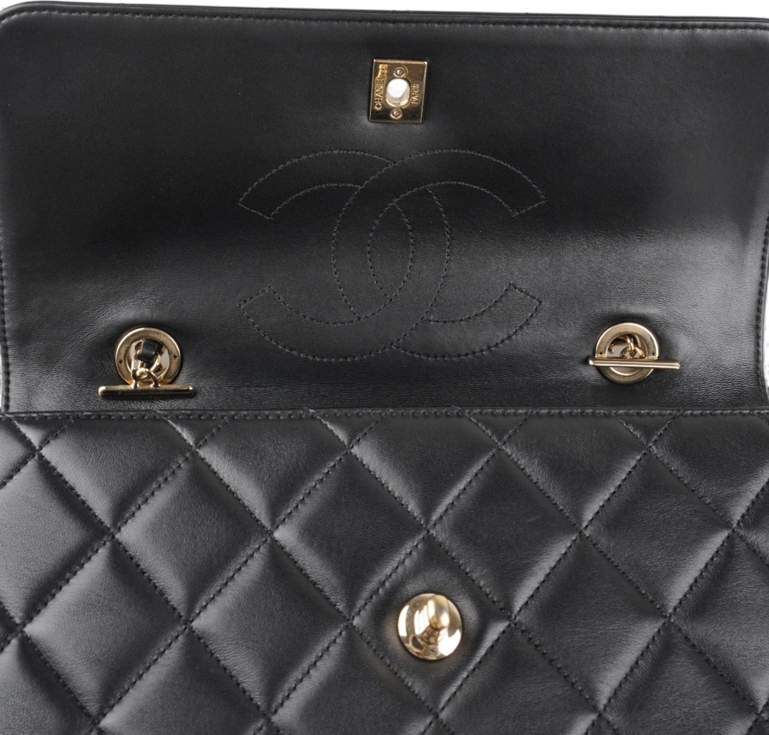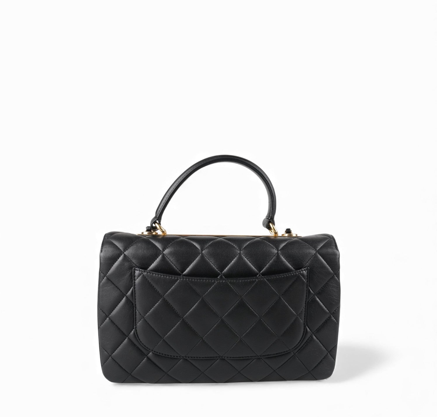 Borsa Chanel, modello Trendy CC, realizzata in Pelle Nera. Finiture in metallo dorato. Metalleria con placca superiore incisa. Chiusura con patta anteriore e turn-lock CC. Interno foderato in pelle bordeaux, suddiviso in scomparti. Munita di manico superiore rigido e tracolla in pelle con catena. Priva di sticker interno ma munita di card. Presenta minimi segni di pressione sotto la patta e lievi graffi generali. Minimi segni metalleria.